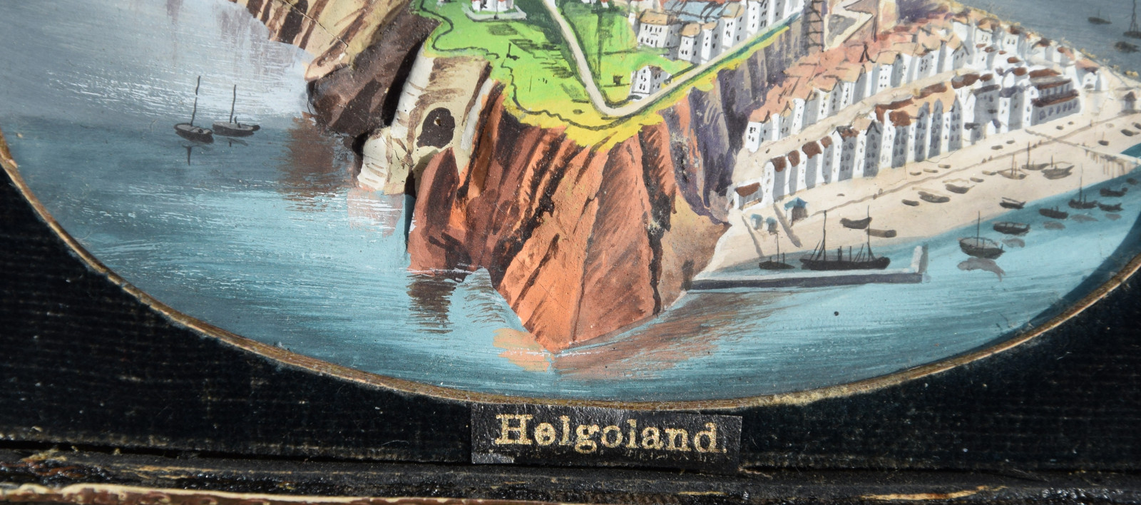 Dieser hier vorliegende, liebevoll und fein ausgeführte Briefbeschwerer mit Helgoland-Motiv ist ein treffliches Beispiel für ein solches Objekt. Durch die rückseitige handschriftliche Widmung eines Vaters an die Tochter erhält dieses zudem einen sehr persönlich biografischen Aspekt.