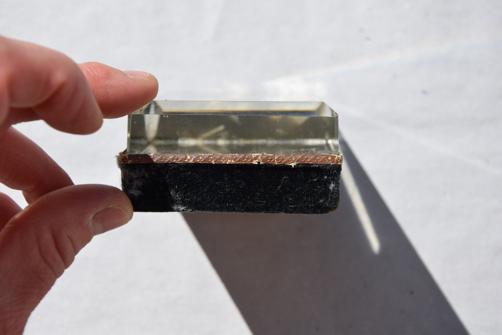 oberer Glasteil – Glas etwas fleckig und schwach berieben; an den Ecken minimalste Abriebe