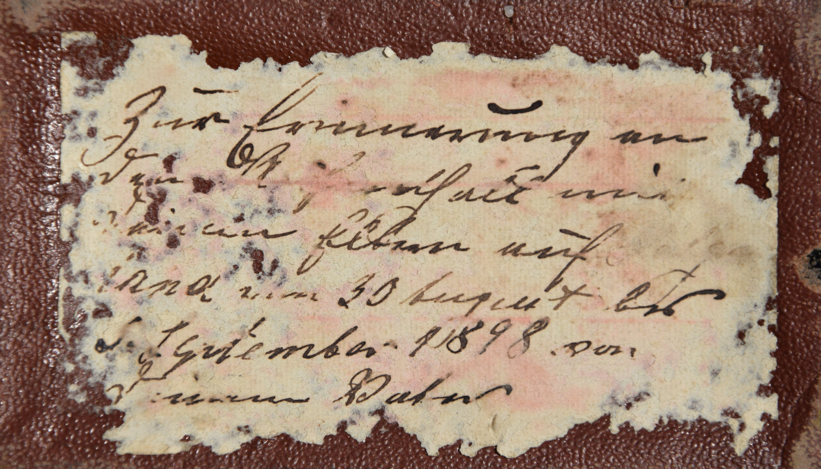 Auf der Unterseite handschriftlich bezeichnet (teilweise abgerieben und unleserlich): “Zur Erinnerung an den Aufenthalt mit deinen Eltern auf Helgoland vom 30 August bis [?] September 1898 von deinem Vater”
