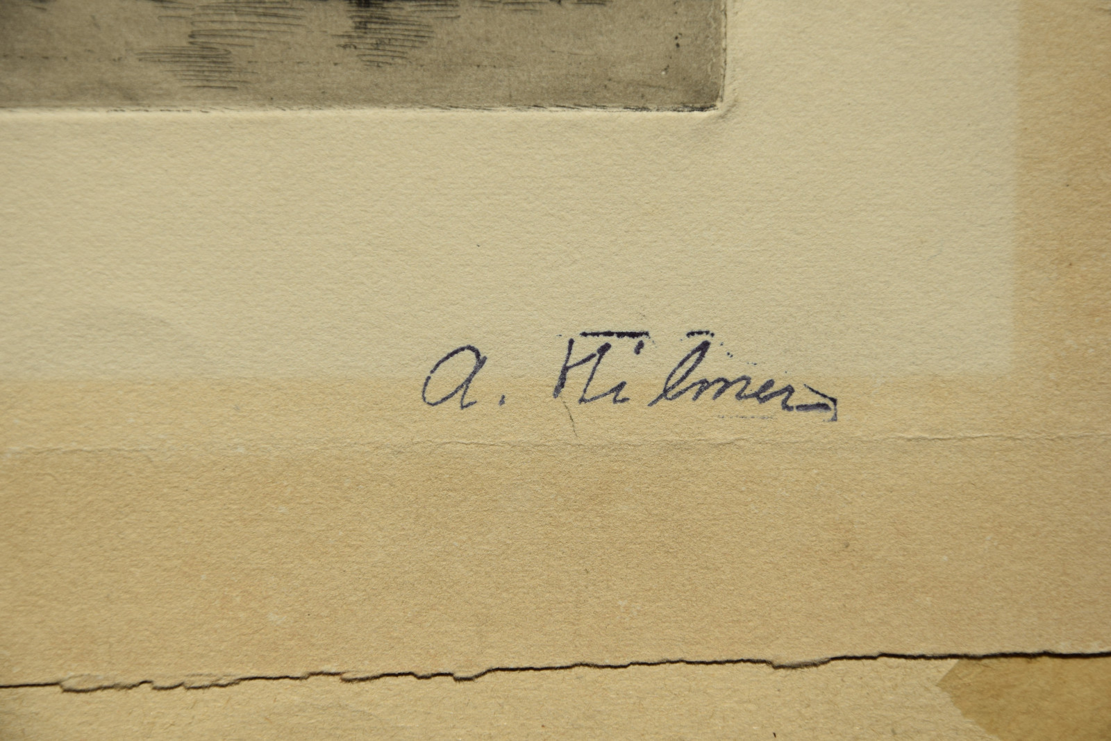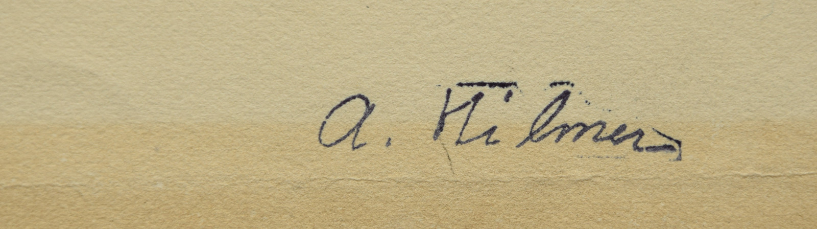 unten rechts Signaturstempel „A. Hilmer“, sowie auf dem Blatt unten rechts schwach in Blei bez./sign.[?] „Hilmer“