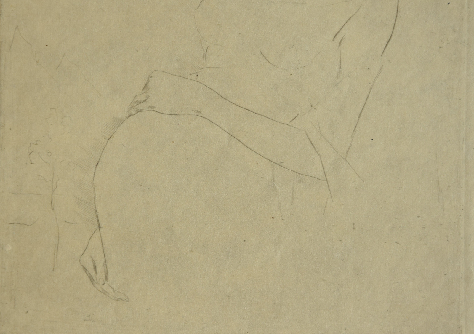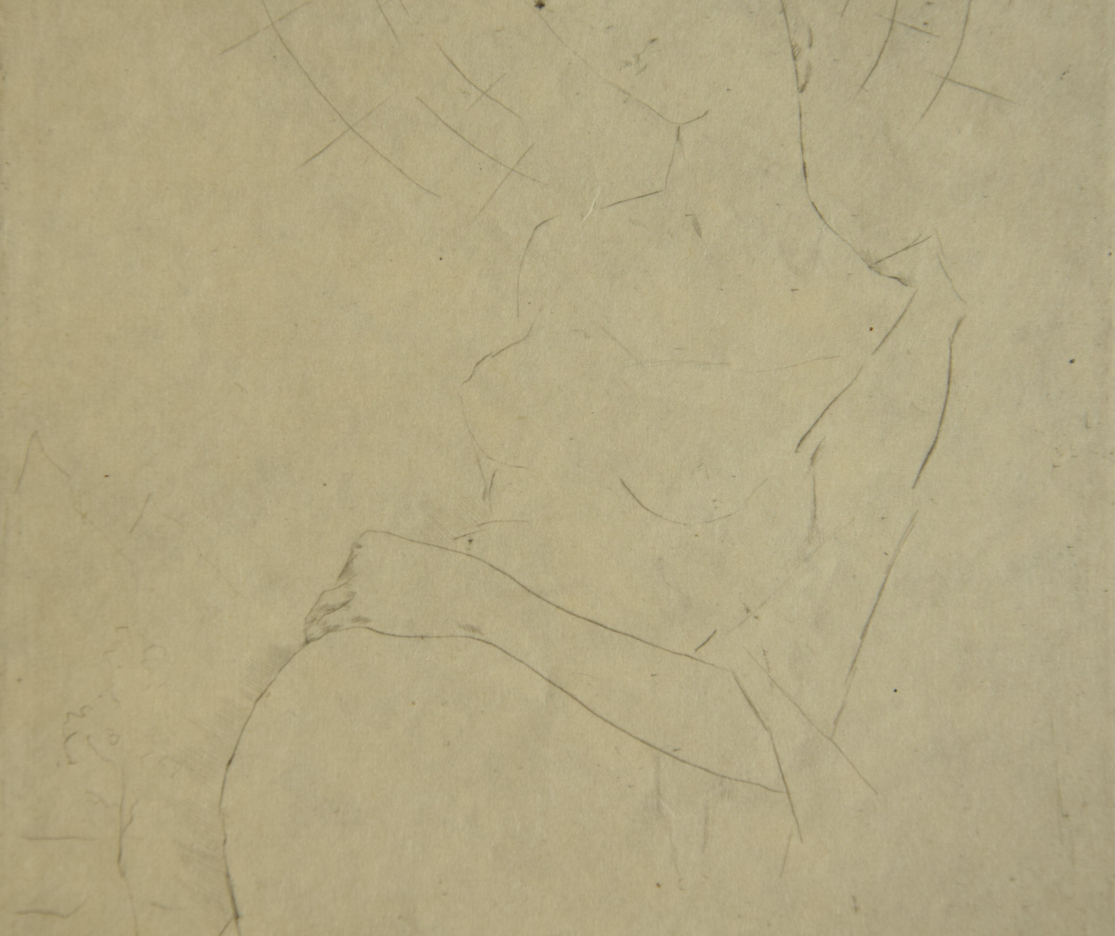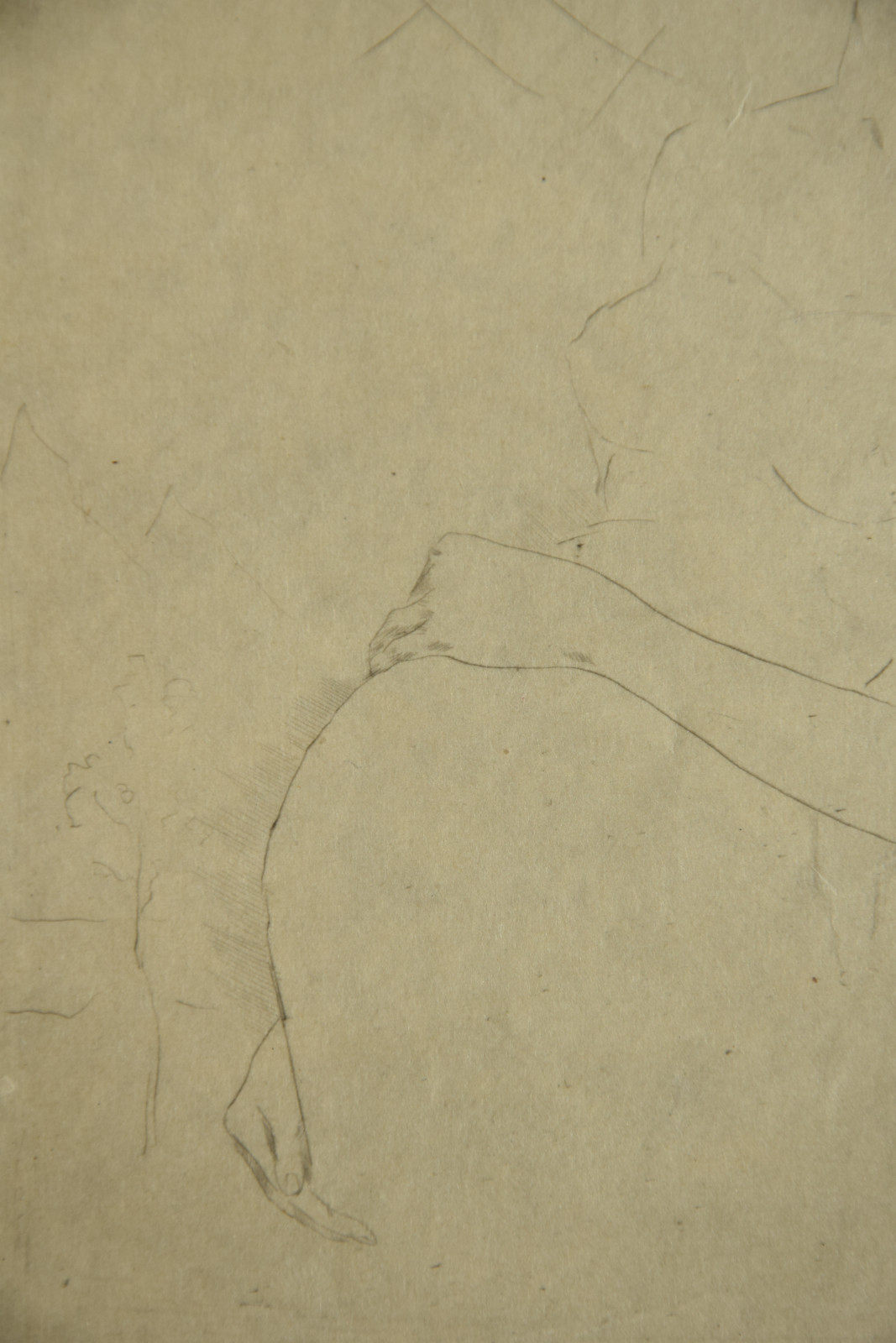 die beiden linken Ecken und die Ecke oben rechts mit Knickspuren; leichte Druckstellen im Blatt; am linken Rand oben kleiner dunkler Fleck; verso unten mittig kleiner dunkler Fleck