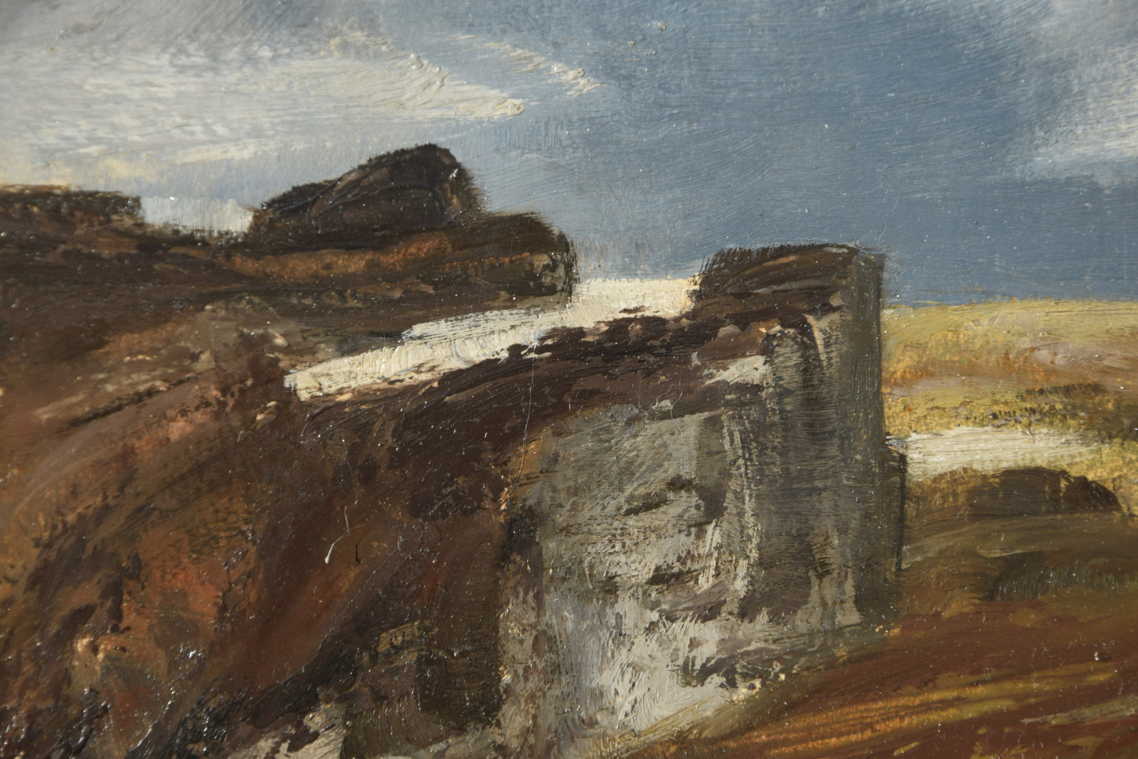 Neben der expressiven Malweise ist unbedingt noch auf das eher unübliche Motiv zu verweisen. Eduard Steiner bietet hier keinen Fernblick in eine tiefe, weite Landschaft, wie er damals oft gezeigt (und erwartet?) wurde, sondern vielmehr gibt er einen begrenzten, unscheinbaren Landschaftsausschnitt.