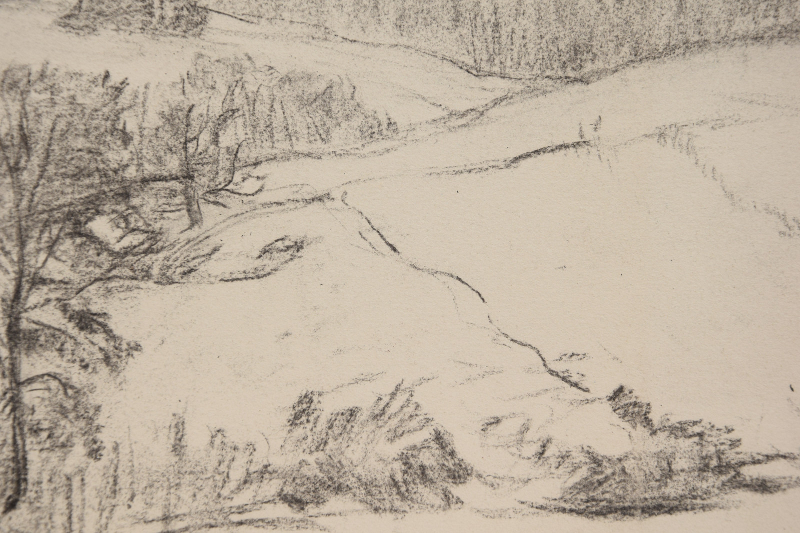Kohle auf sanfarbigem Karton