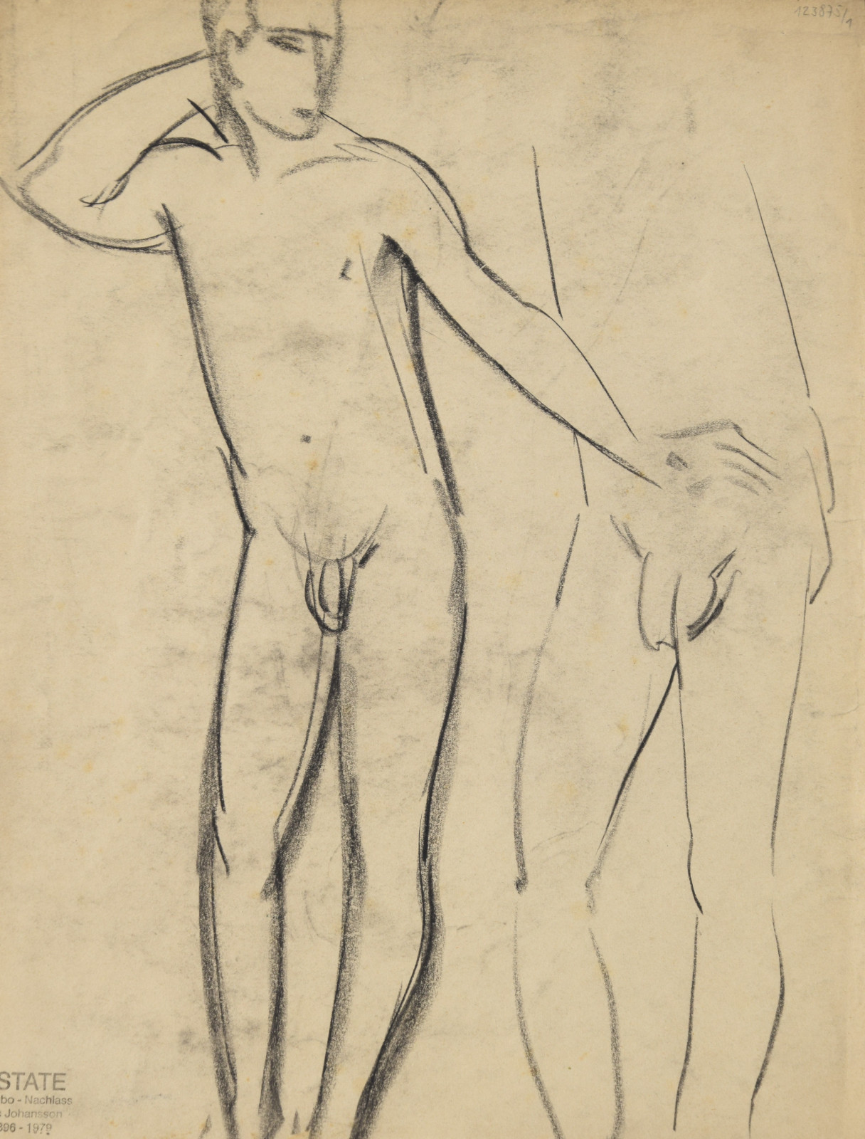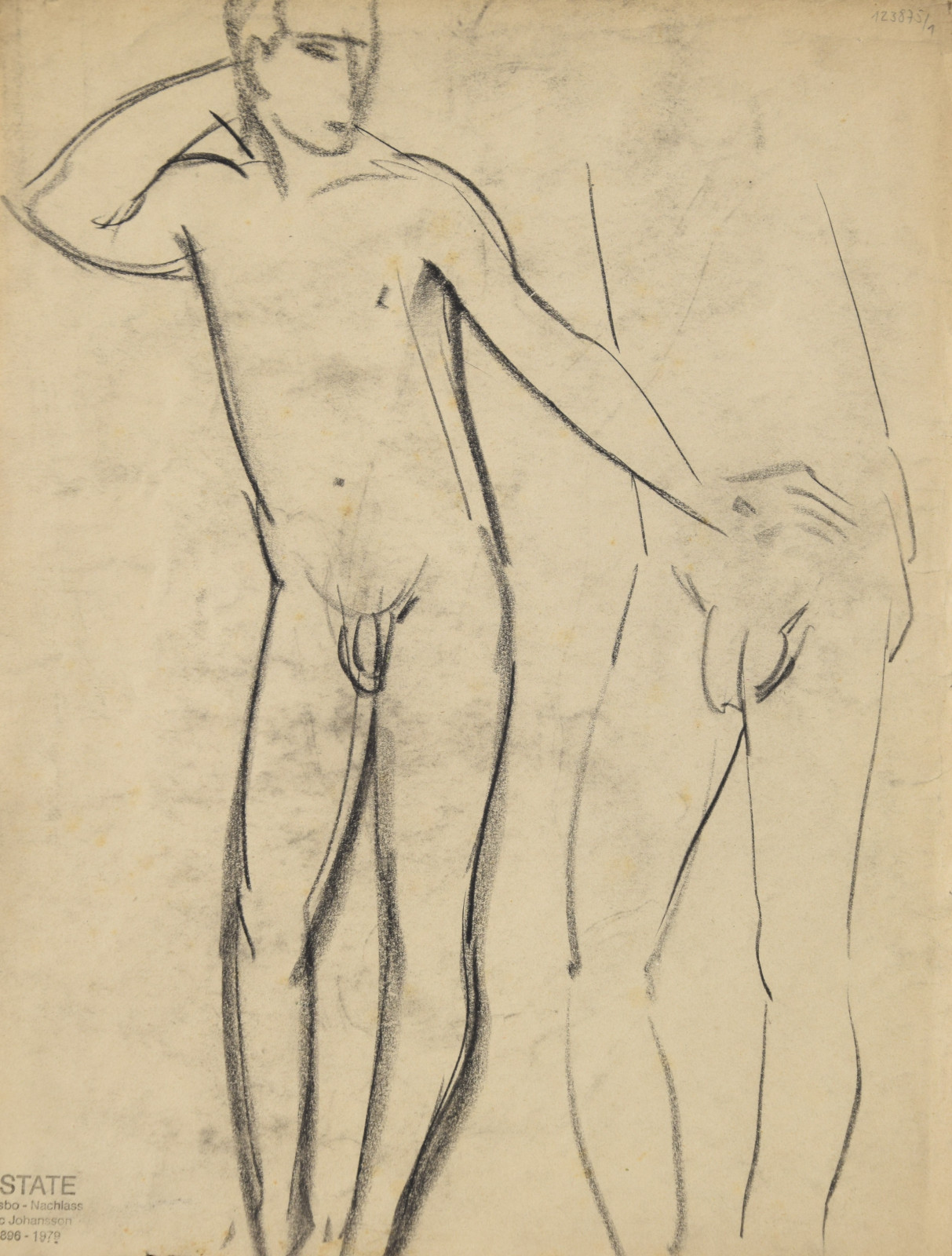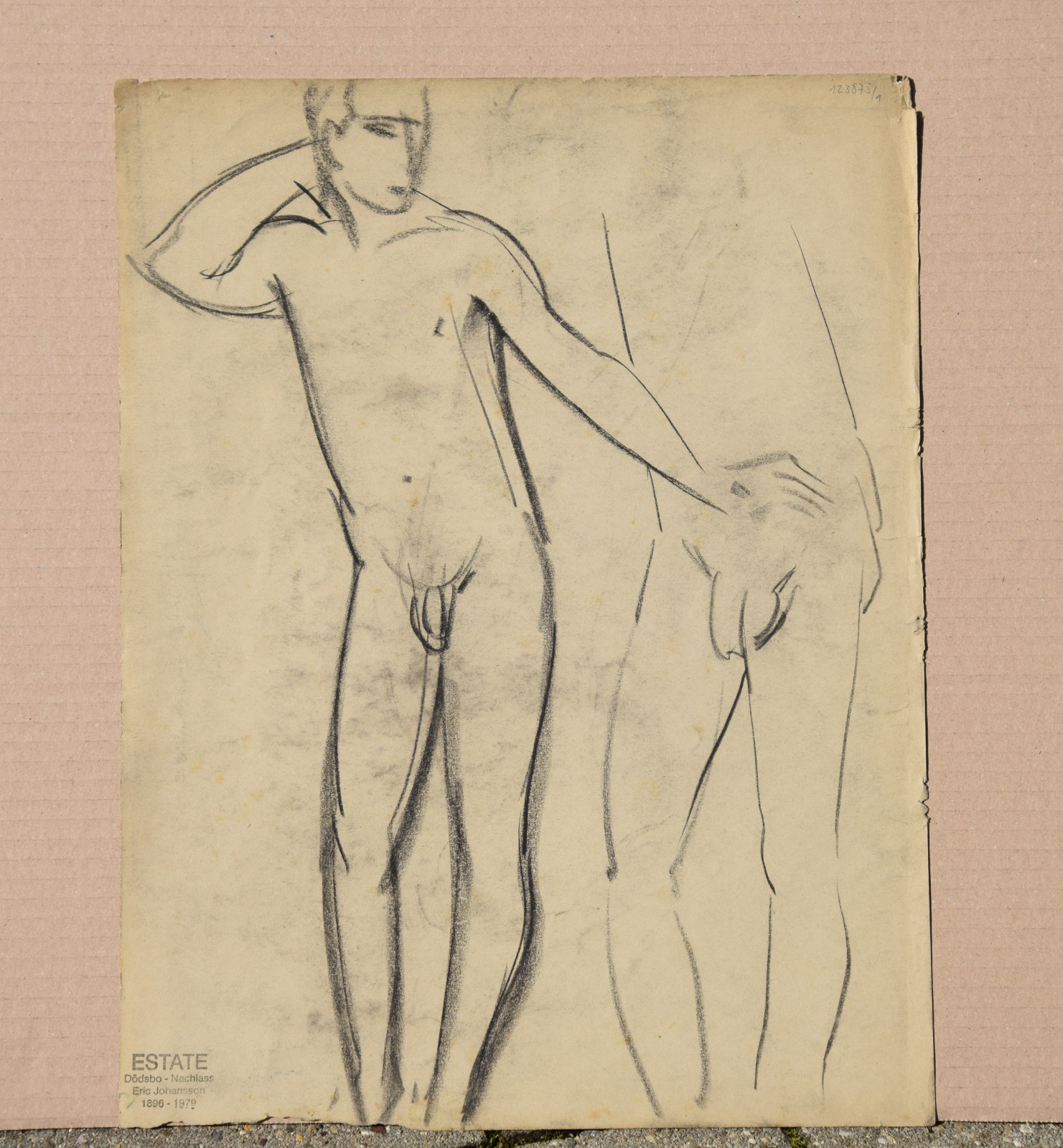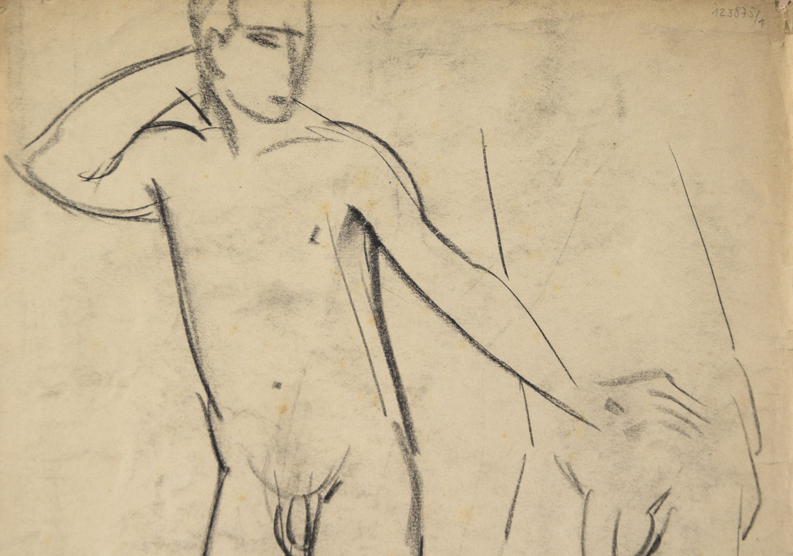 Studie mit zwei stehenden männlichen Akten (um 1915-20)