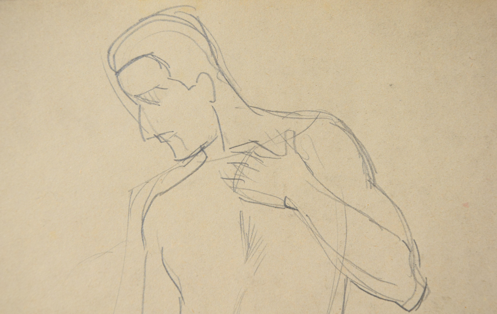 1934 Reise nach Stockholm. Nach seiner Rückkehr findet eine Hausdurchsuchung durch die Gestapo statt bei der eigene künstlerische Werke, sowie zahlreiche Bücher beschlagnahmt werden.
