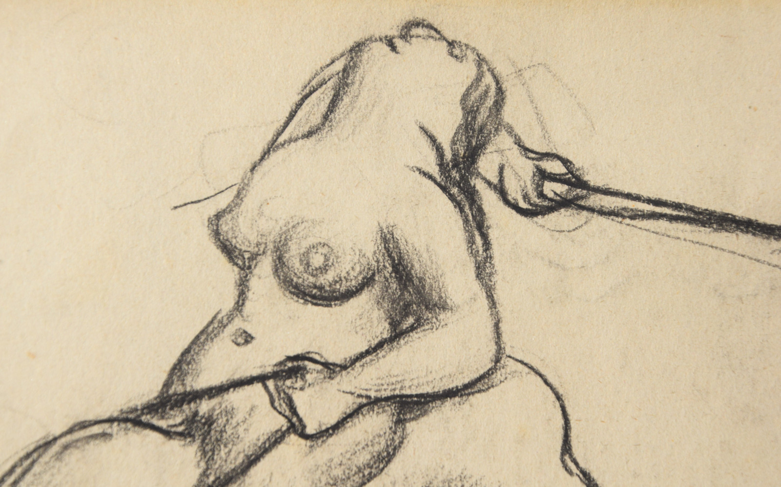 Kreide (bzw. Bleistift (Akt verso)) auf Zeichenpapier