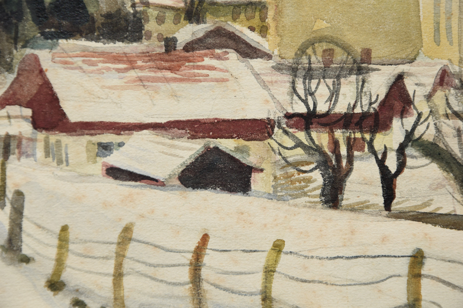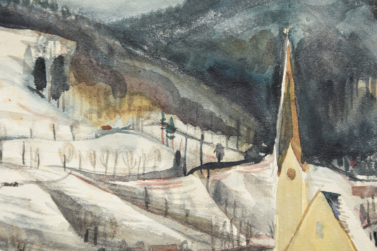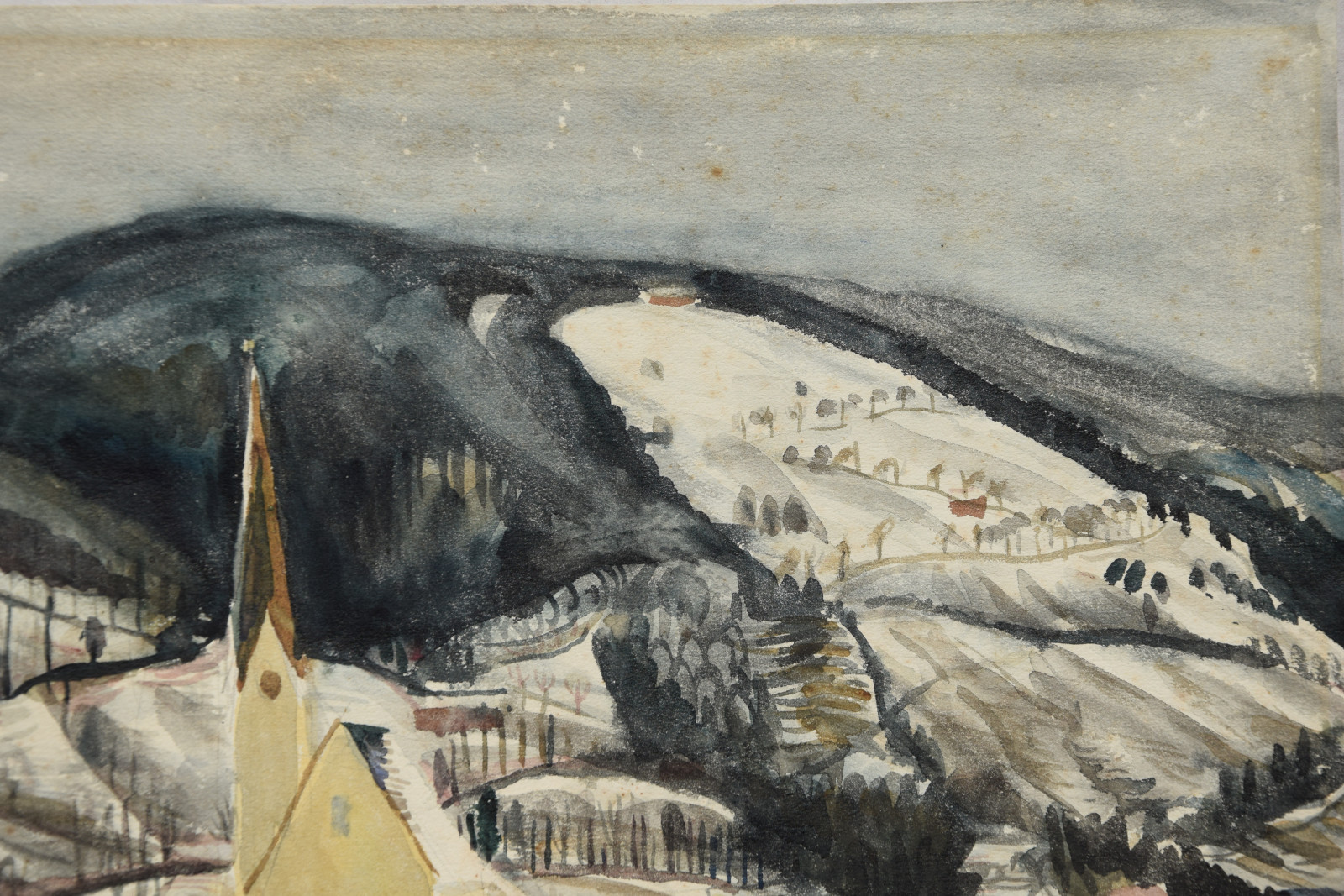 Das vorliegende Werk ist eine der ganz typischen, sehr schönen Winterlandschaften des Künstlers und kann womöglich in die heimatliche Pfalz lokalisiert werden. Im Gegensatz zu den meisten anderen Werken, hat der Künstler dieses Blatt zudem datiert (1934).