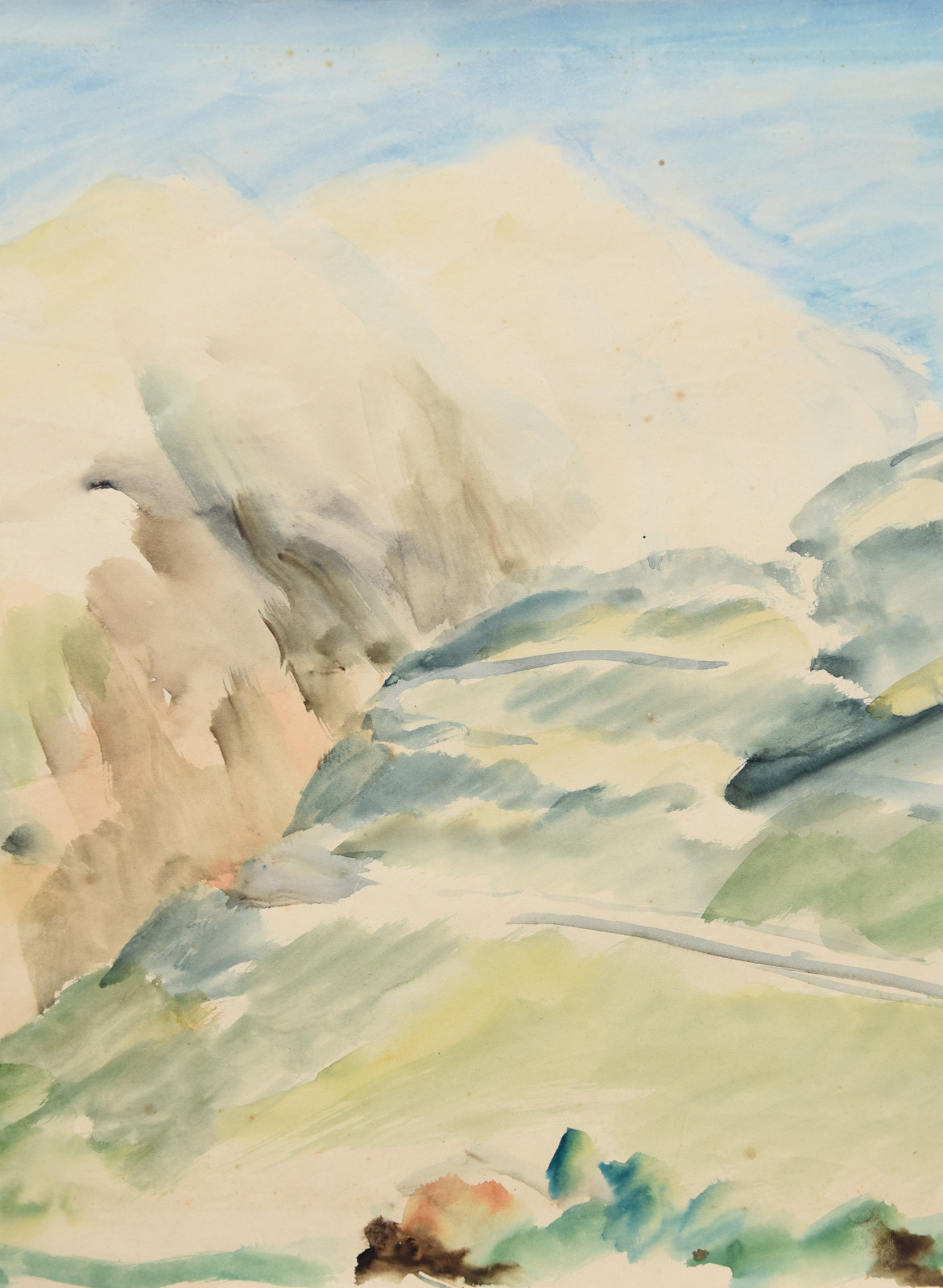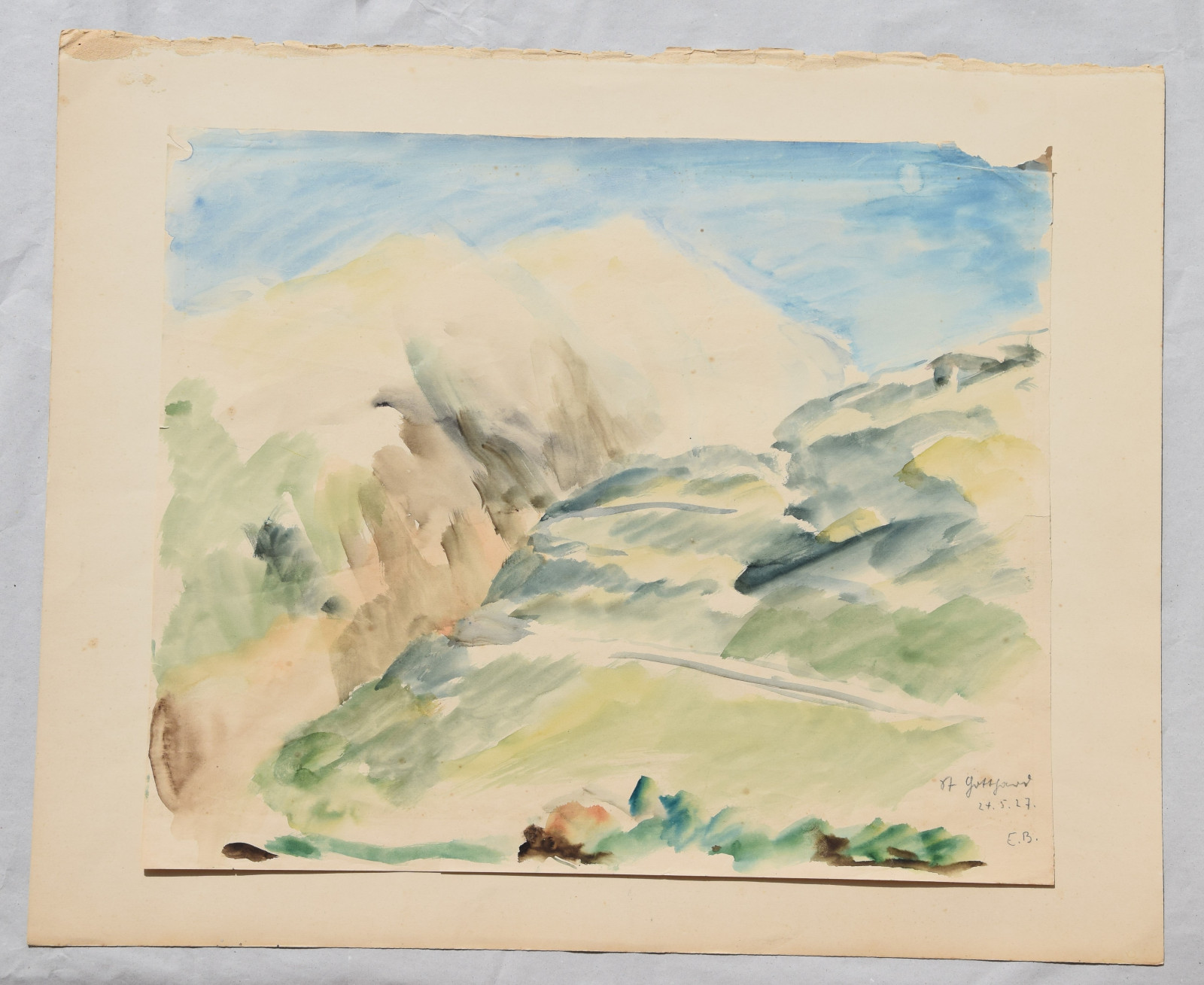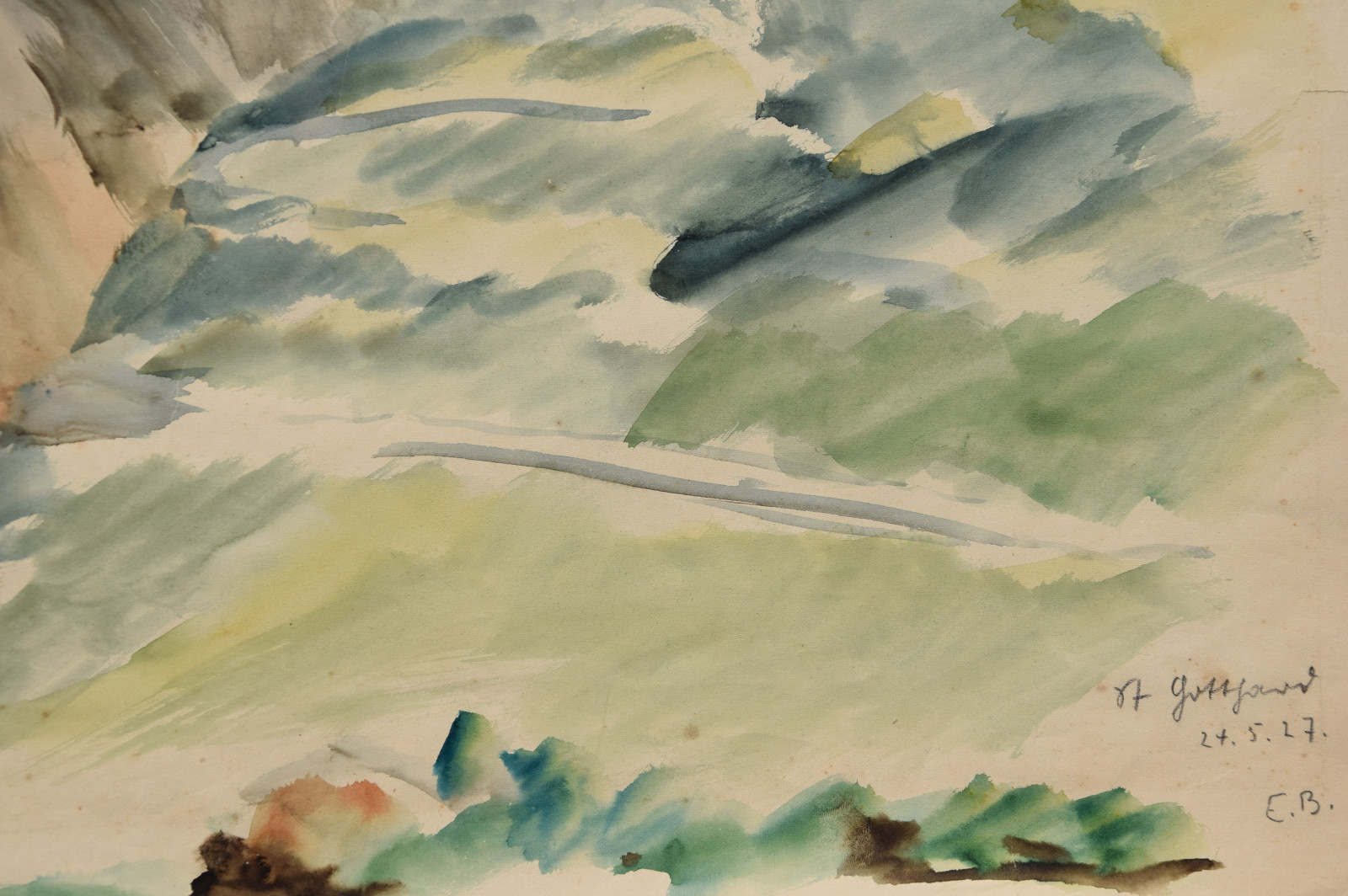 „St. Gotthard“ [so unten rechts in Blei betitelt, sowie verso unten links bez. „Camedo Centovalli“]