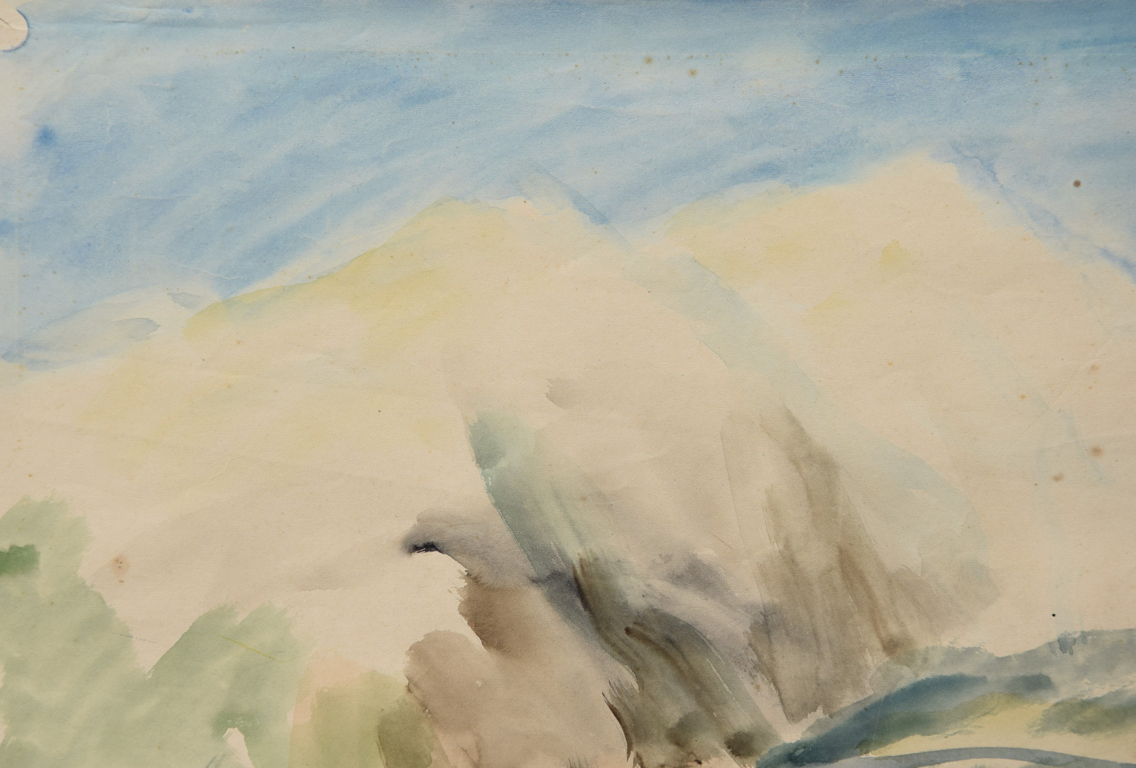 Aquarell auf Velinpapier, verso in den oberen beiden Ecken befestigt auf leichtem Karton