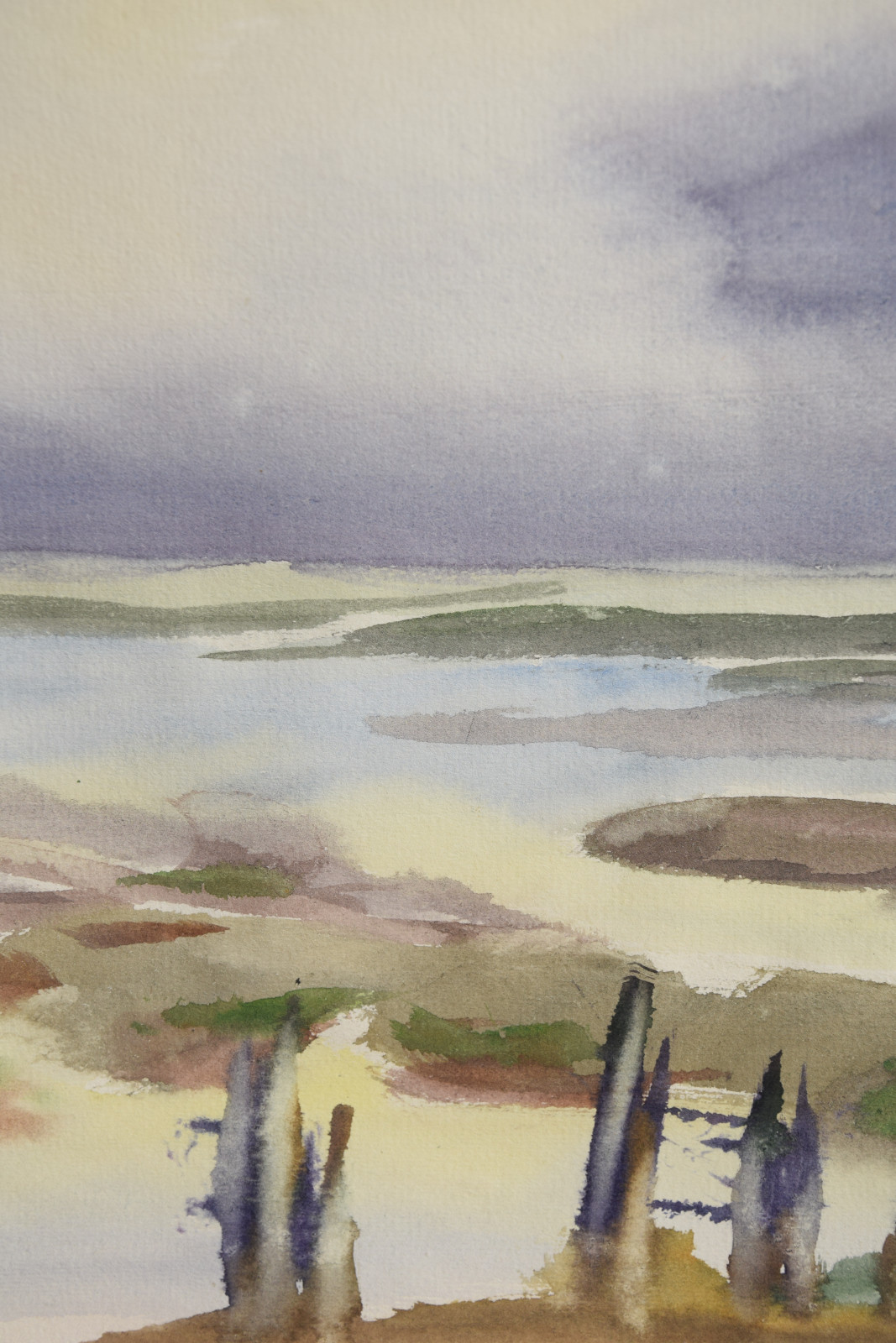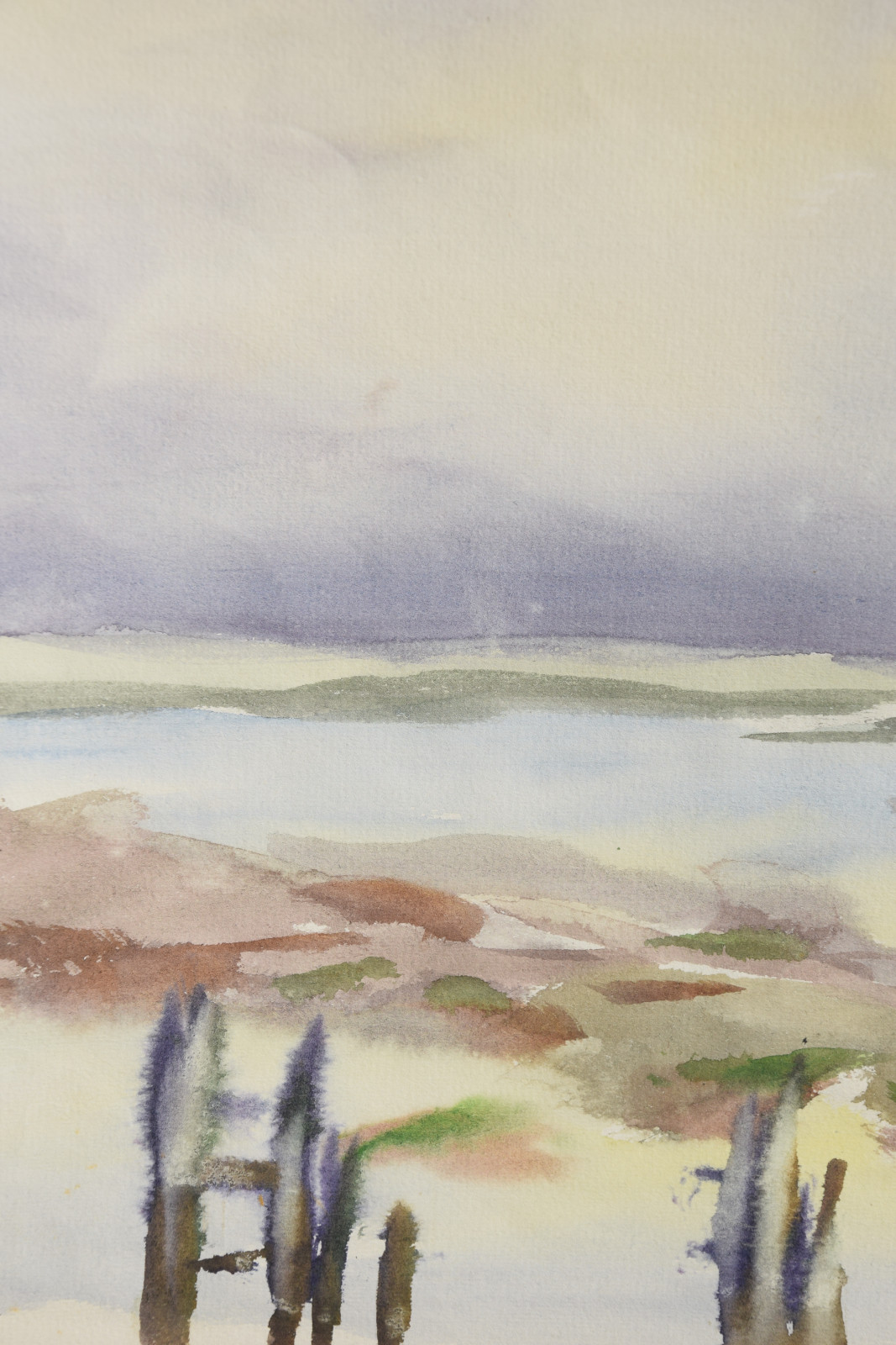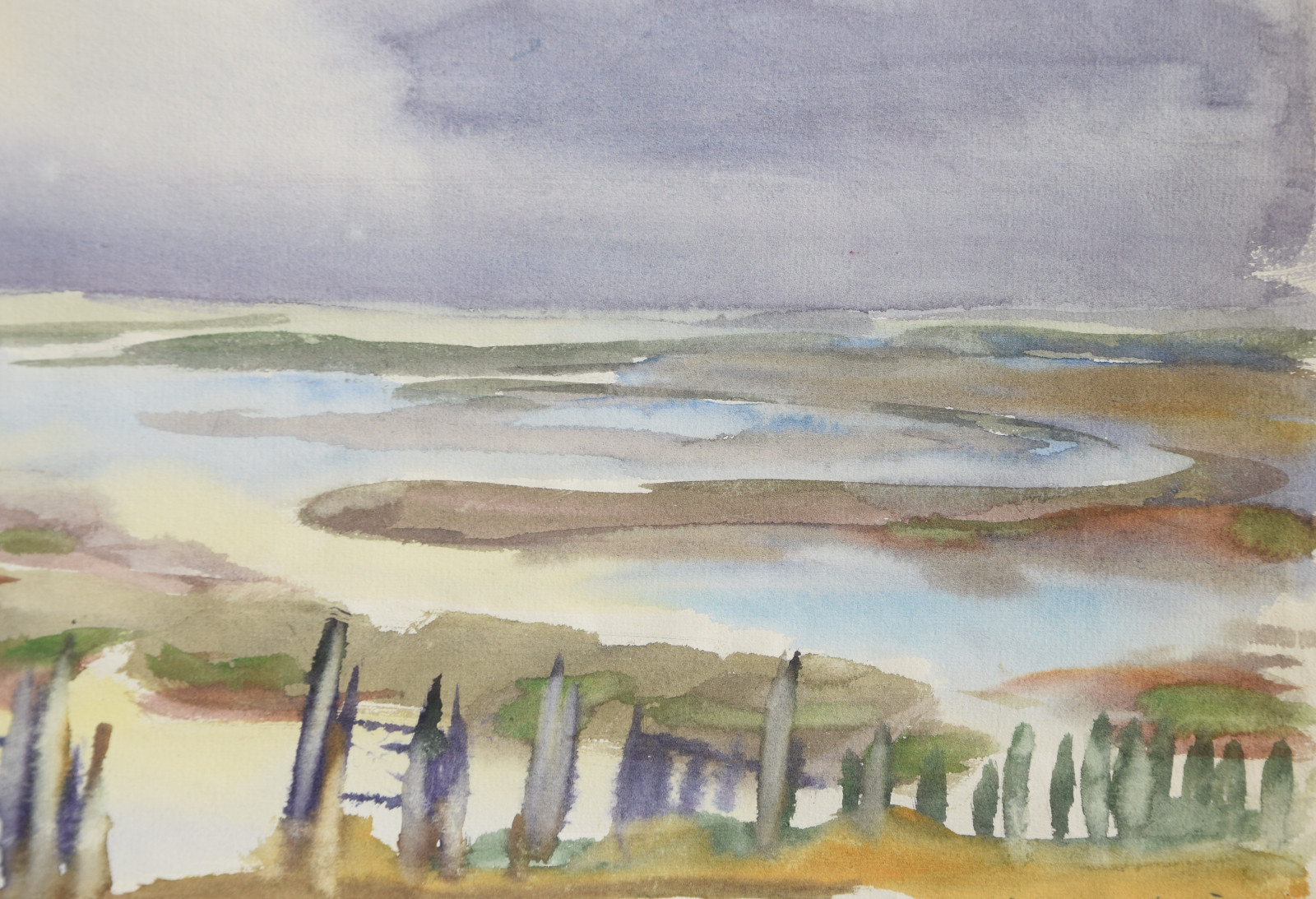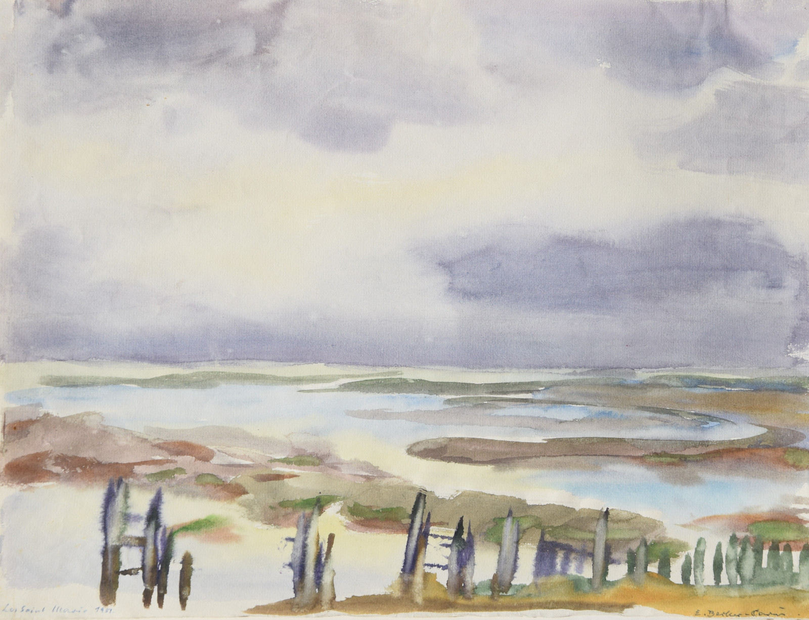 „Les Saint[sic] Marie“ [so unten links und unten rechts betitelt, Ansicht des Meeres bei (Les) Saintes-Maries-de-la-Mer in der Region Provence-Alpes-Côte d’Azur]