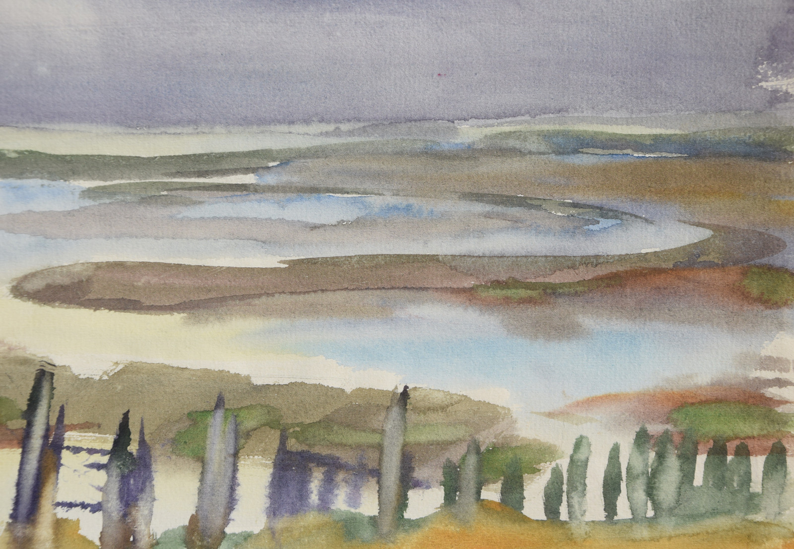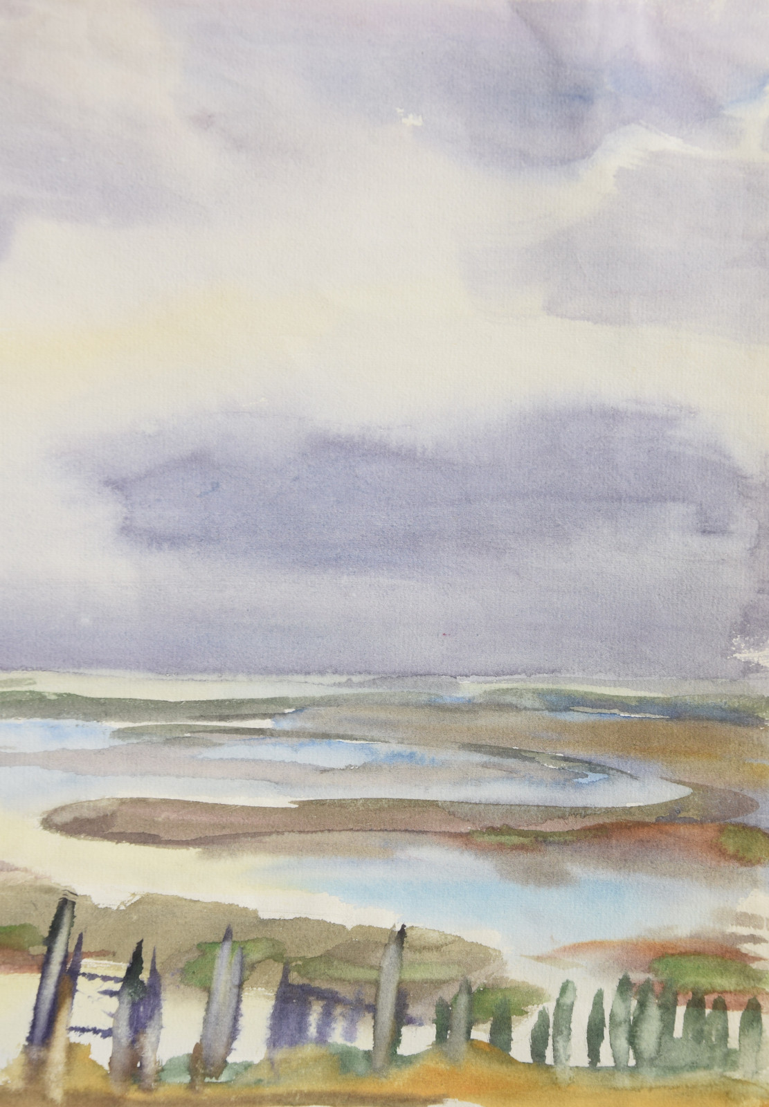 Aquarell auf Ingrespapier, verso am oberen Rand auf hellen Karton befestigt