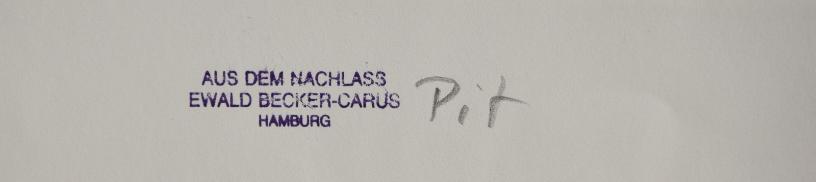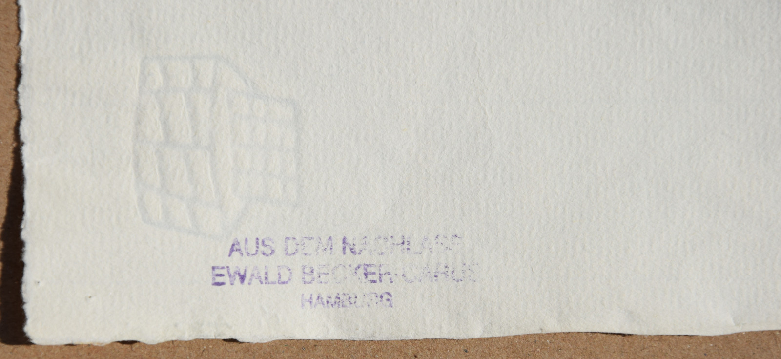 unten rechts signiert „E. Becker-Carus“, sowie verso unten links Nachlassstempel, sowie auf dem unterlegten Karton unten links nochmals Nachlassstempel