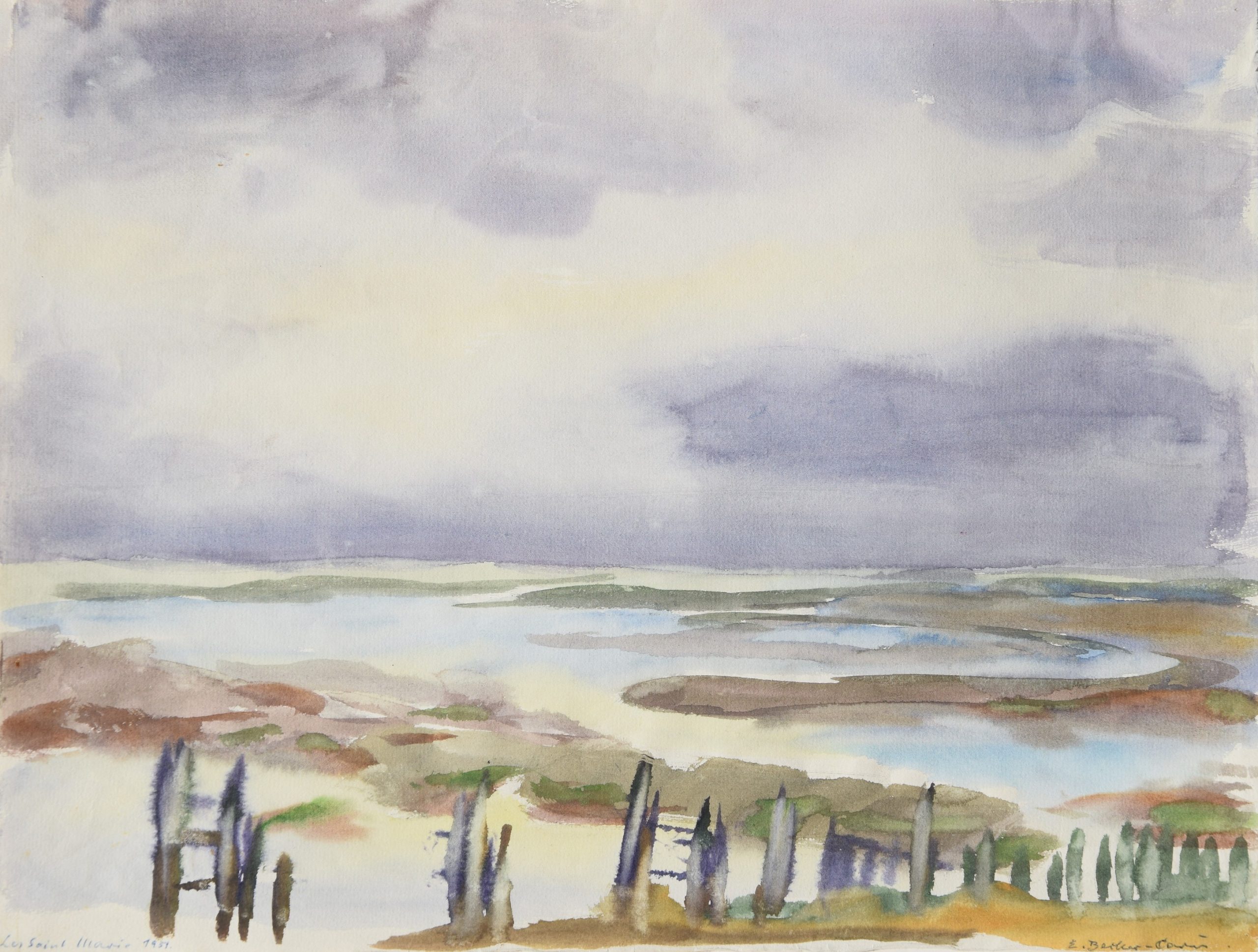 Ansicht des Meeres bei Saintes-Maries-de-la-Mer in der Region Provence-Alpes-Côte d’Azur (1951)