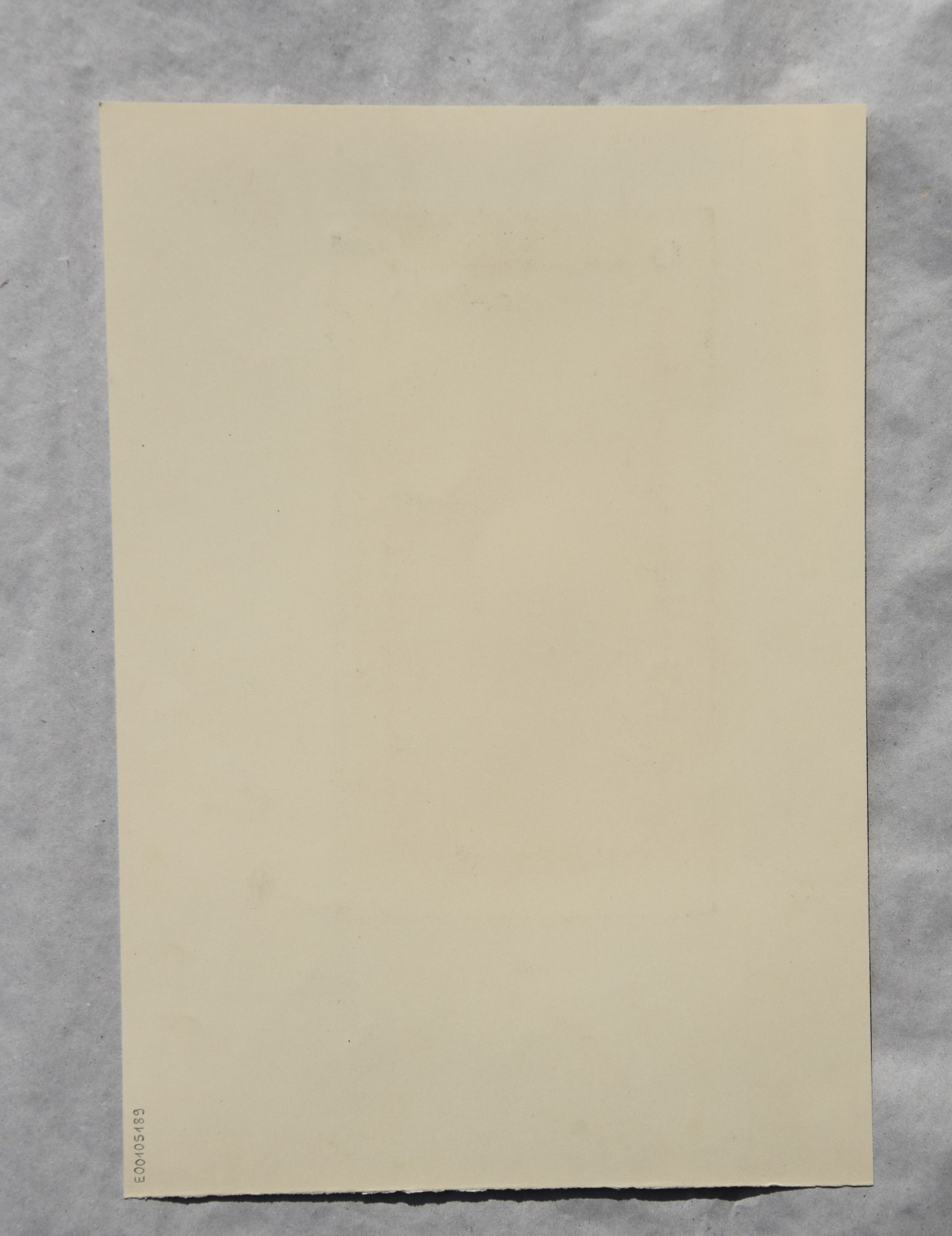 Größe: 19,6 x 10,5 cm (Blatt) bzw. 15,5 x 7,4 cm (Zeichnung) bzw. 29,7 x 20,8 cm (unterlegter Karton)