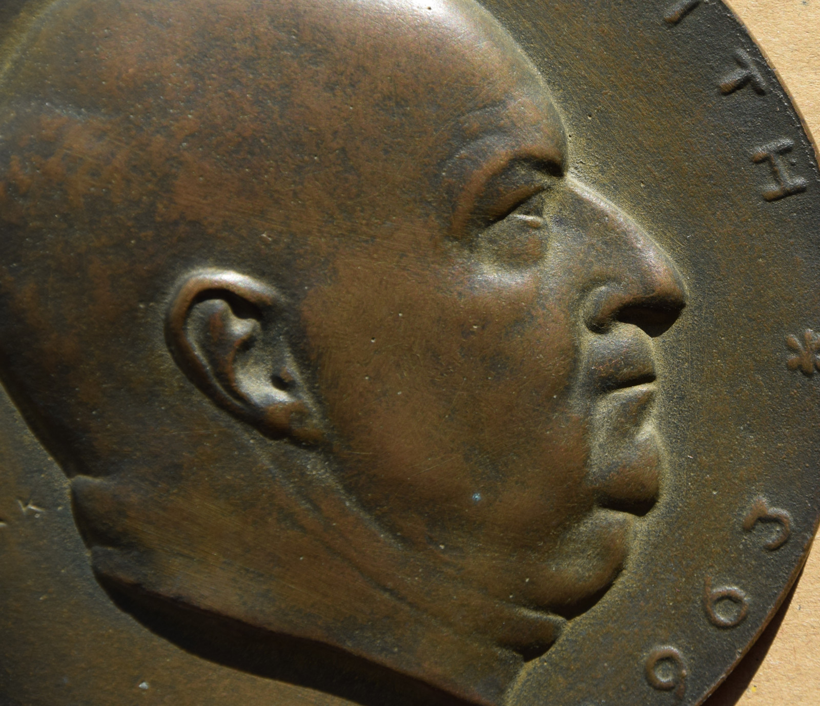 Größe: Bronze – 10,7 cm (Durchmesser), die 3 Gipsplaketten mit unterschiedlichen Durchmessern – 11,2 cm , 13,5cm und 13,8 cm