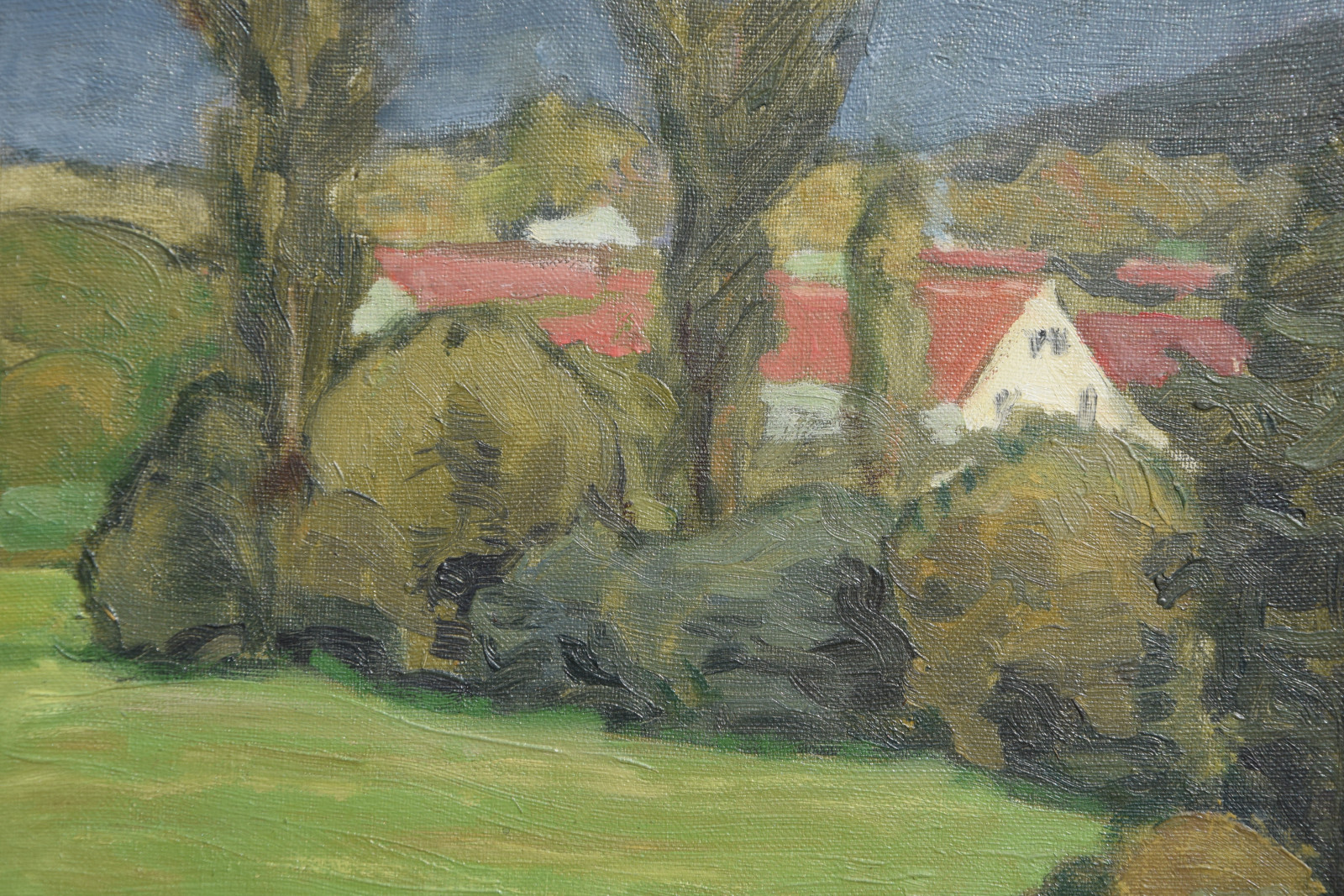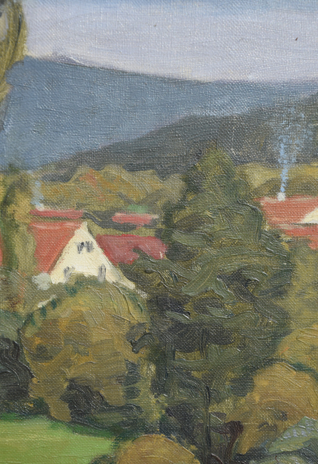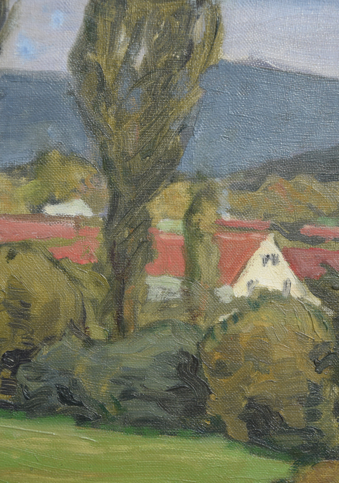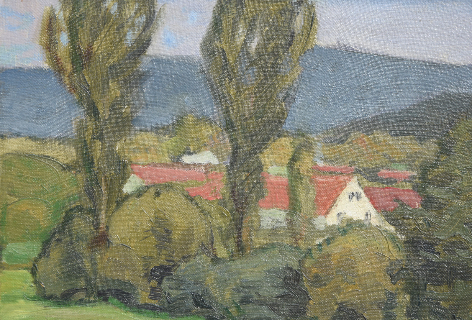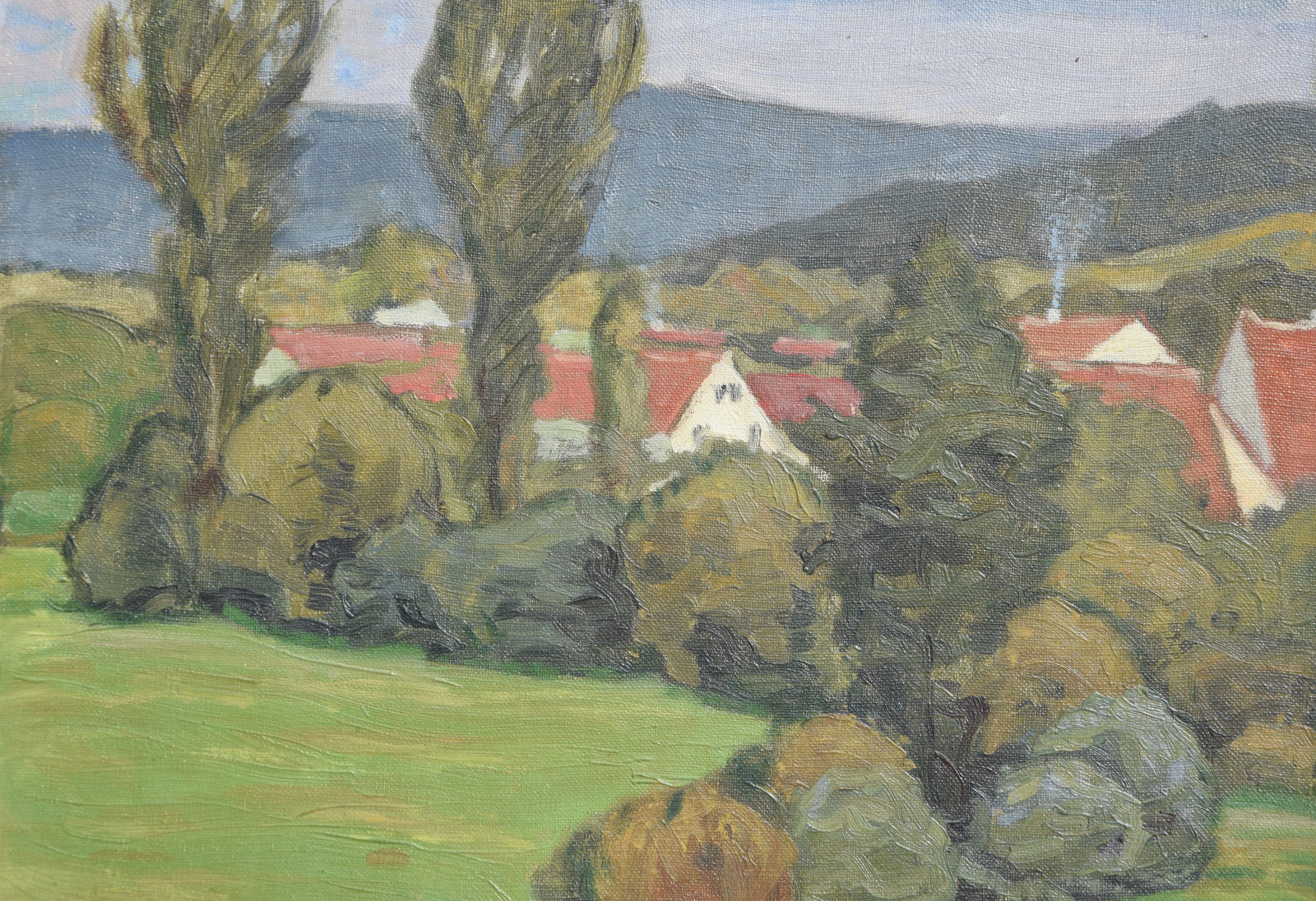 Auch diese dörfliche Ansicht wird Gertrud Schäfer während einer ihrer Reisen als Motiv ausgewählt und malerisch festgehalten haben.