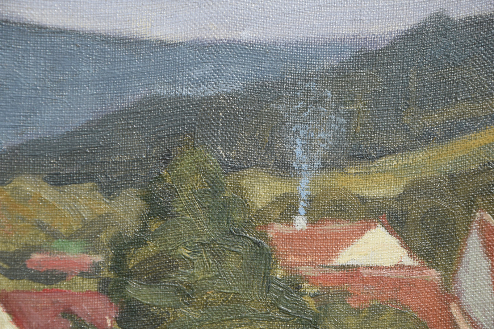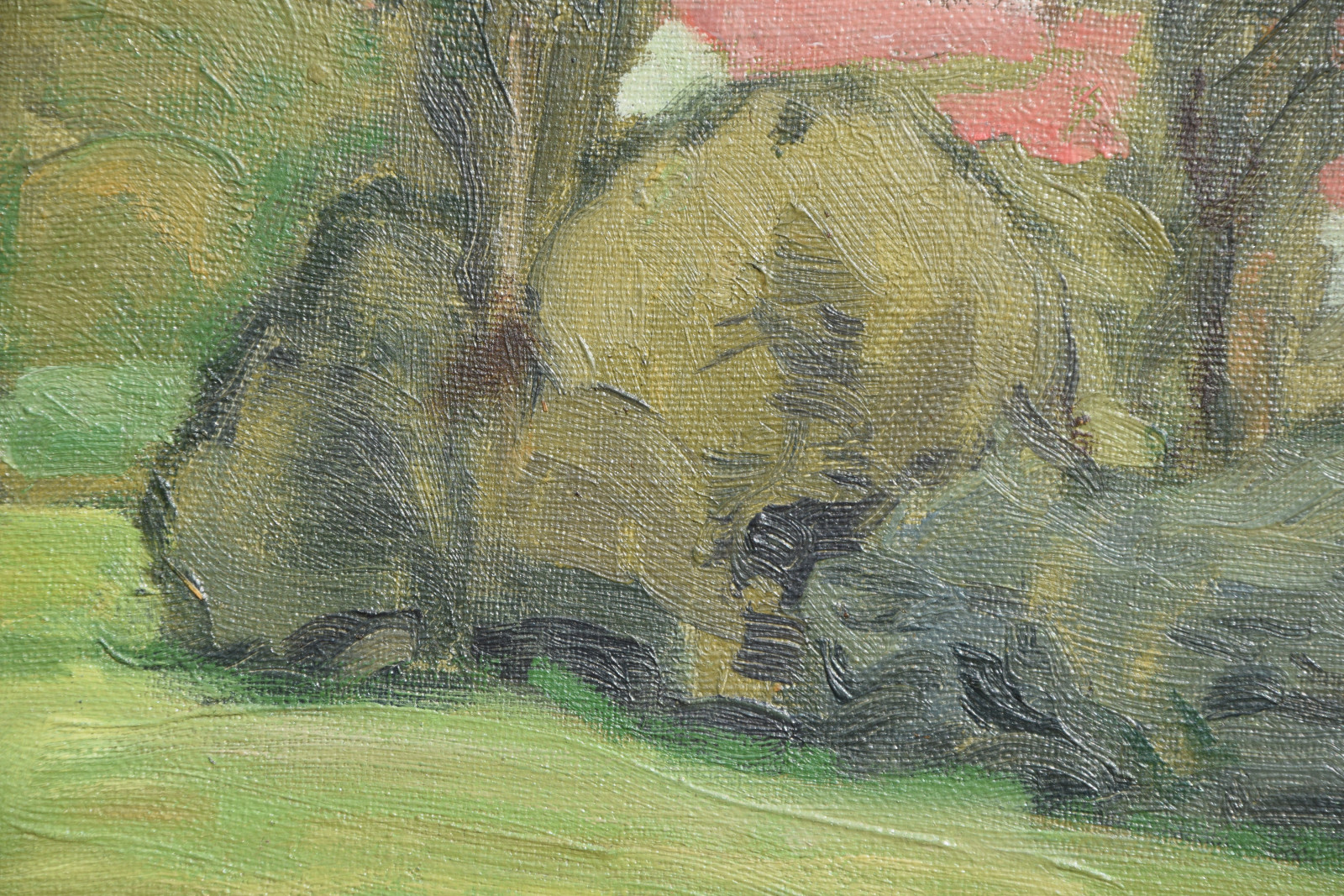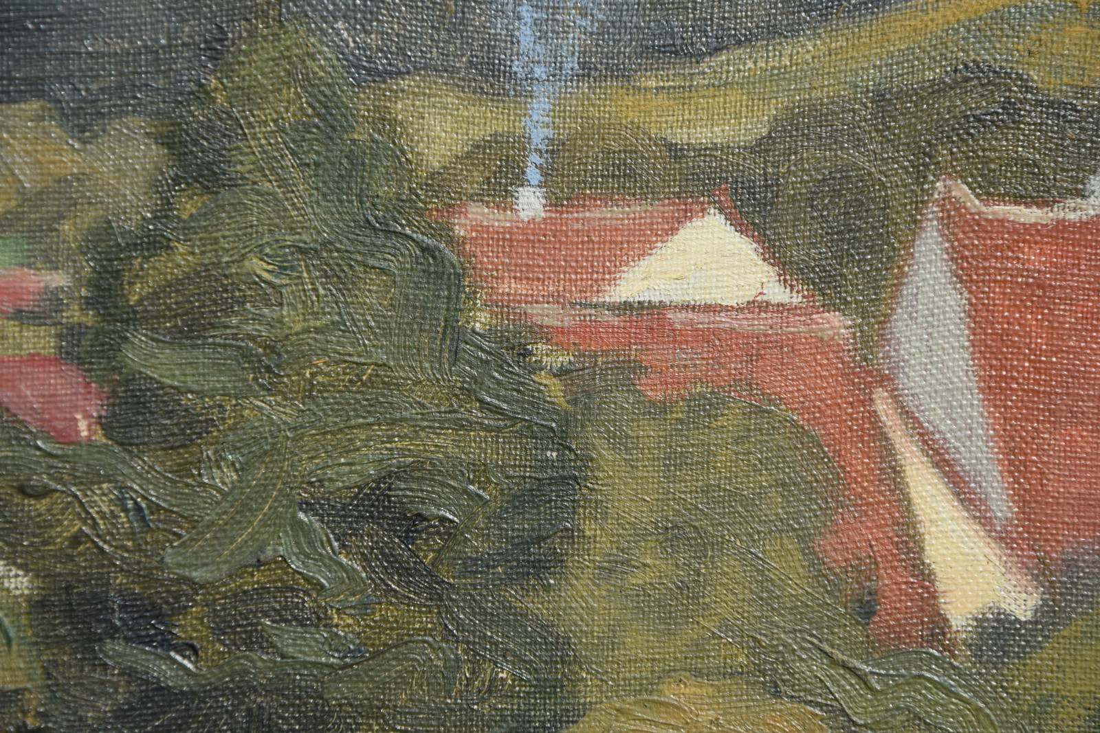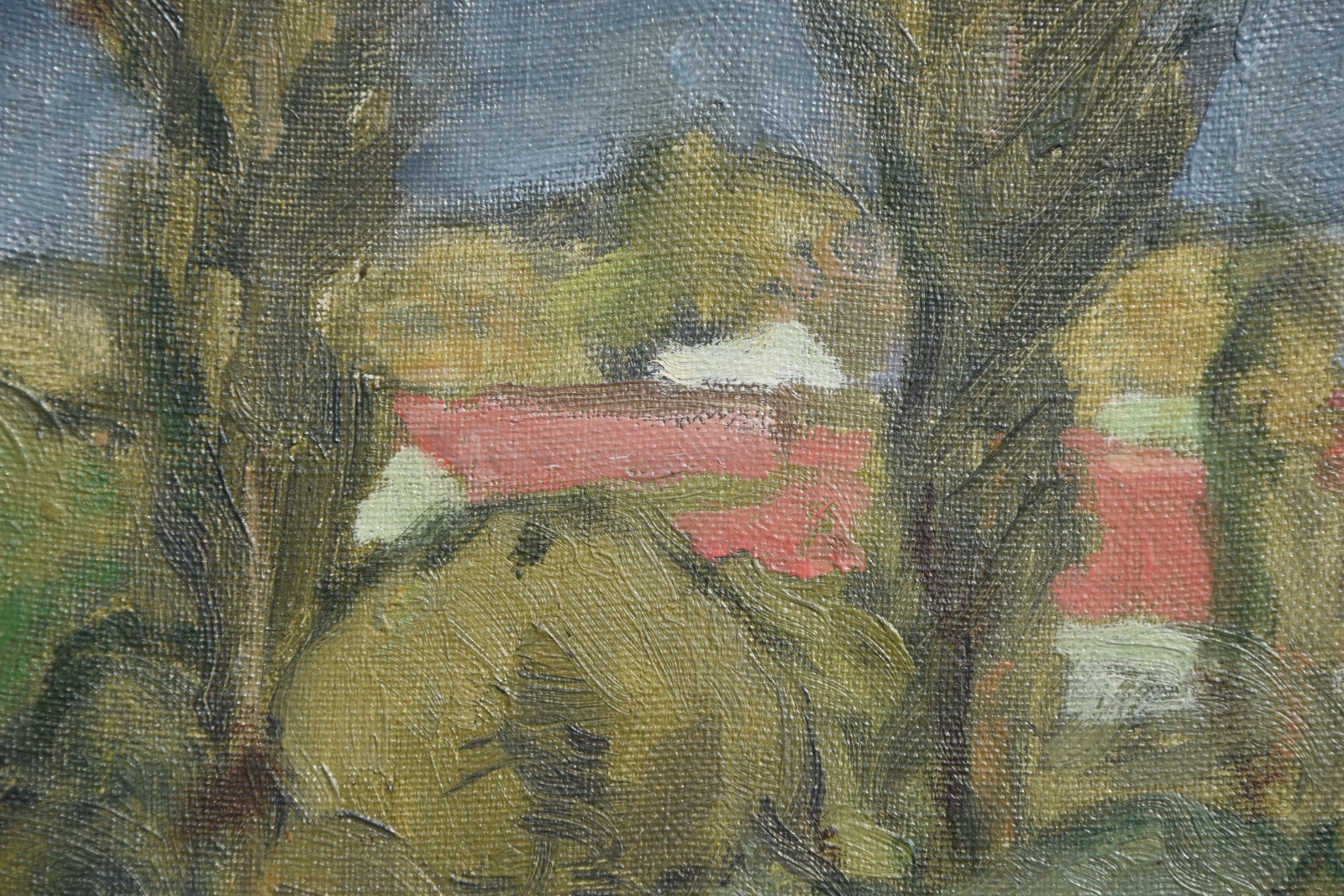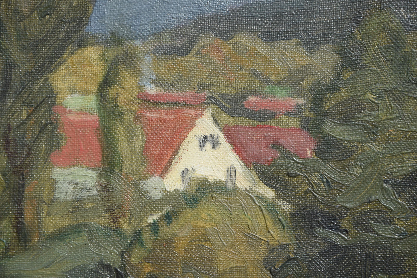 Auch diese dörfliche Ansicht wird Gertrud Schäfer während einer ihrer Reisen als Motiv ausgewählt und malerisch festgehalten haben.