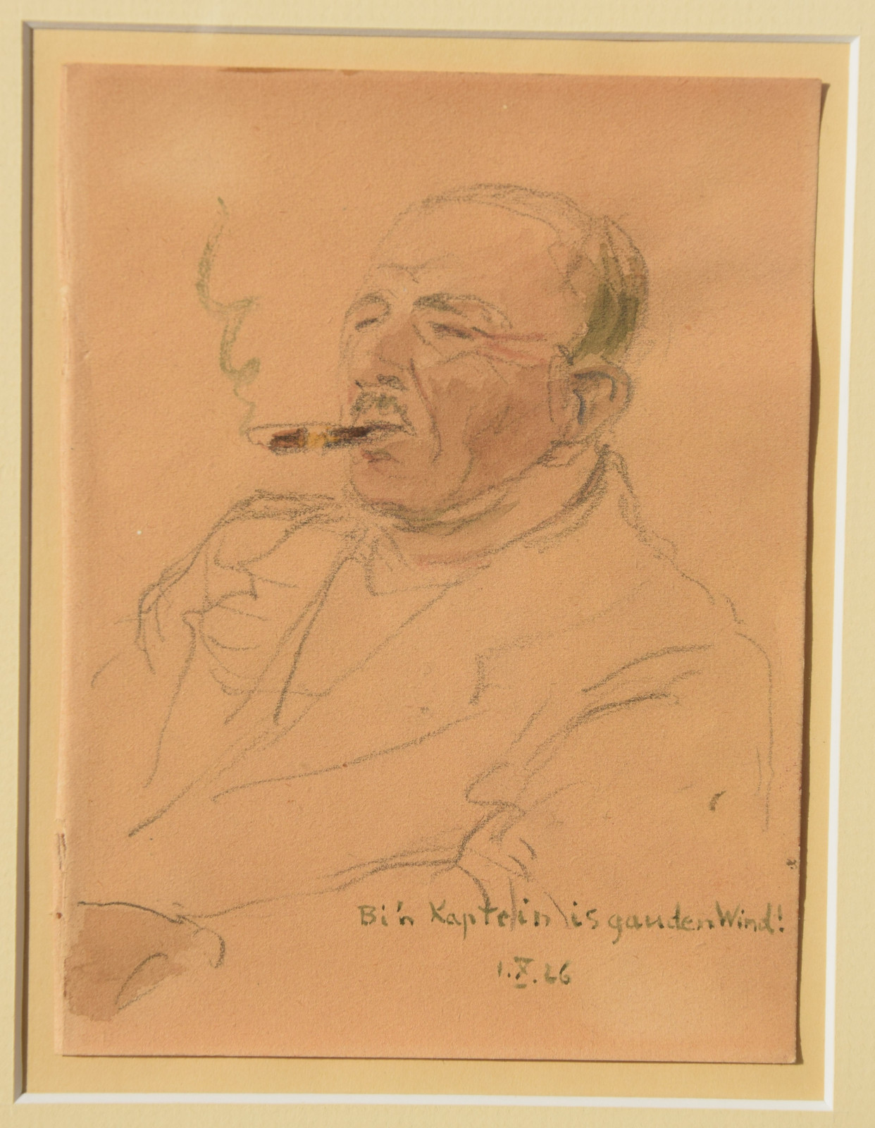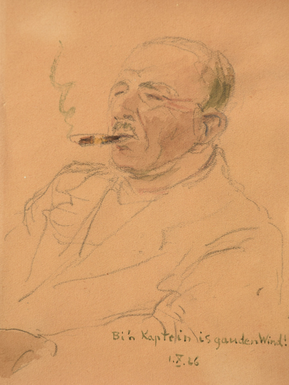 Das hier vorliegende Bildnis eines rauchenden Mannes hat Heinz Wever am 1. Oktober 1926 festgehalten. Eine sehr schöne, treffliche Portraitzeichnung.