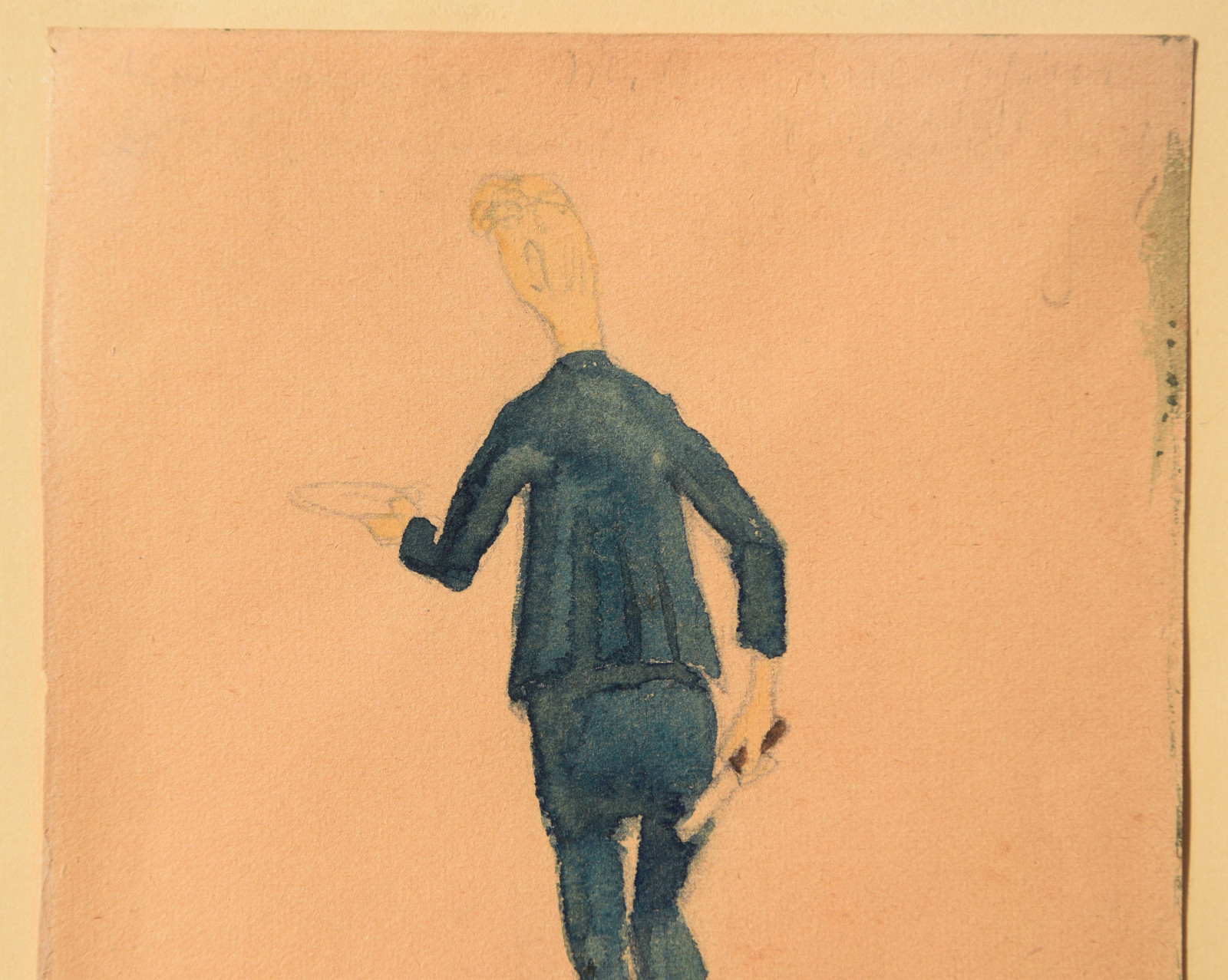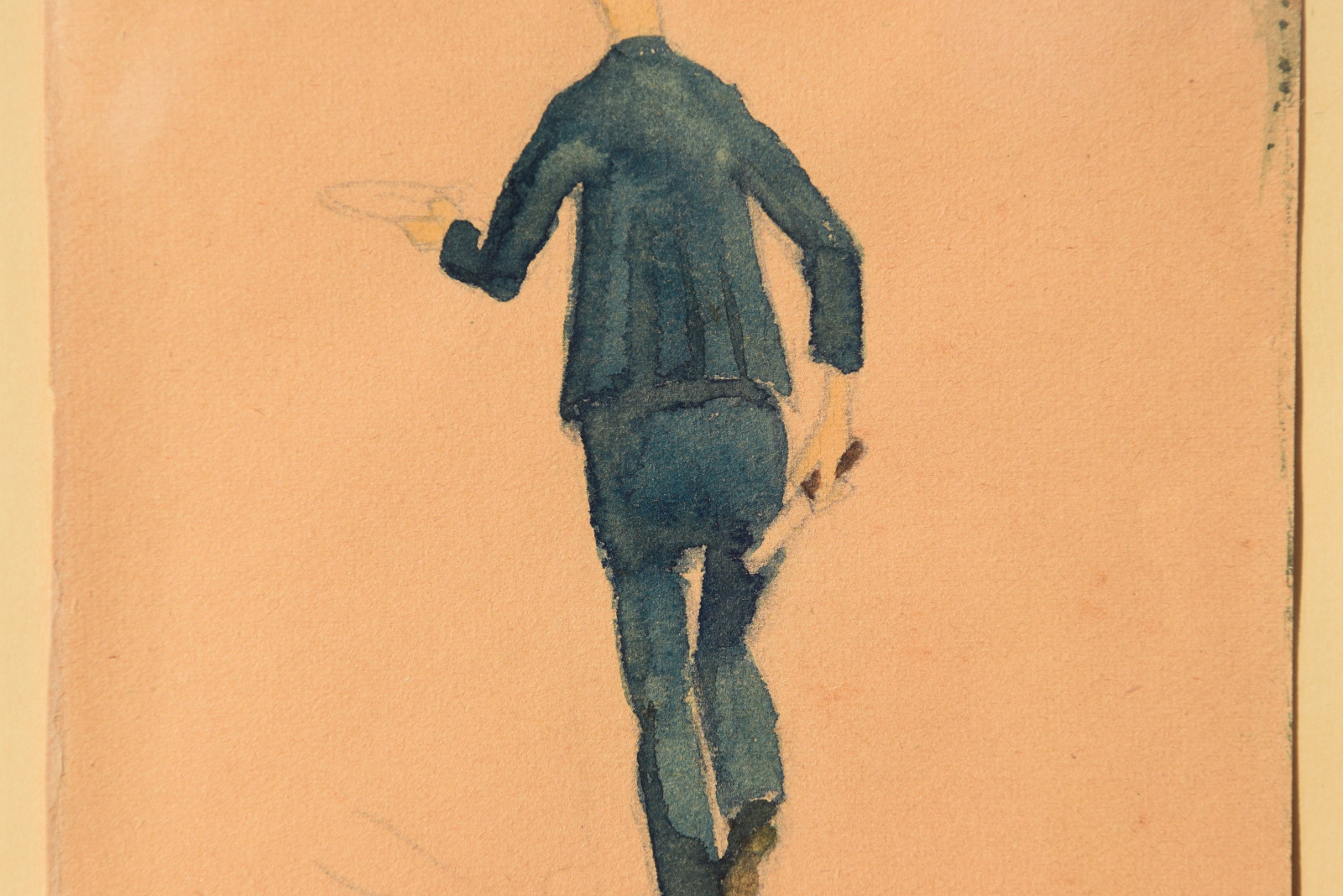 Bleistift & Aquarell auf bräunlichem Papier (aus einem Skizzenbuch), gerahmt unter Glas [Rahmen ungeöffnet]