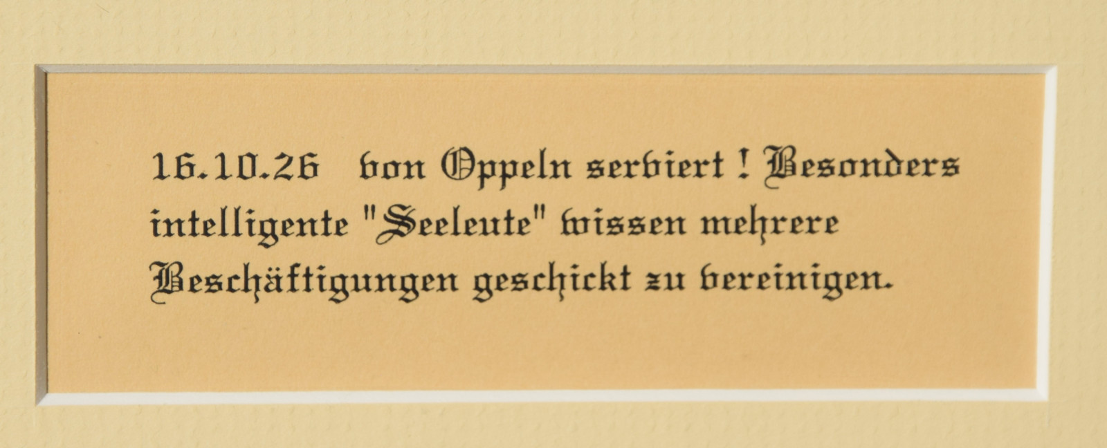 „von Oppeln serviert! Besonders intelligente ‚Seeleute‘ wissen mehrere Beschäftigungen geschickt zu erledigen.“ (1926)