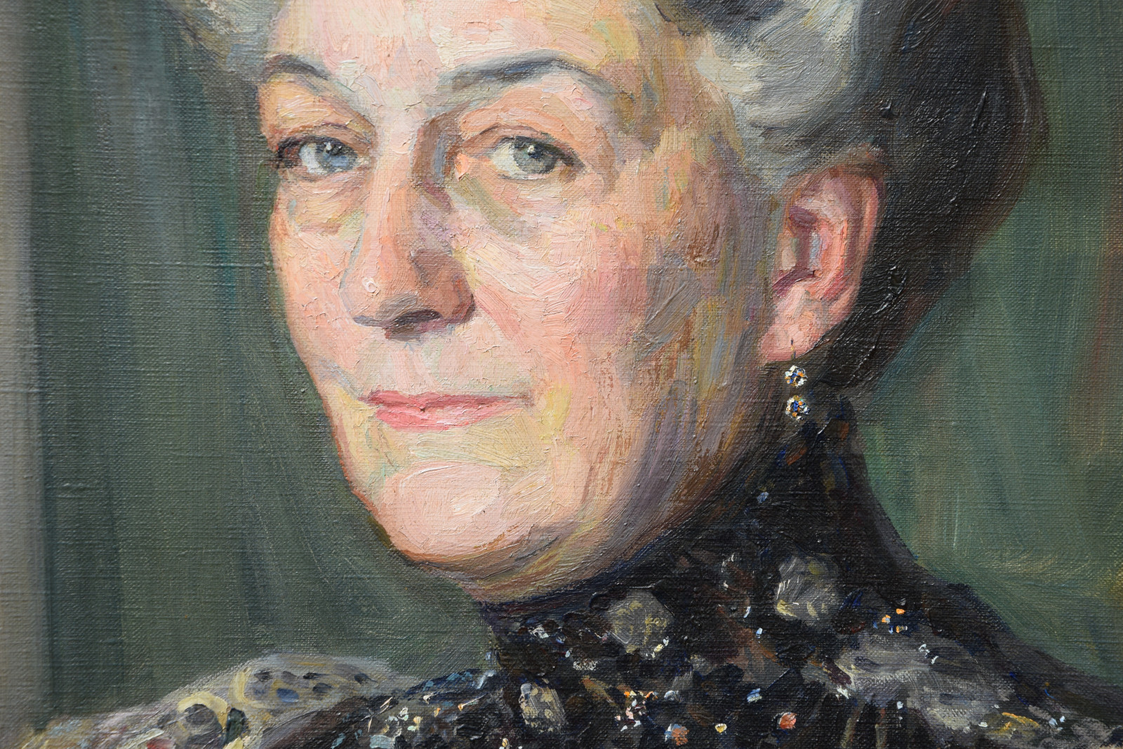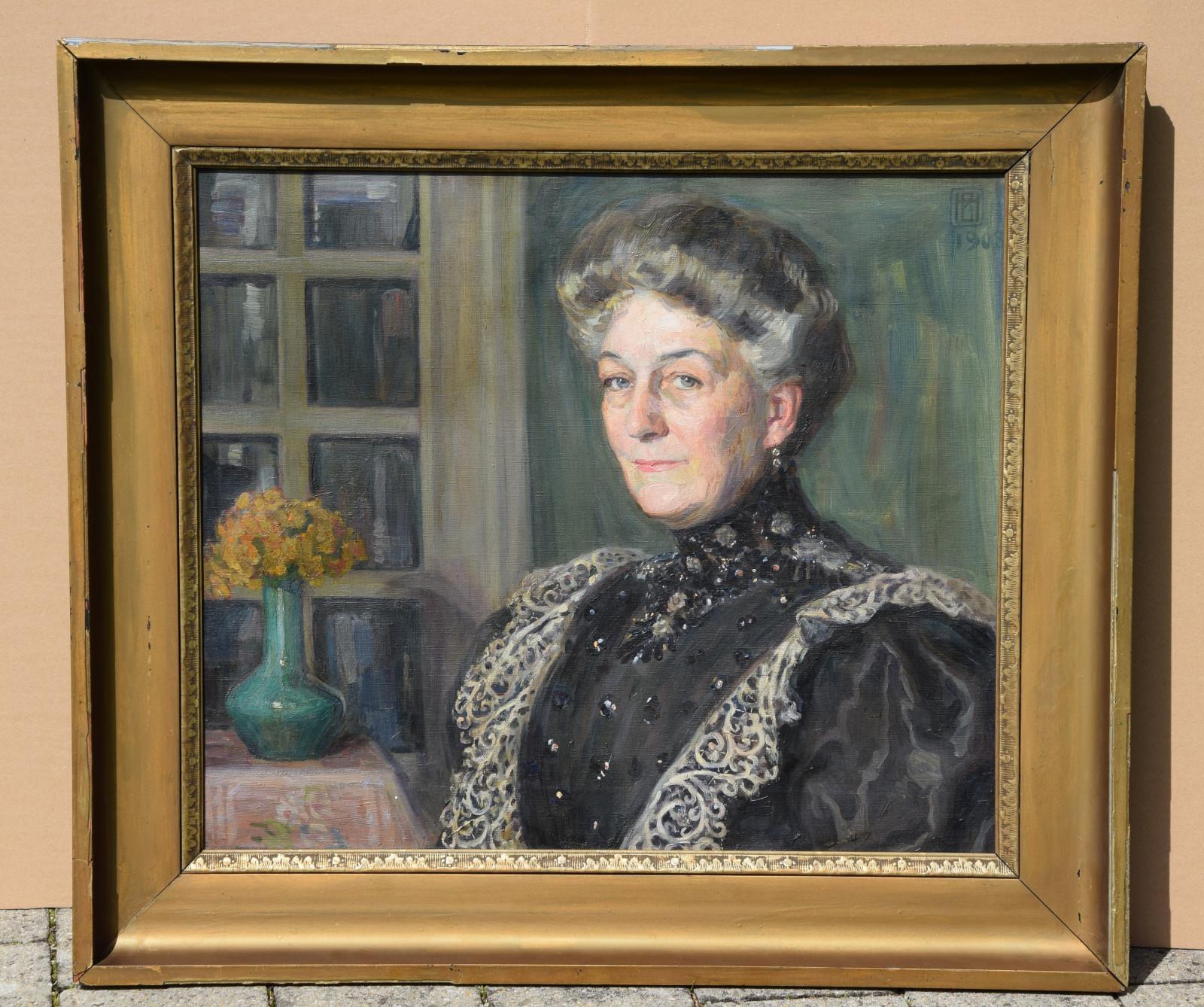 ‚Bildnis einer älteren, eleganten Dame‘ [„Porträt meiner Mutter“, so verso auf dem Keilrahmen nachträglich von fremder Hand (Sohn/Tochter der Dargestellten) in Blei bezeichnet]
