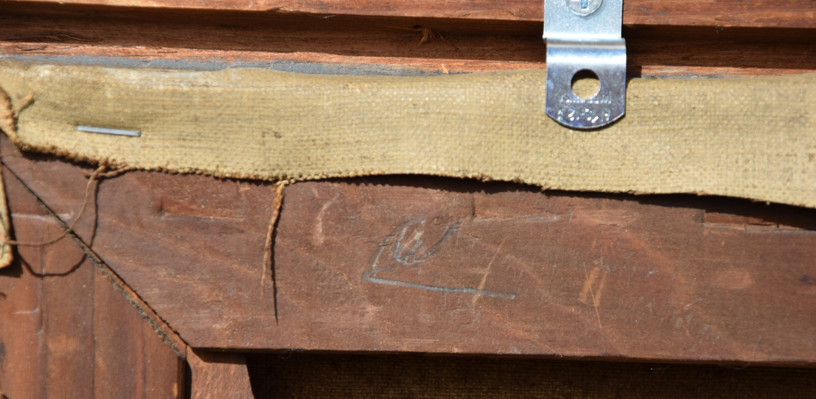 Öl auf Leinwand, Keilrahmen, gerahmt [(wohl) Original-Rahmung durch „Louis Bock & Sohn, Hamburg“, hierzu verso auf Rahmen oben mittig Etikett]