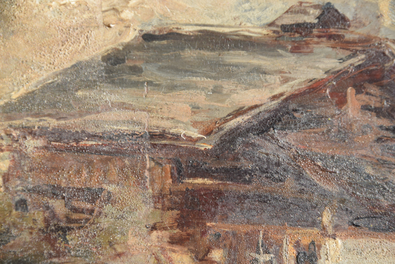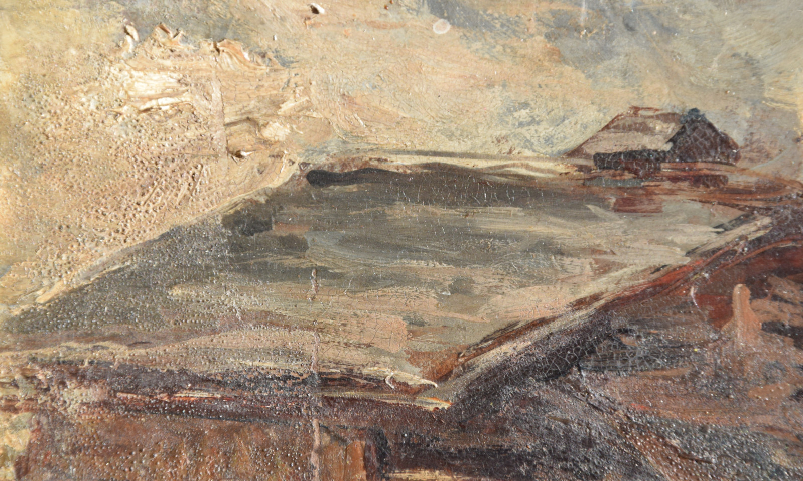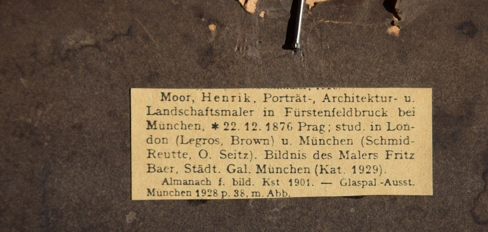 Dieses hier vorliegende, kleinformatige Gemälde hat Moor auf fester Pappe gemalt, was sicherlich der finanziellen Lage des Künstlers zuzurechnen ist. [2]