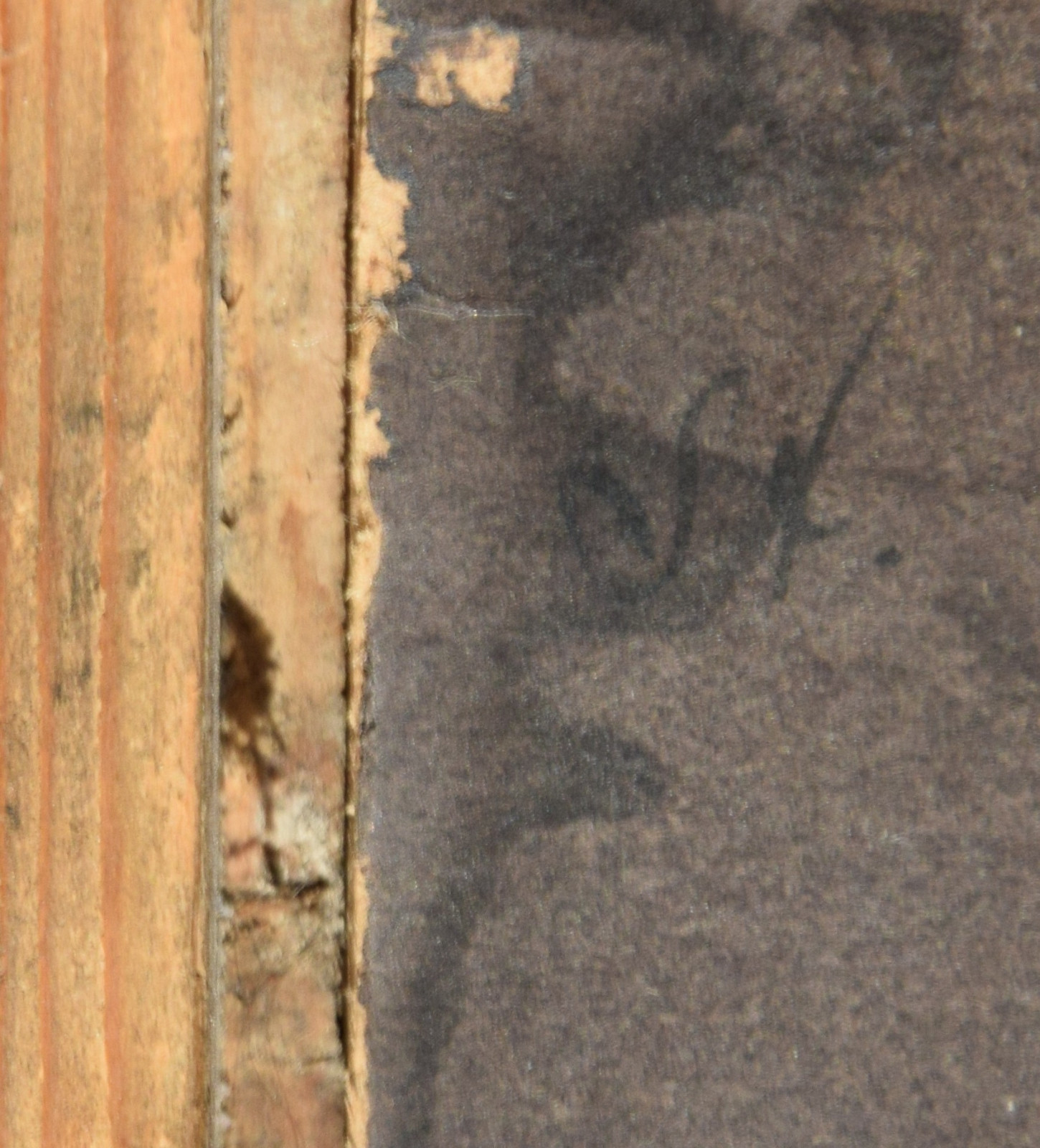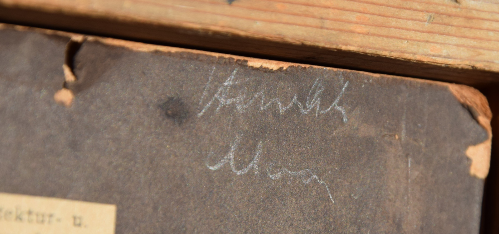 insgesamt etwas fleckig; etwas nachgedunkelt; Kanten / Ecken etwas bestoßen (unter Rahmung nicht sichtbar)