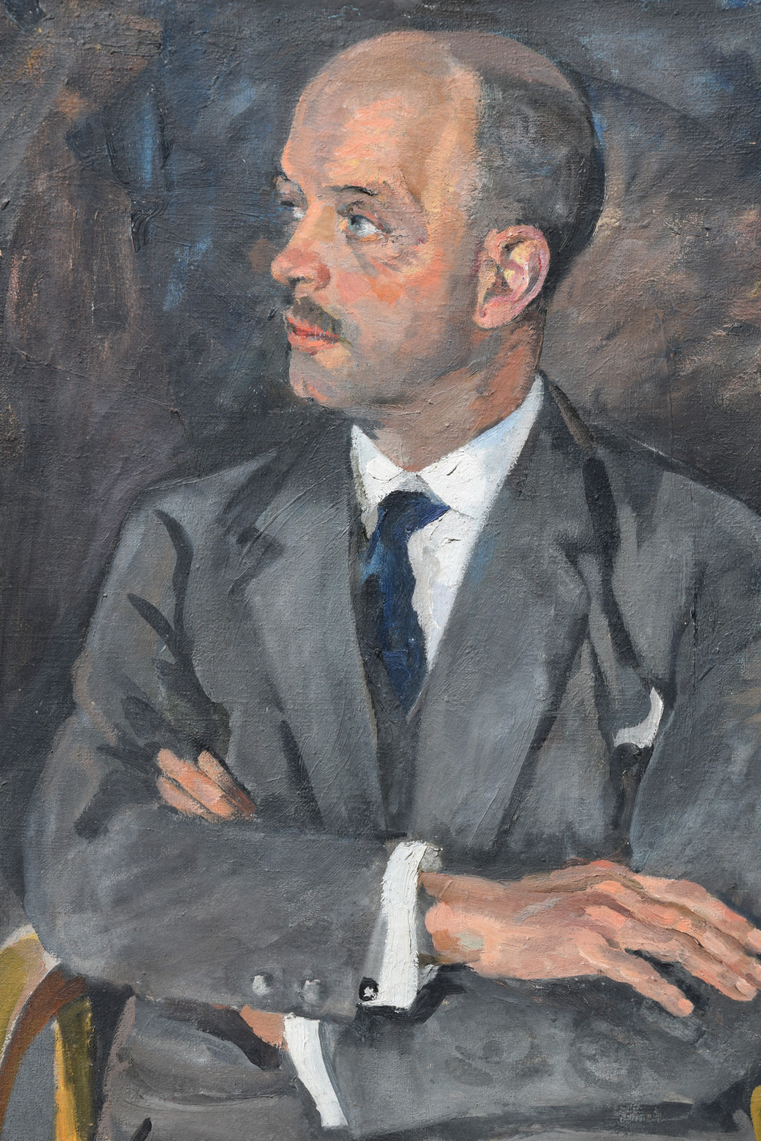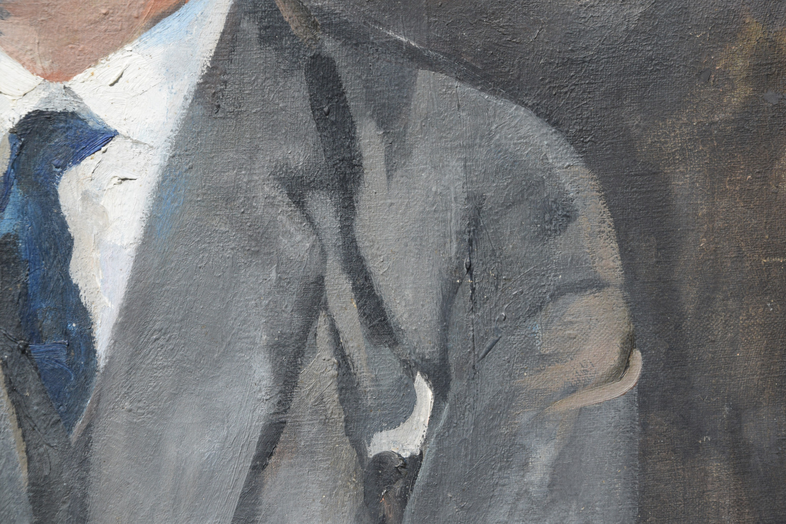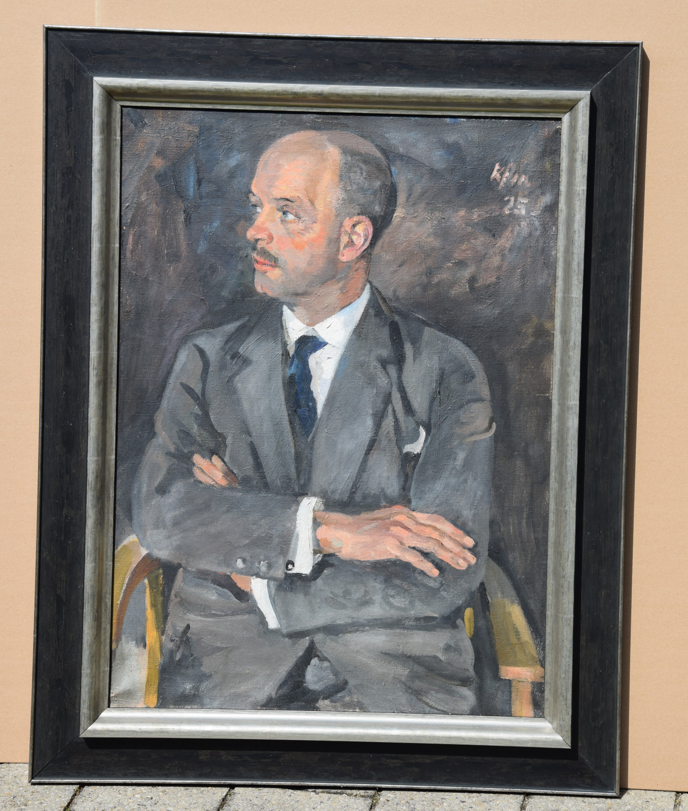 Das vorliegende Gemälde datiert auf 1925 und entstand damit in der Stuttgarter Schaffenszeit des Künstlers. Womöglich wird es sich bei diesem expressiv realistischen Herrenbildnis um ein gelungenes Auftragsportrait handeln.