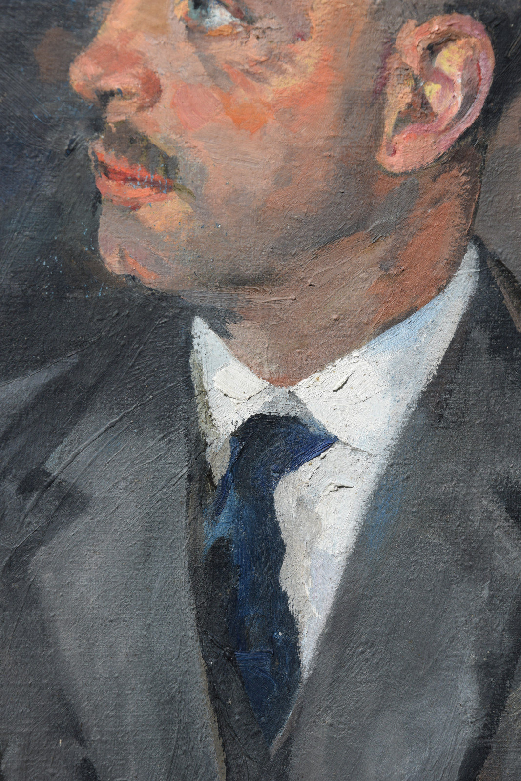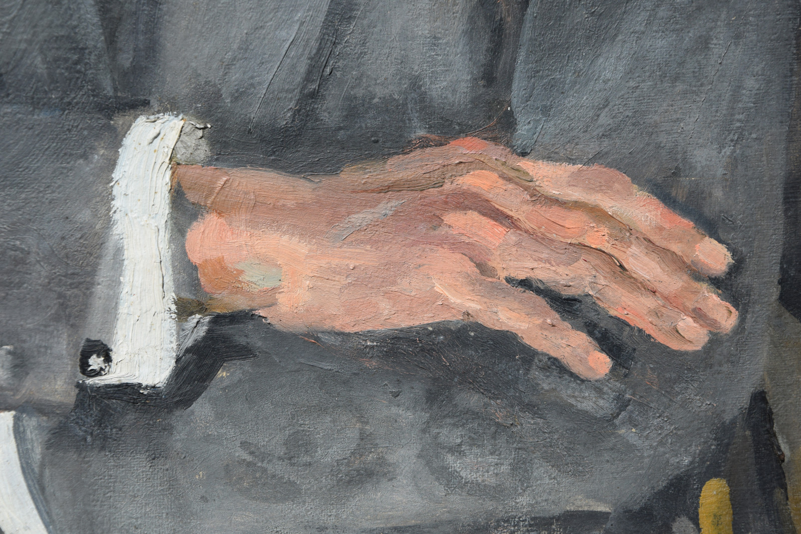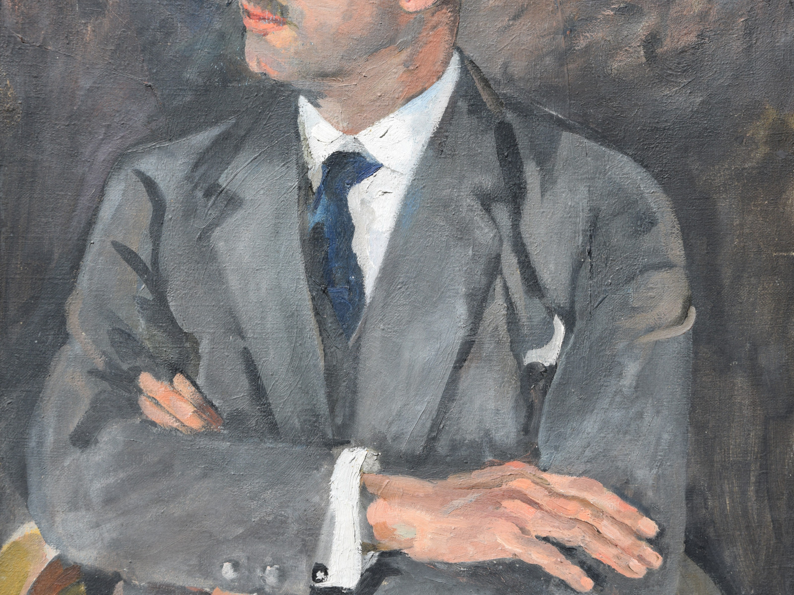 Das vorliegende Gemälde datiert auf 1925 und entstand damit in der Stuttgarter Schaffenszeit des Künstlers. Womöglich wird es sich bei diesem expressiv realistischen Herrenbildnis um ein gelungenes Auftragsportrait handeln.