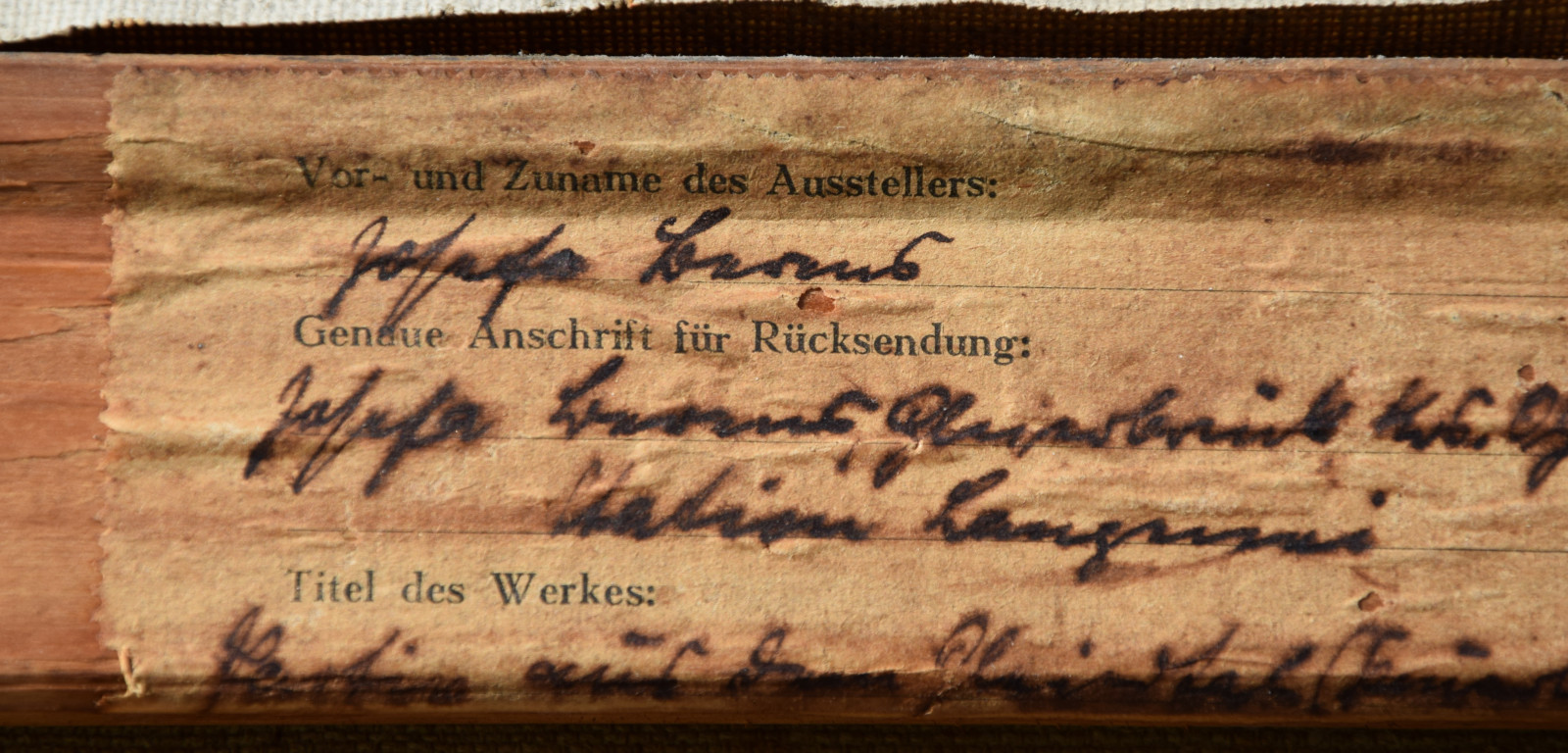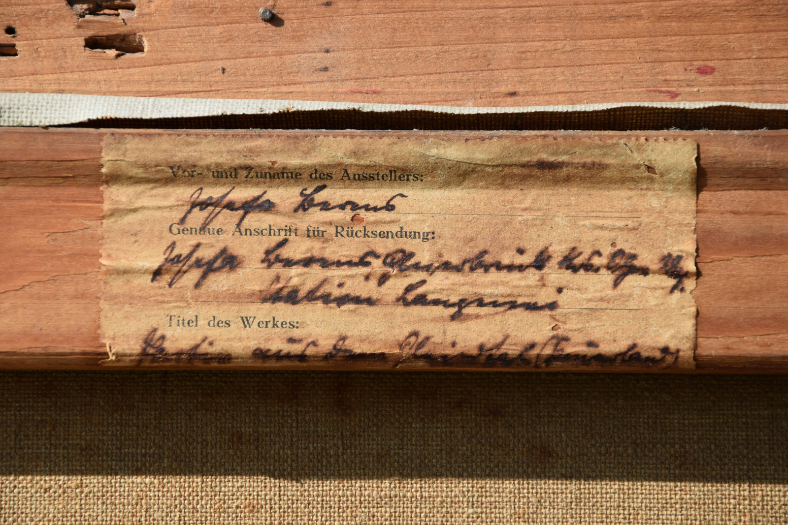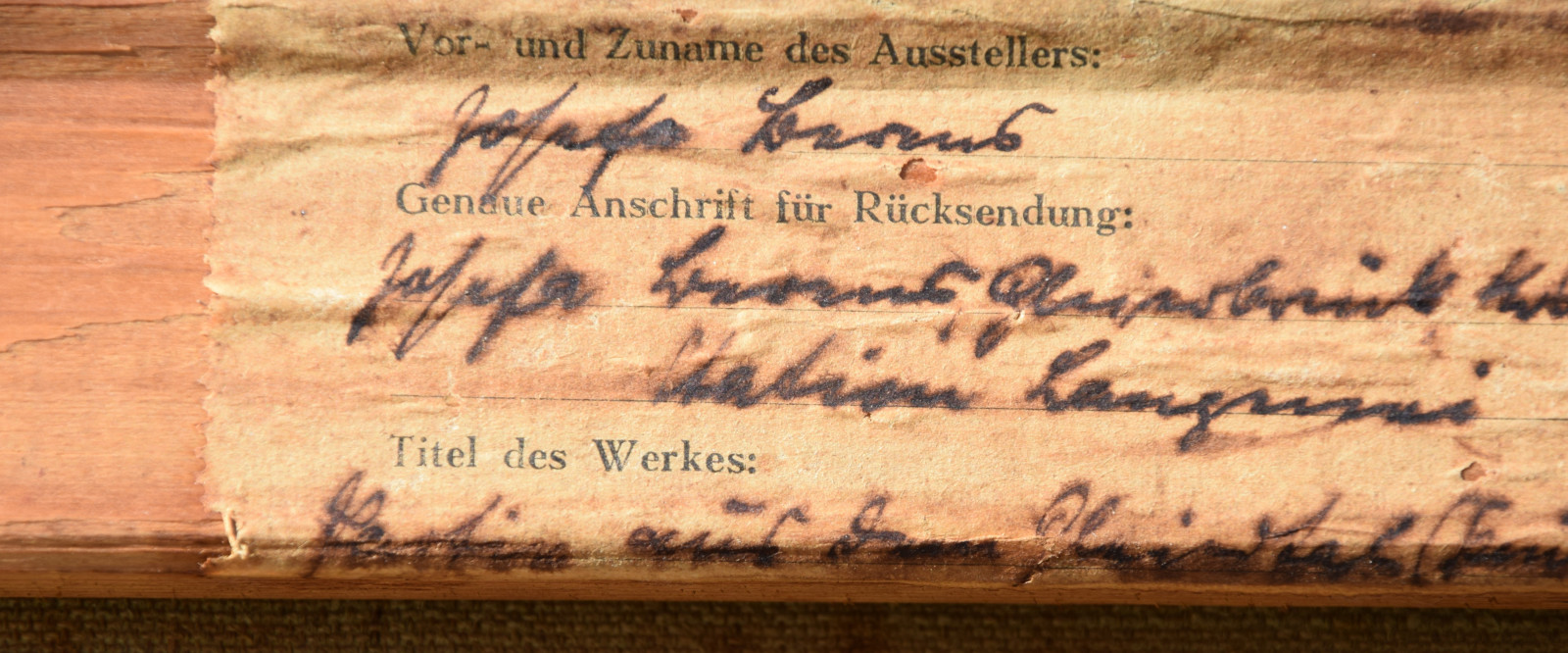 unten links signiert „Josefa Berens“, sowie verso auf dem Keilrahmen oben links handschriftlich auf (Ausstellungs-)Etikett nochmals signiert und mit damaliger Adresse in „Gleierbrück, Kr. Olpe“ bezeichnet