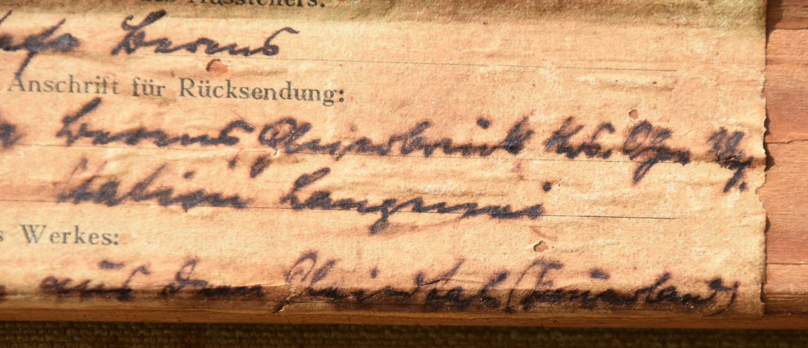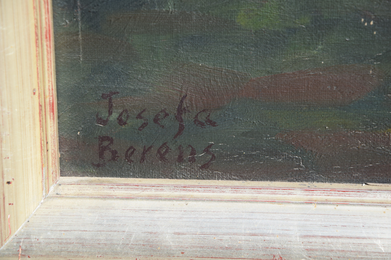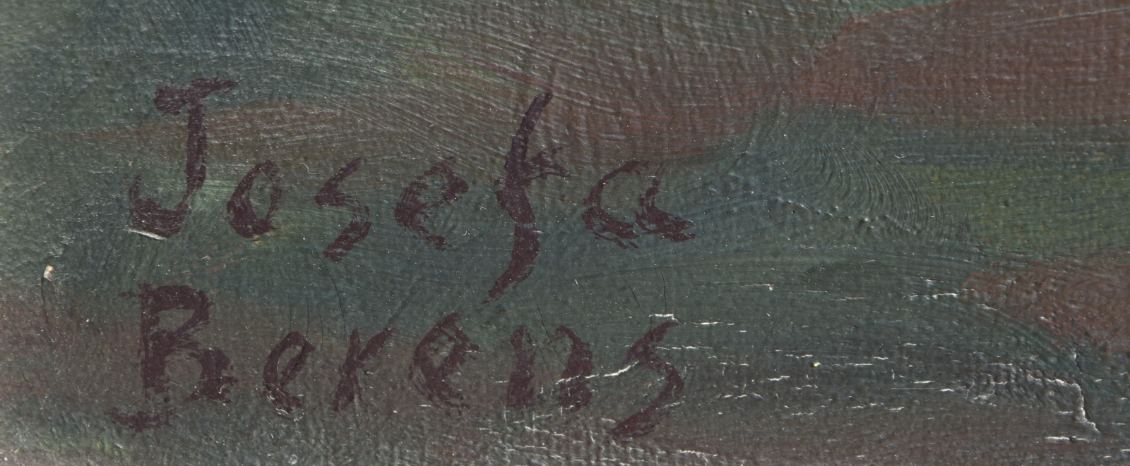 unten links signiert „Josefa Berens“, sowie verso auf dem Keilrahmen oben links handschriftlich auf (Ausstellungs-)Etikett nochmals signiert und mit damaliger Adresse in „Gleierbrück, Kr. Olpe“ bezeichnet