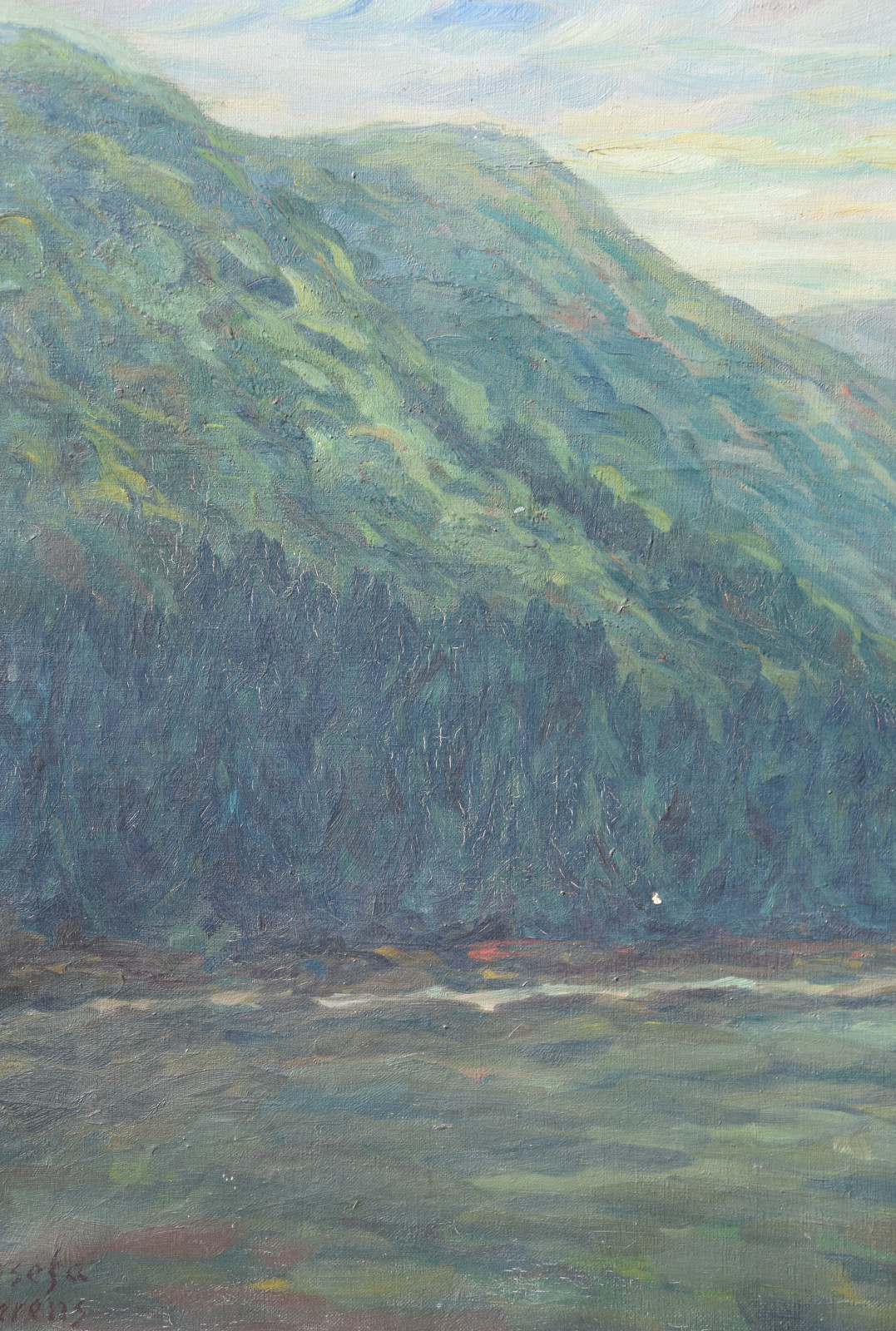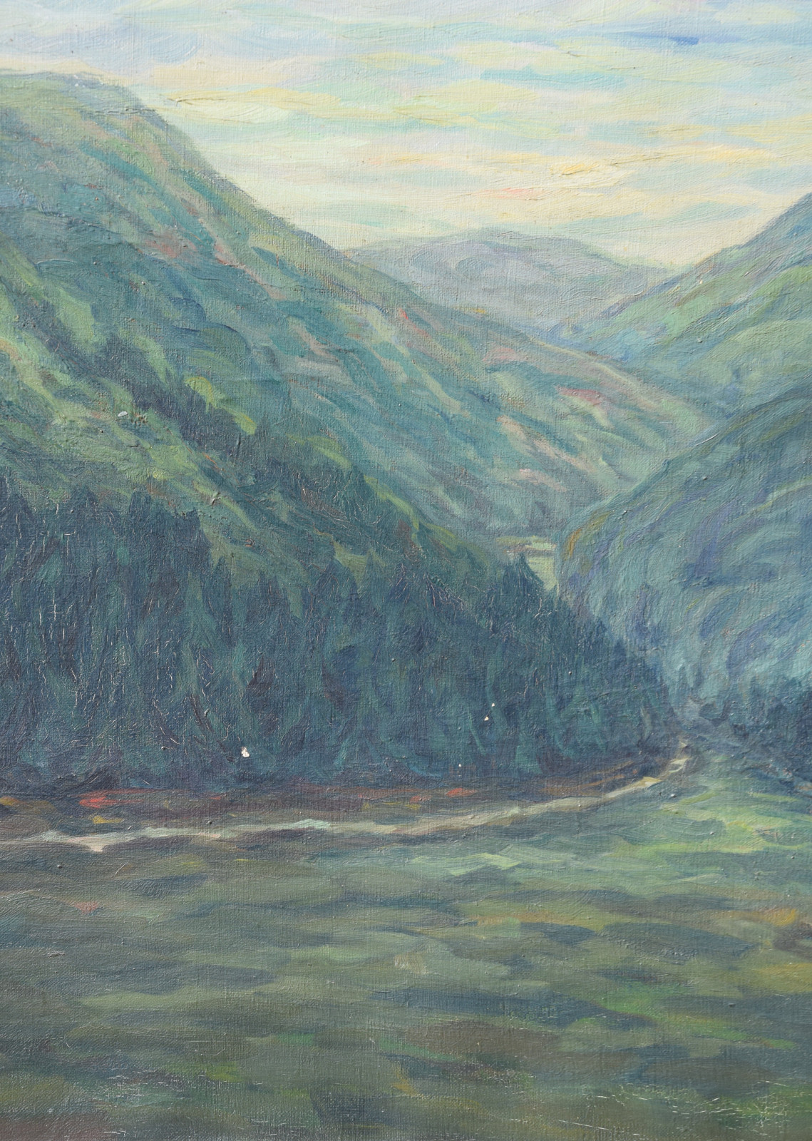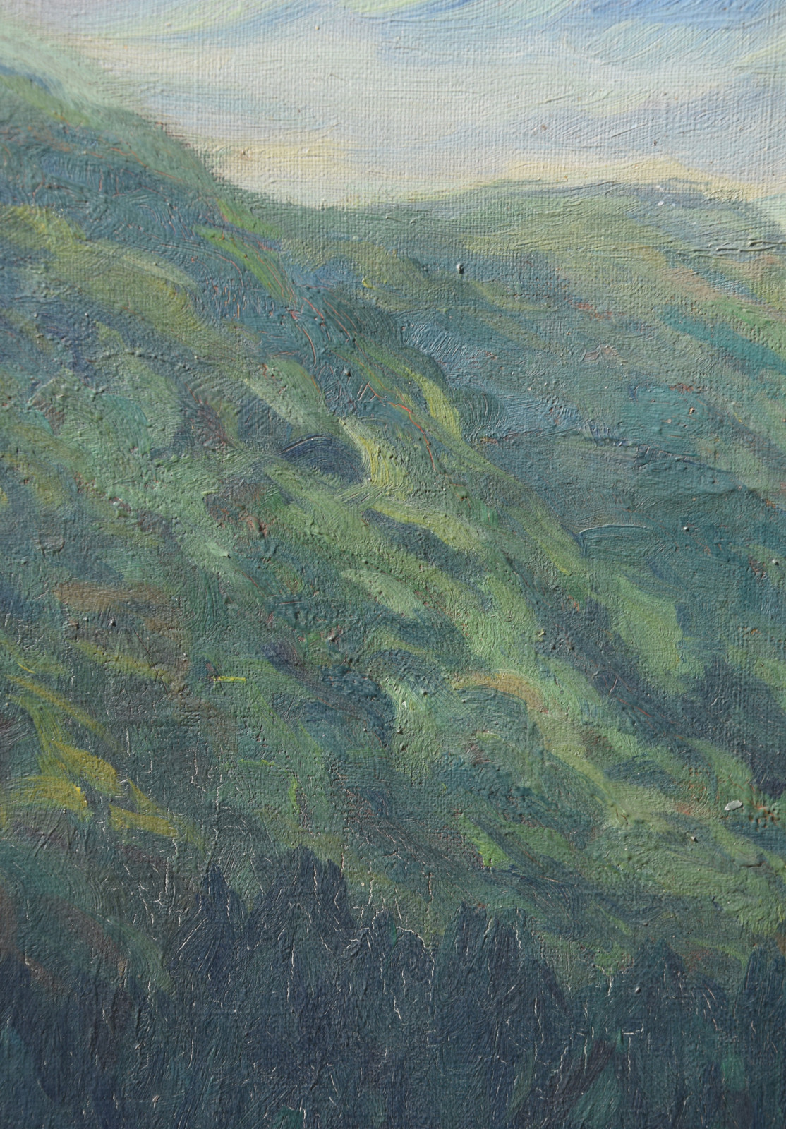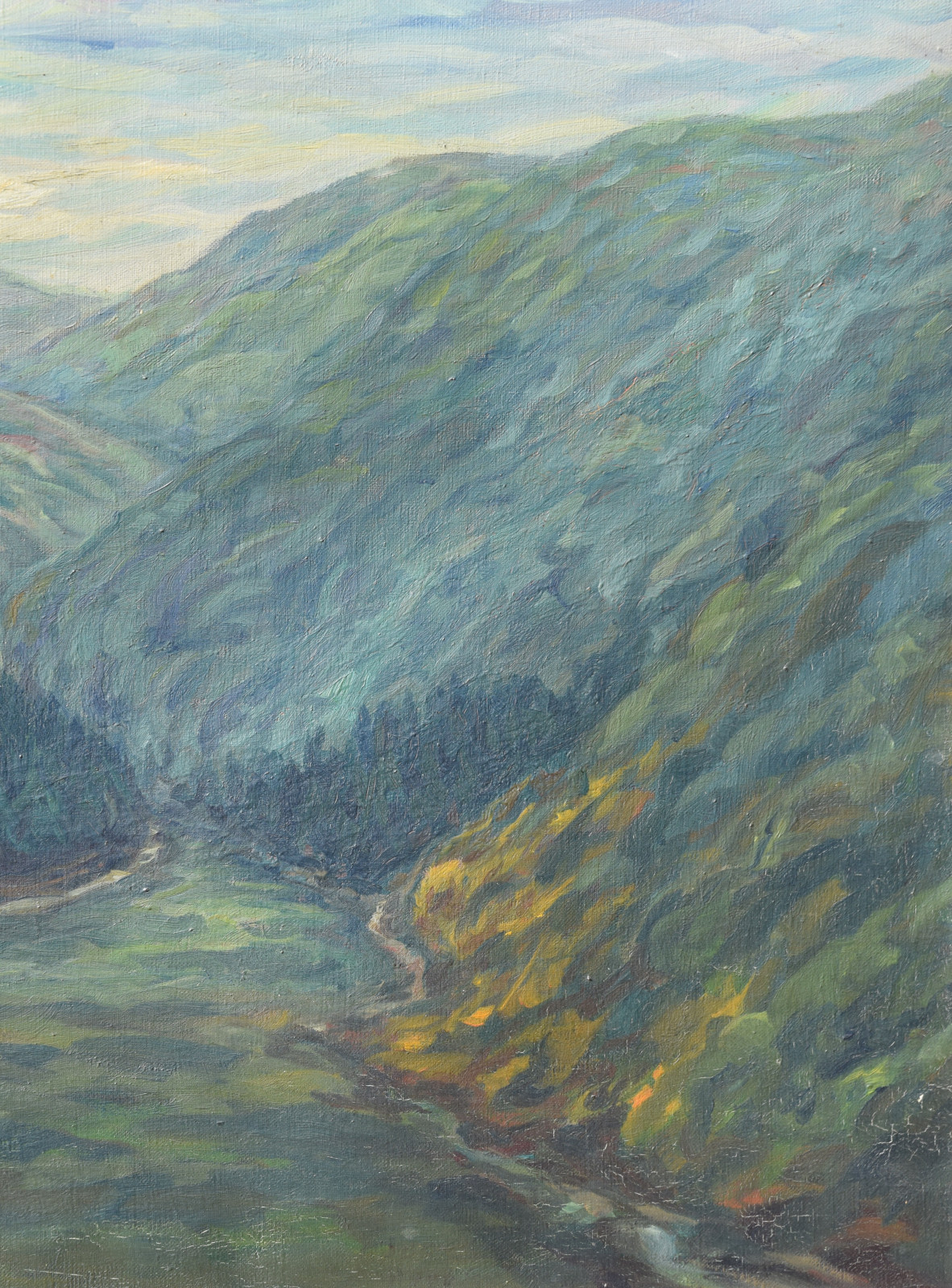 Gemälde von Josefa Berens-Totenohl sind überaus selten, allenfalls tauchen gelegentlich einmal in Auftrag entstandene Portraits auf. In diesem Fall eine frühe Landschaft aus einer für die Künstlerin ganz bedeutenden Schaffens- und Lebensphase.