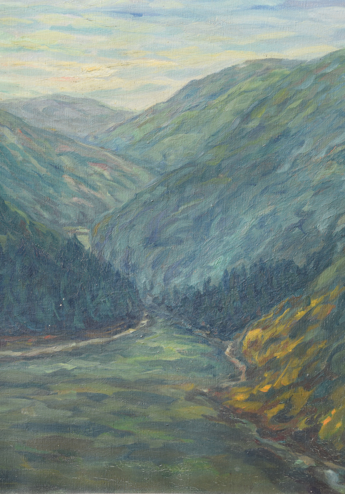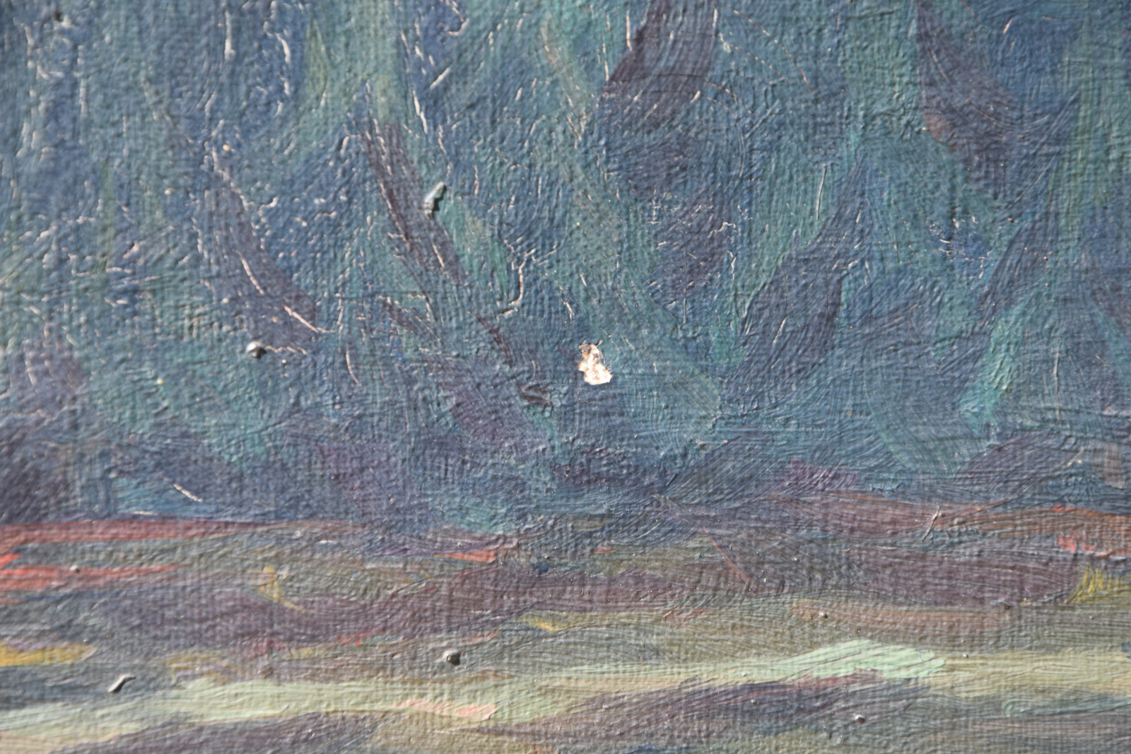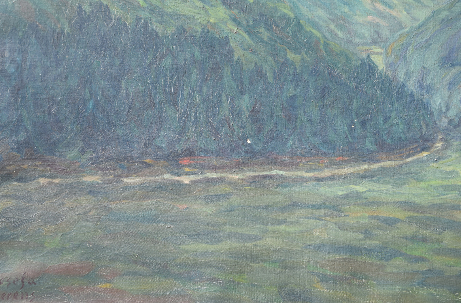 Gemälde von Josefa Berens-Totenohl sind überaus selten, allenfalls tauchen gelegentlich einmal in Auftrag entstandene Portraits auf. In diesem Fall eine frühe Landschaft aus einer für die Künstlerin ganz bedeutenden Schaffens- und Lebensphase.
