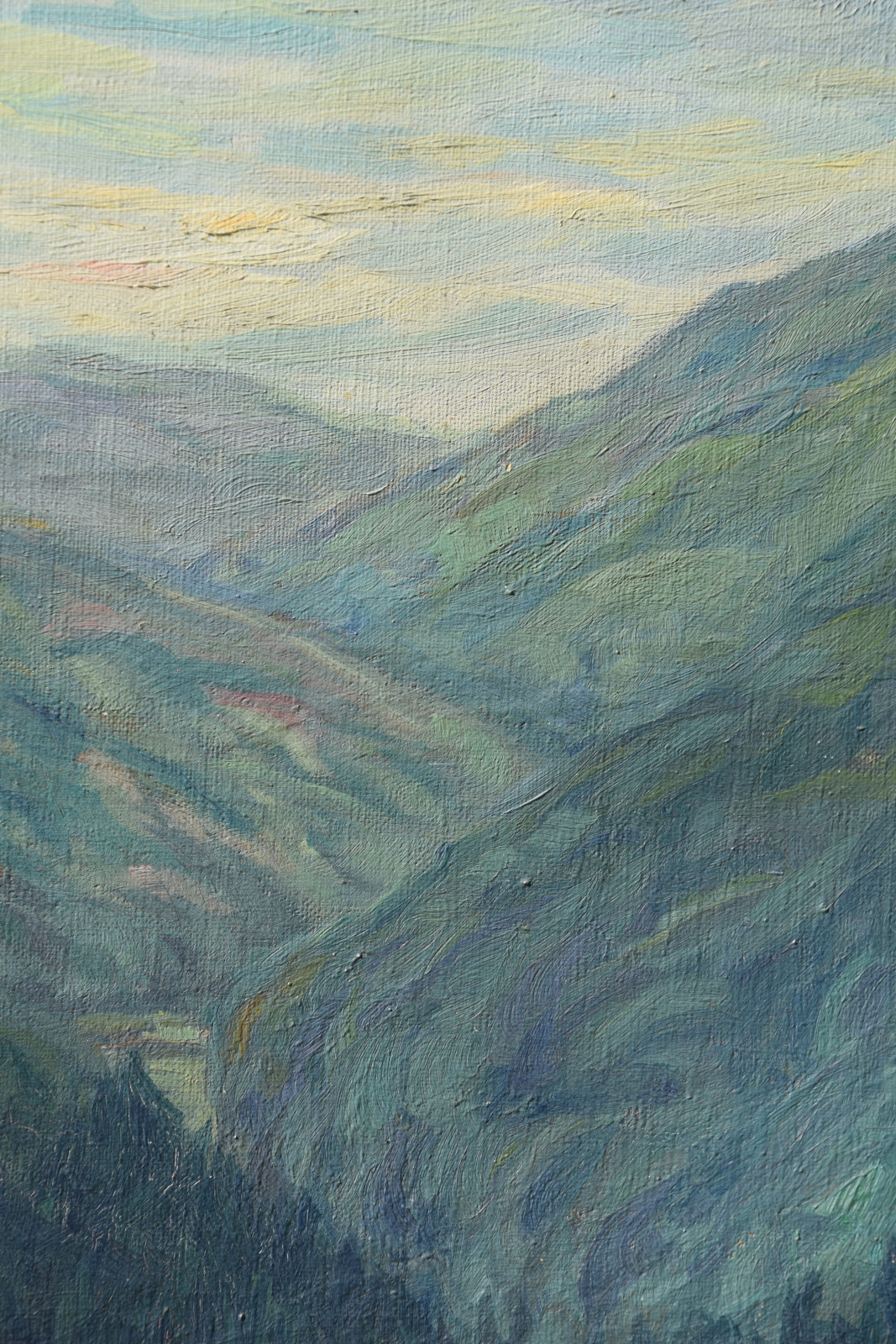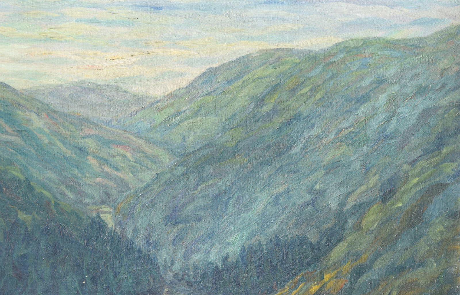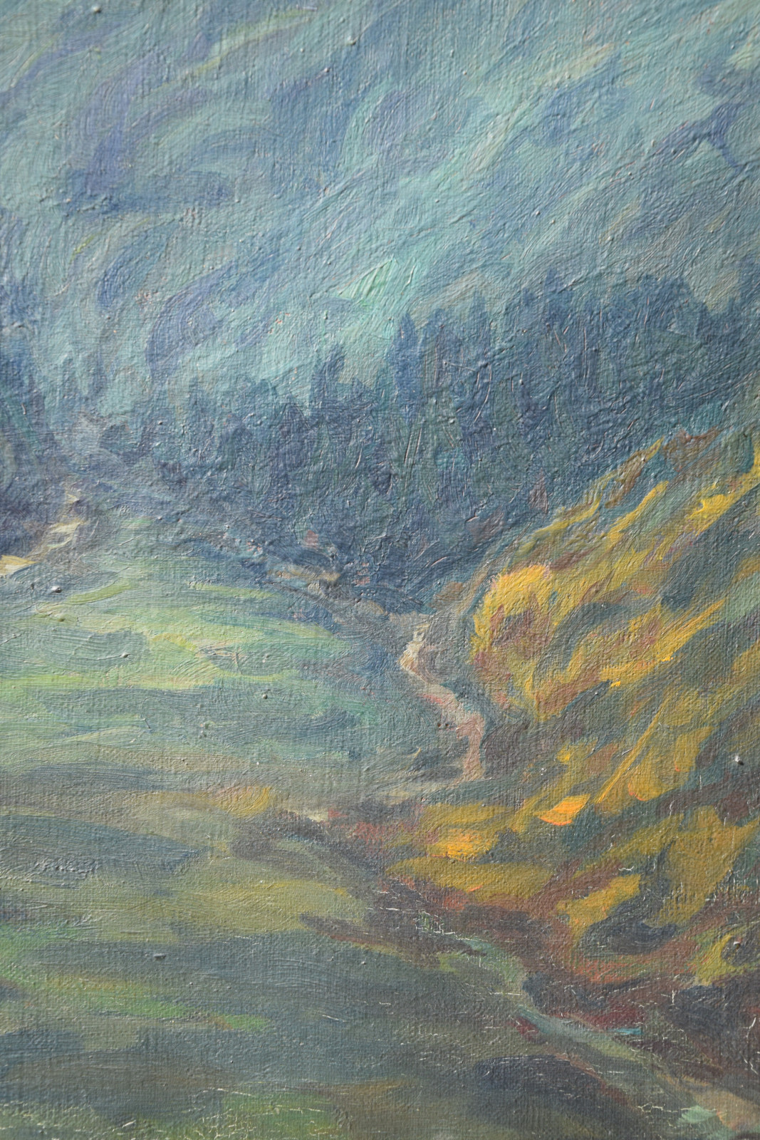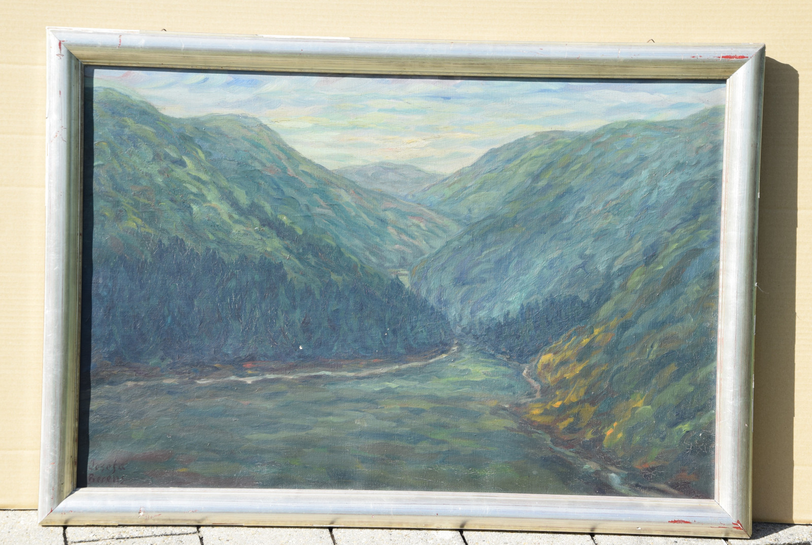 Gemälde von Josefa Berens-Totenohl sind überaus selten, allenfalls tauchen gelegentlich einmal in Auftrag entstandene Portraits auf. In diesem Fall eine frühe Landschaft aus einer für die Künstlerin ganz bedeutenden Schaffens- und Lebensphase.