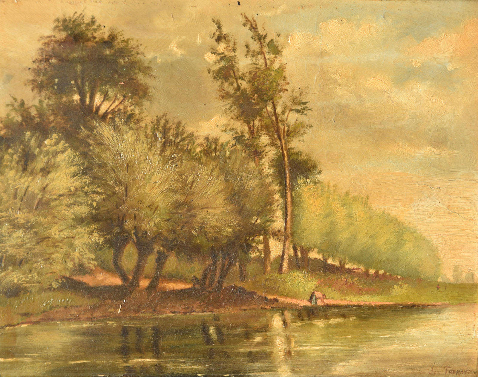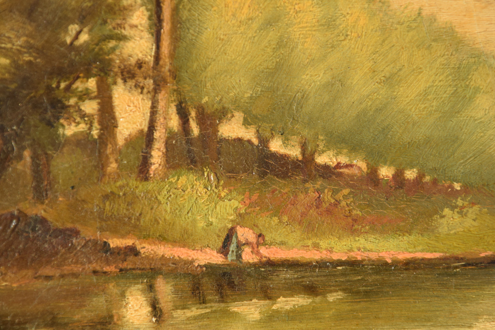 (wohl) Flusslandschaft bei Maastricht mit Wäscherin und weiteren Personen (o.J.)