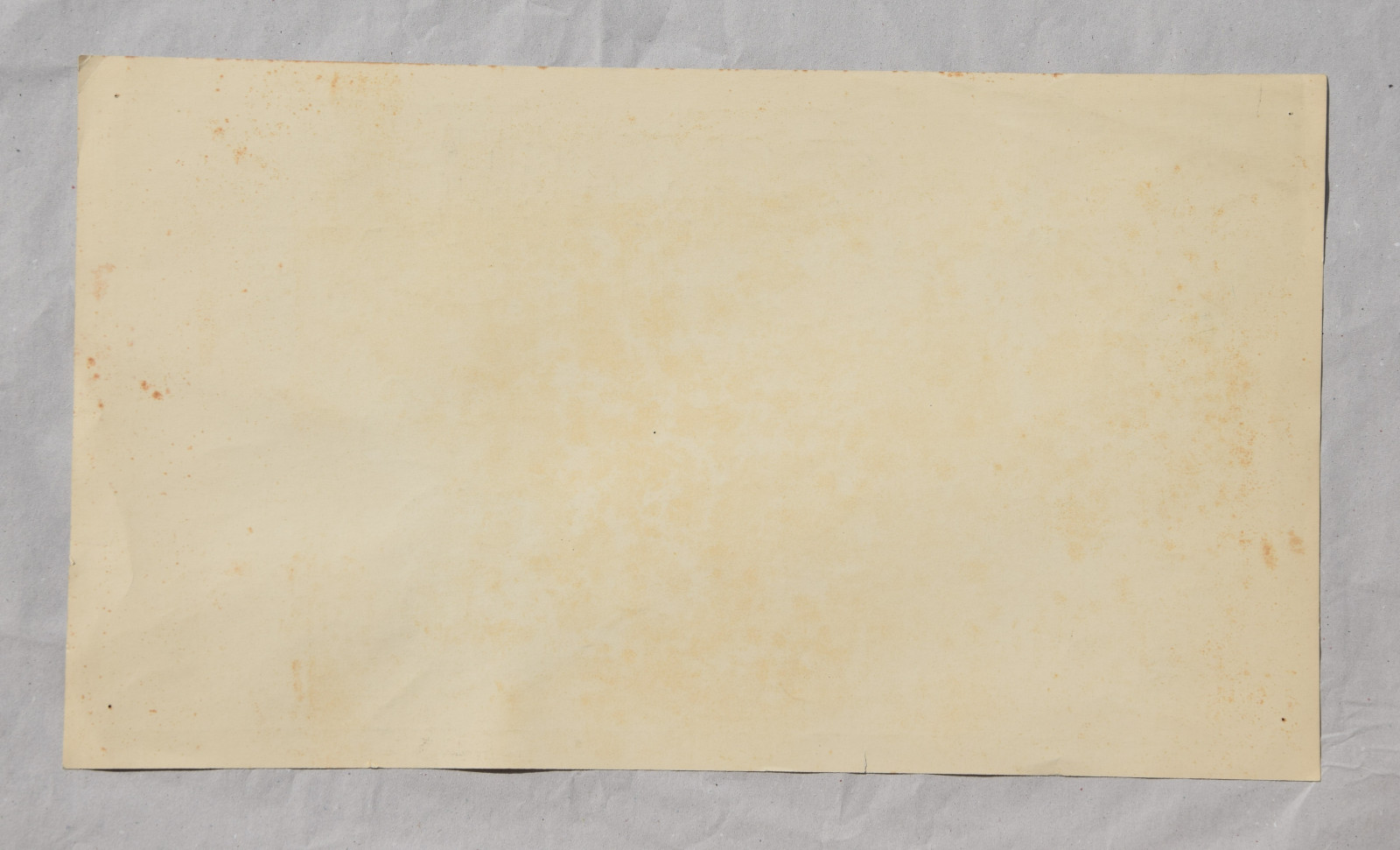 leicht (stock-)fleckig; im rechten Bereich etwas stärker fleckig; in den vier Eckbereichen kleine Einstichlöchlein; leichte Druckstellen; Ecken etwas bestoßen; Ecke oben rechts mit kleinen Knickspuren; Ecke unten rechts mit schwacher Knickspur; recto & verso leicht gebräunt; verso etwas fleckig