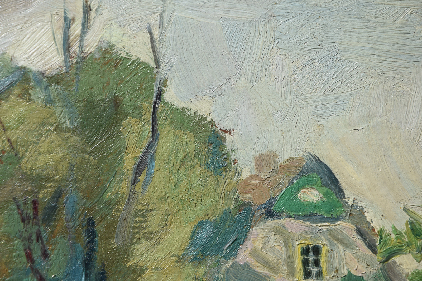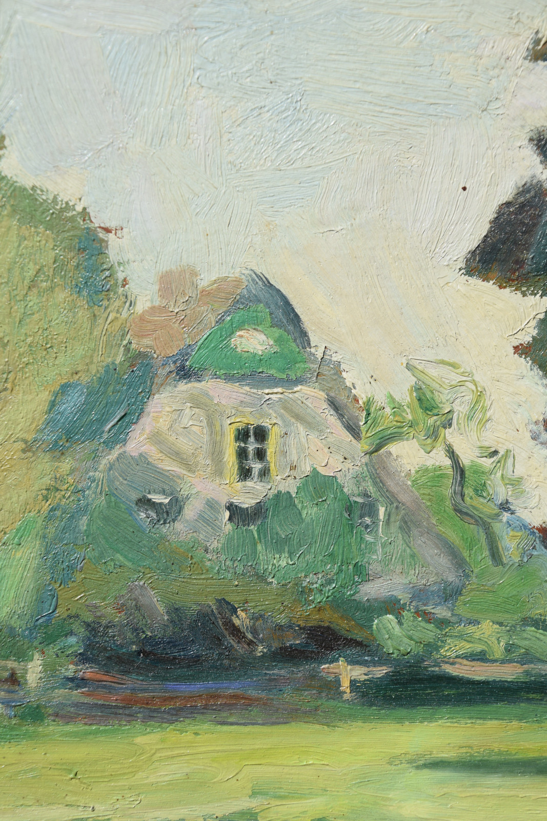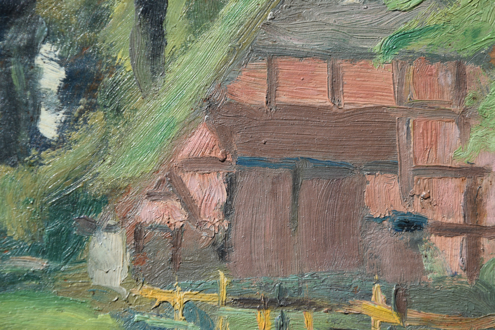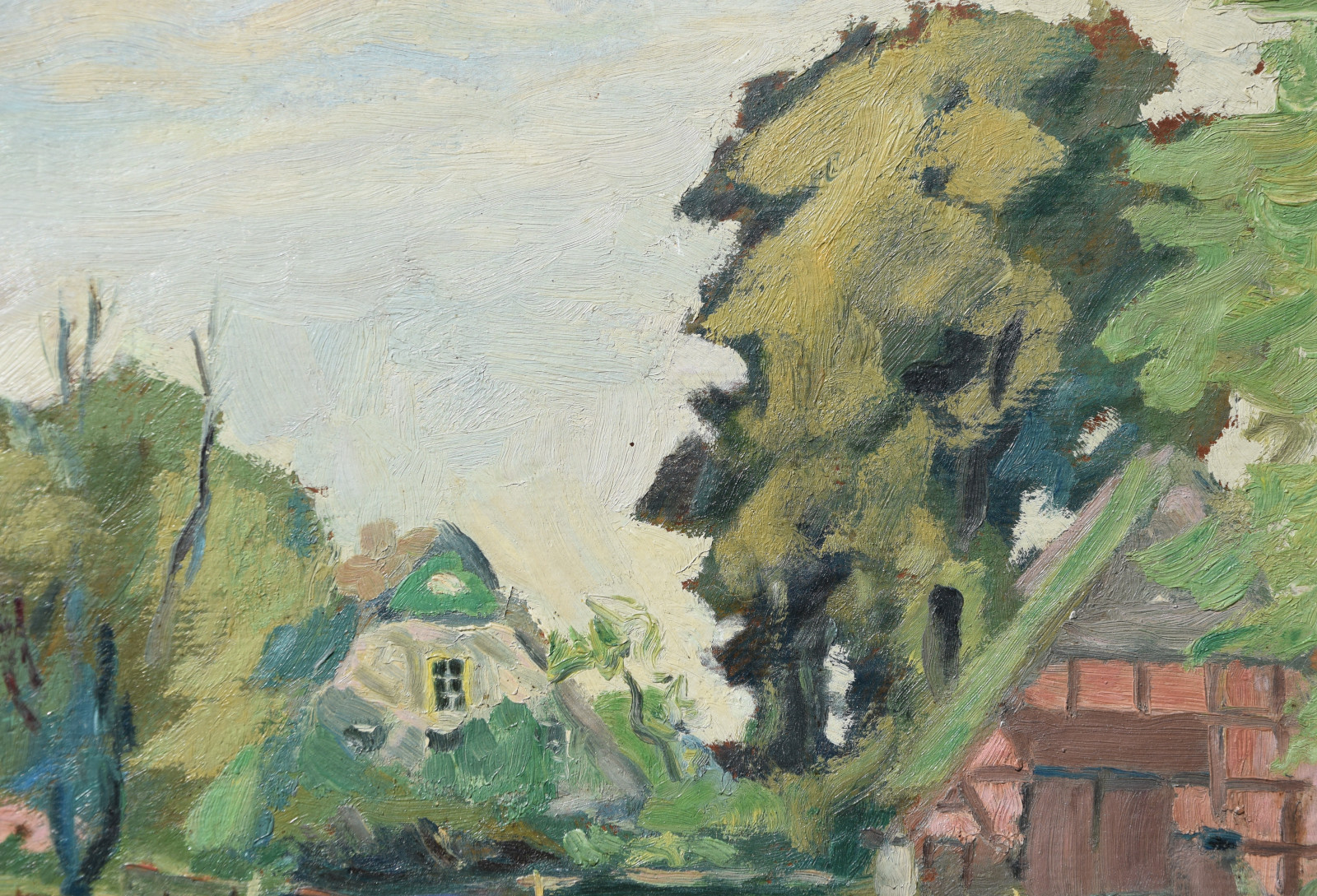 Das hier gezeigte Gemälde entstand während der frühen Zeit des Künstlers in Kummerfeld und womöglich hat er dieses ruhige, menschenleere Gehöft auch dort als Motiv gefunden.