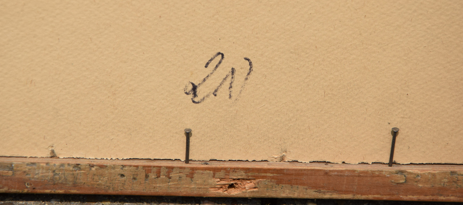 leicht fleckig; Ecken und Kanten schwach berieben (unter Rahmung nicht sichtbar); an wenigen Stellen minimale Verluste der Farbschicht