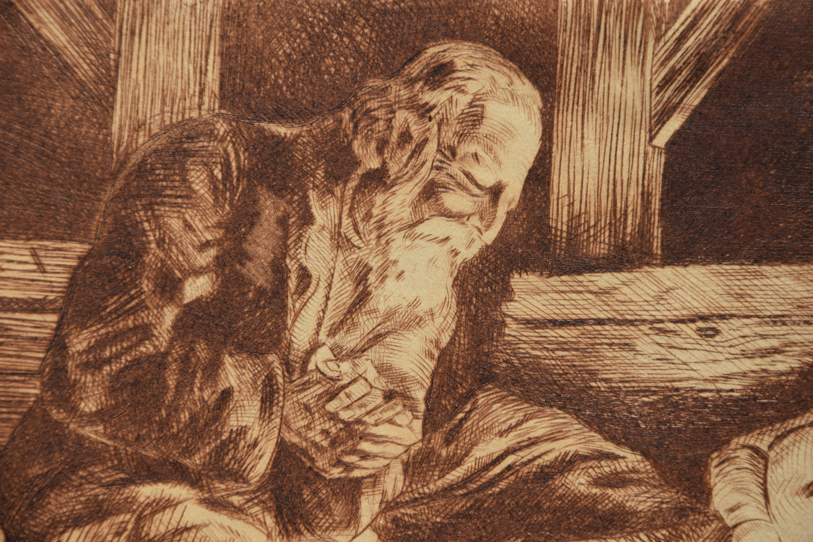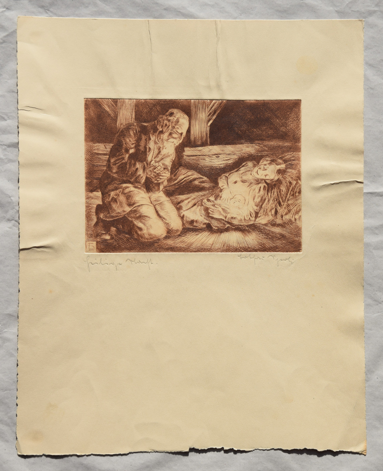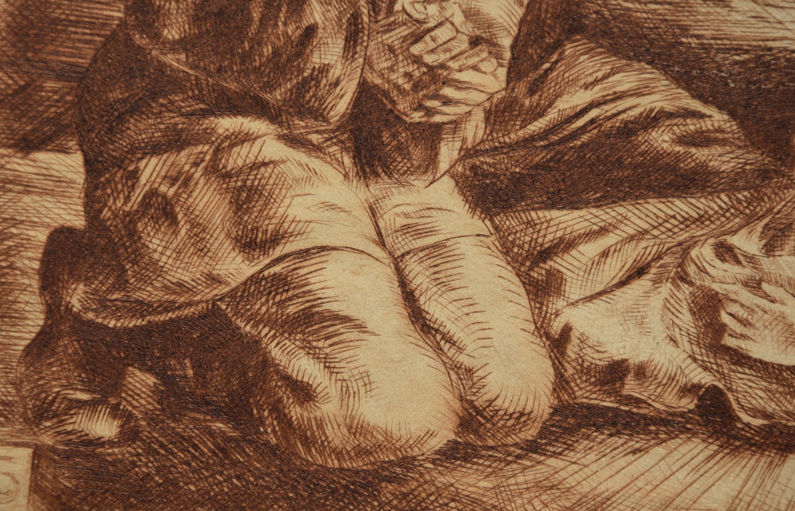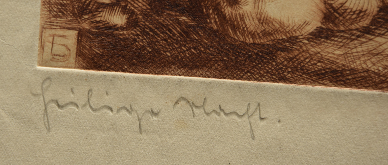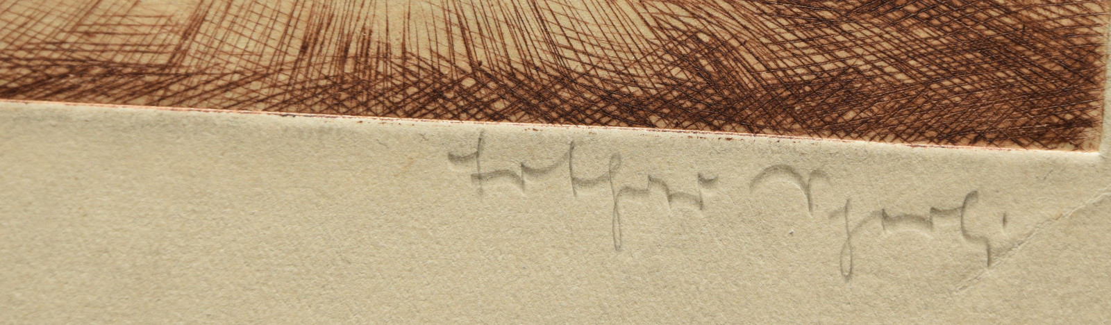 Kaltnadelradierung auf sandfarbigem Karton