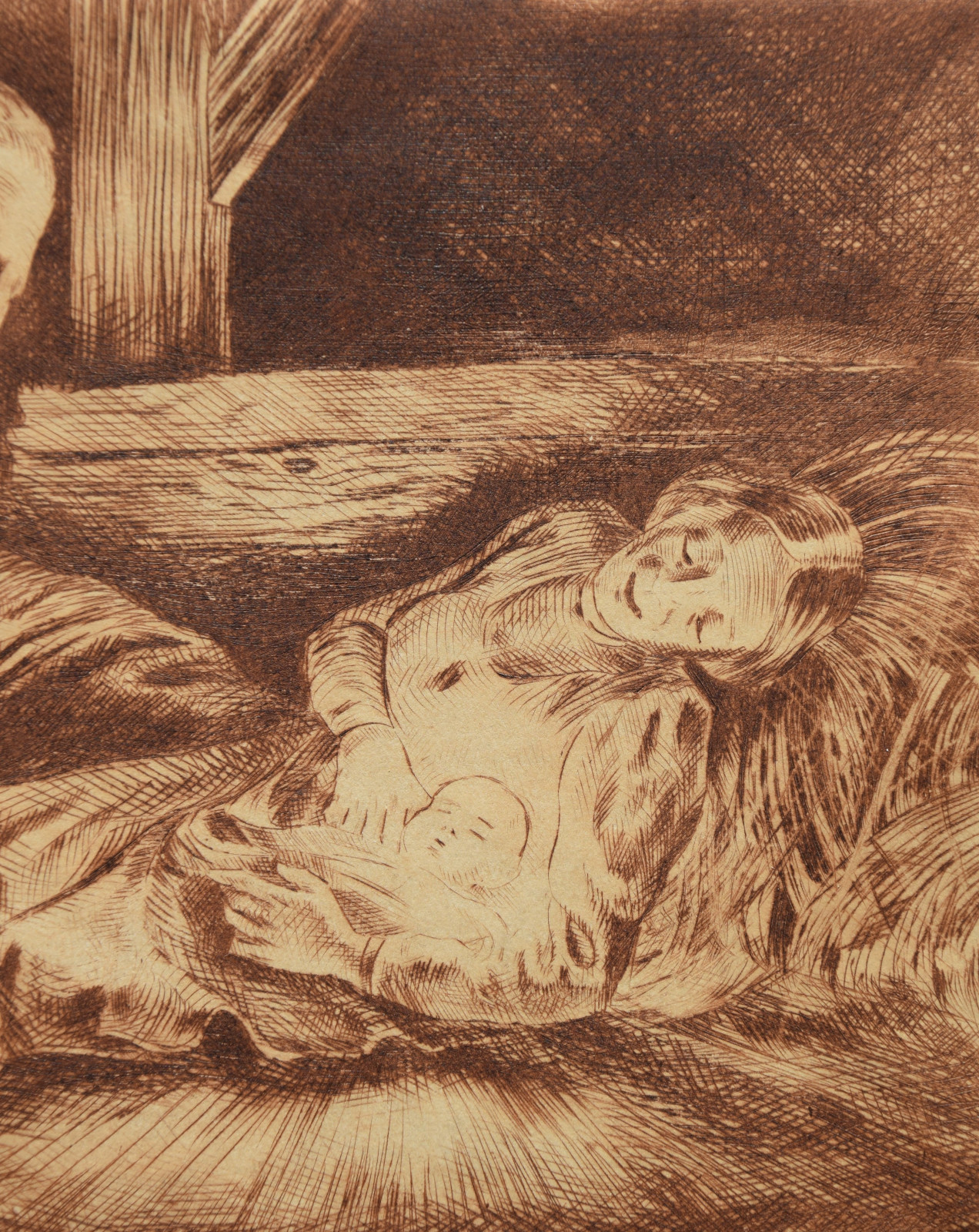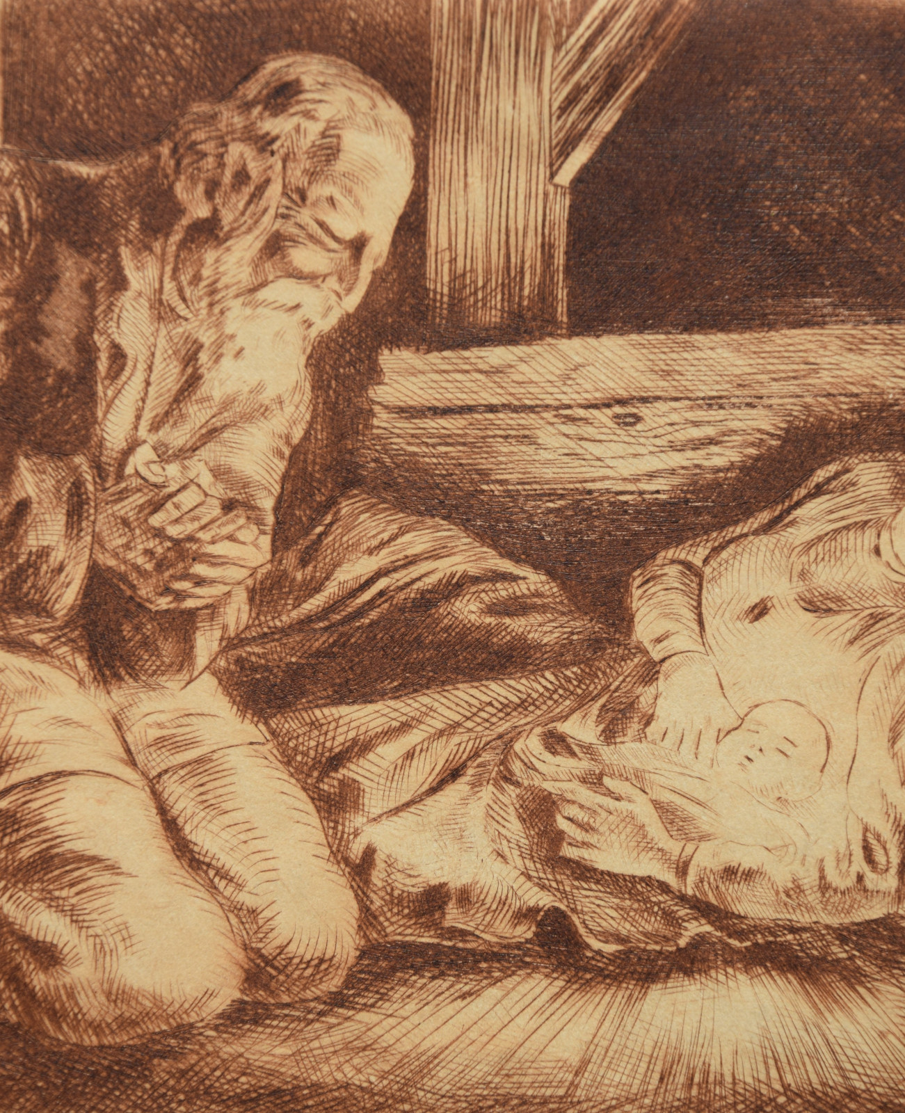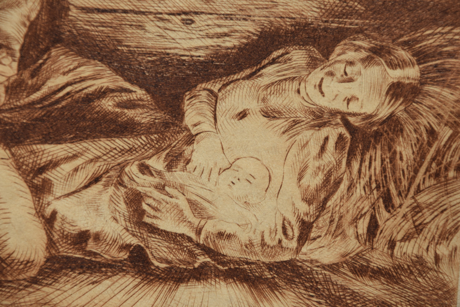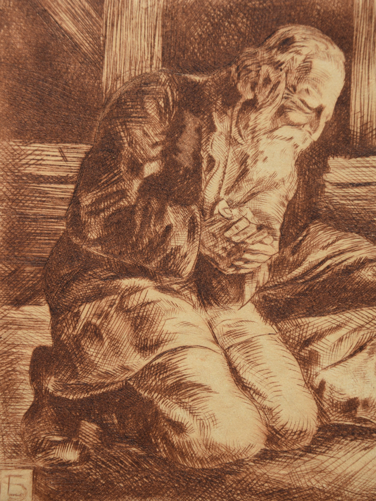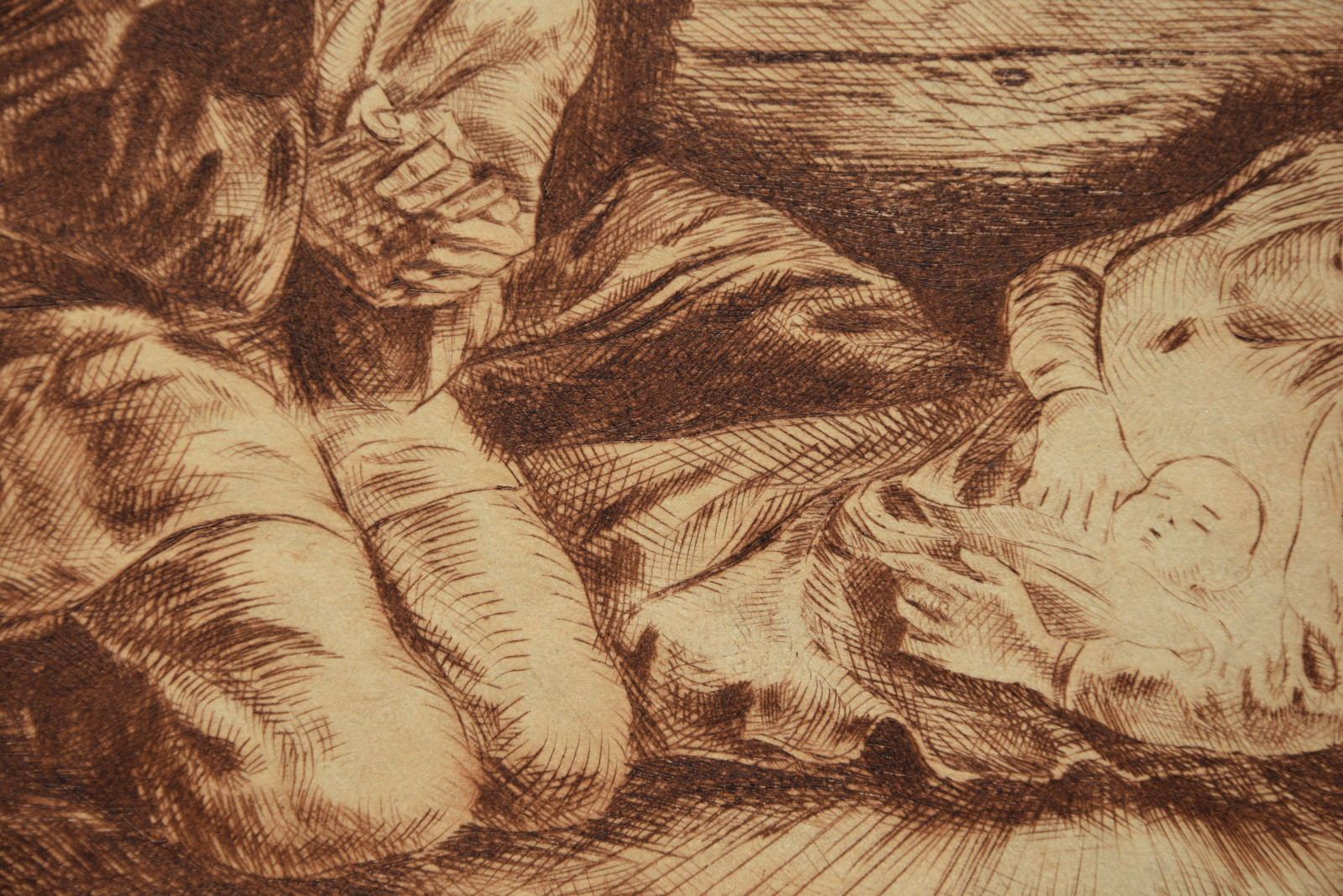 Kaltnadelradierung auf sandfarbigem Karton