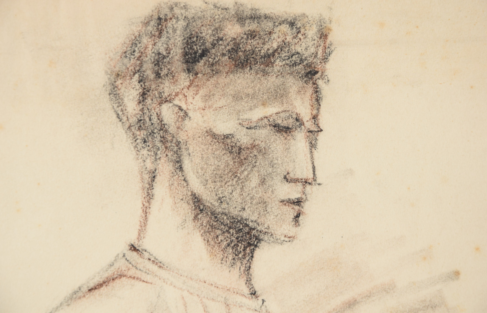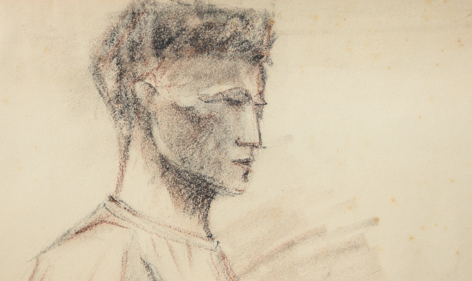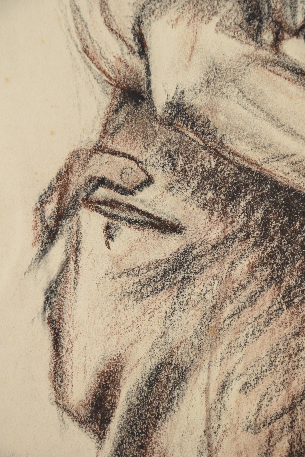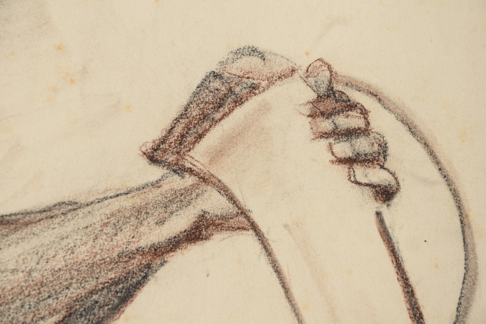 Braune und schwarze Kreide auf festerem Velinpapier, ungerahmt