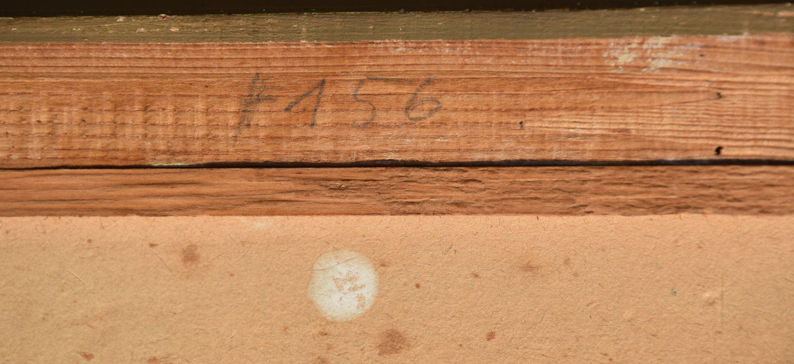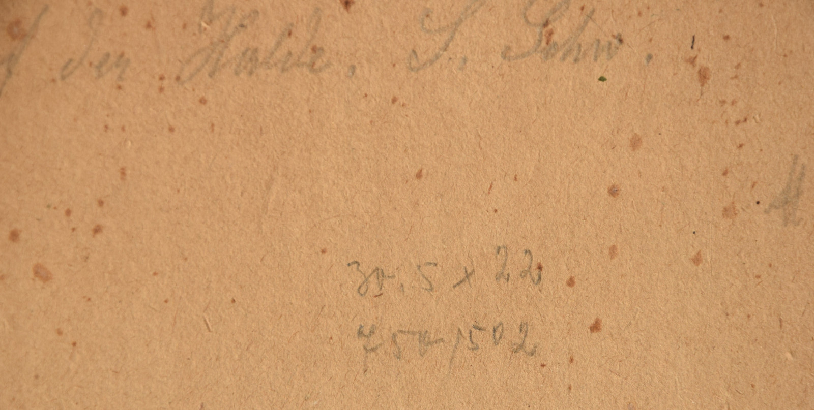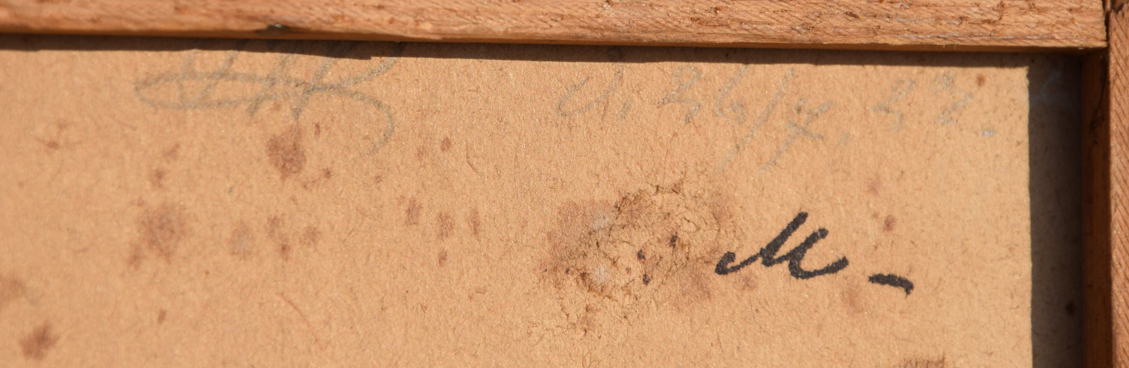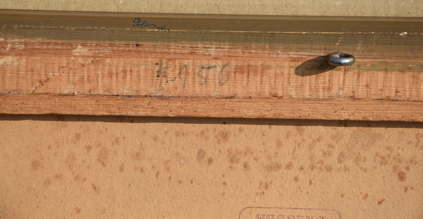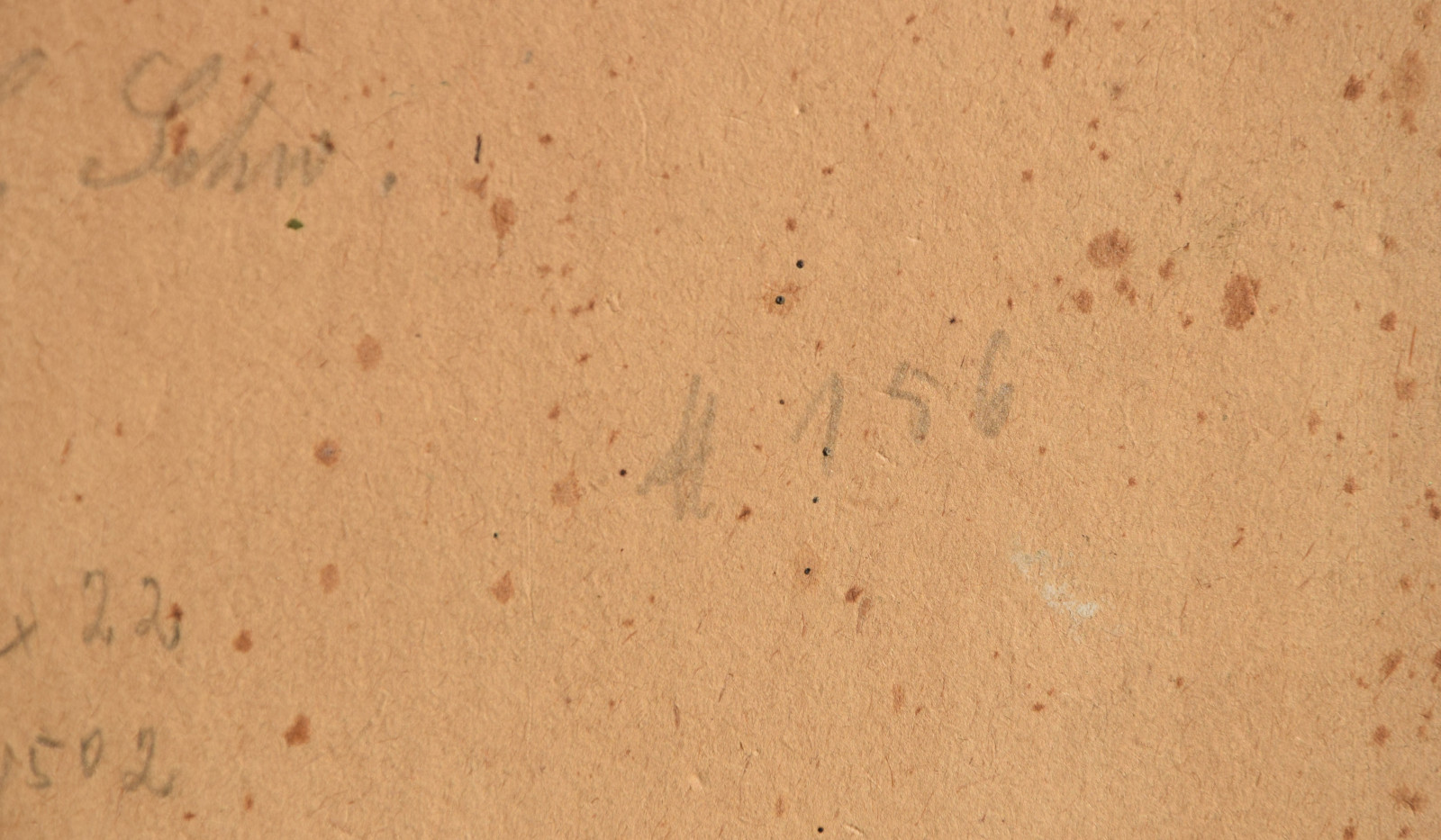 am unteren Rand links kleiner, oberflächlicher Riss; Ecken / Kanten etwas bestoßen; verso etwas fleckig; Rahmen mitunter schwach bestoßen