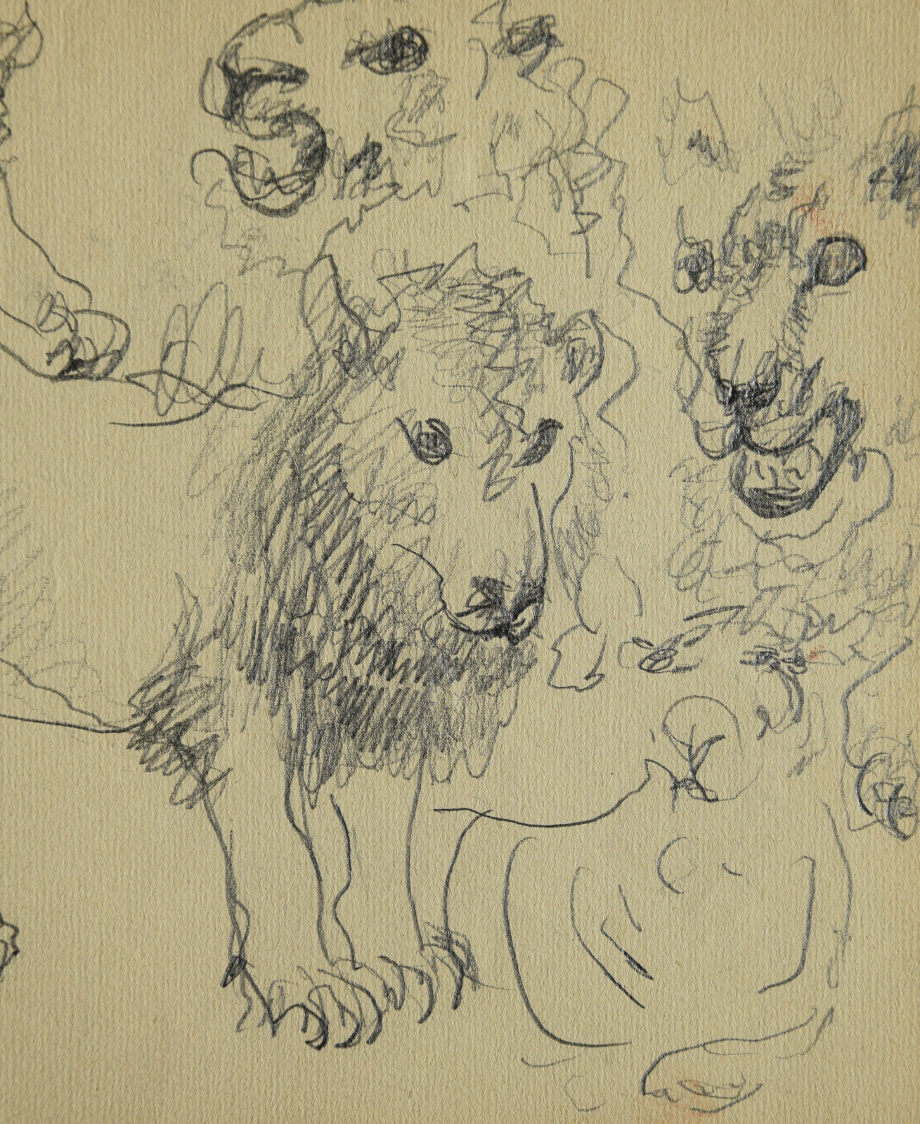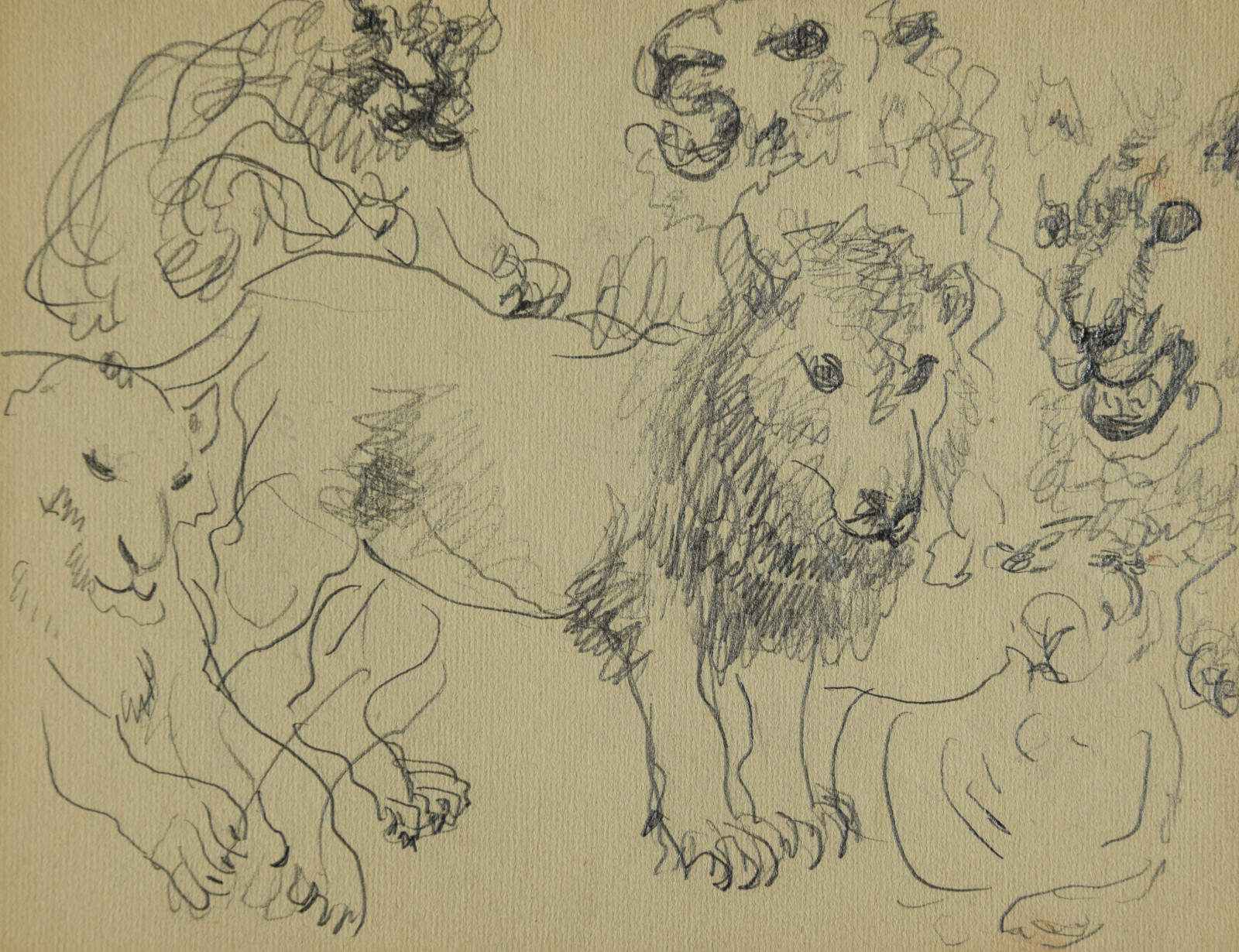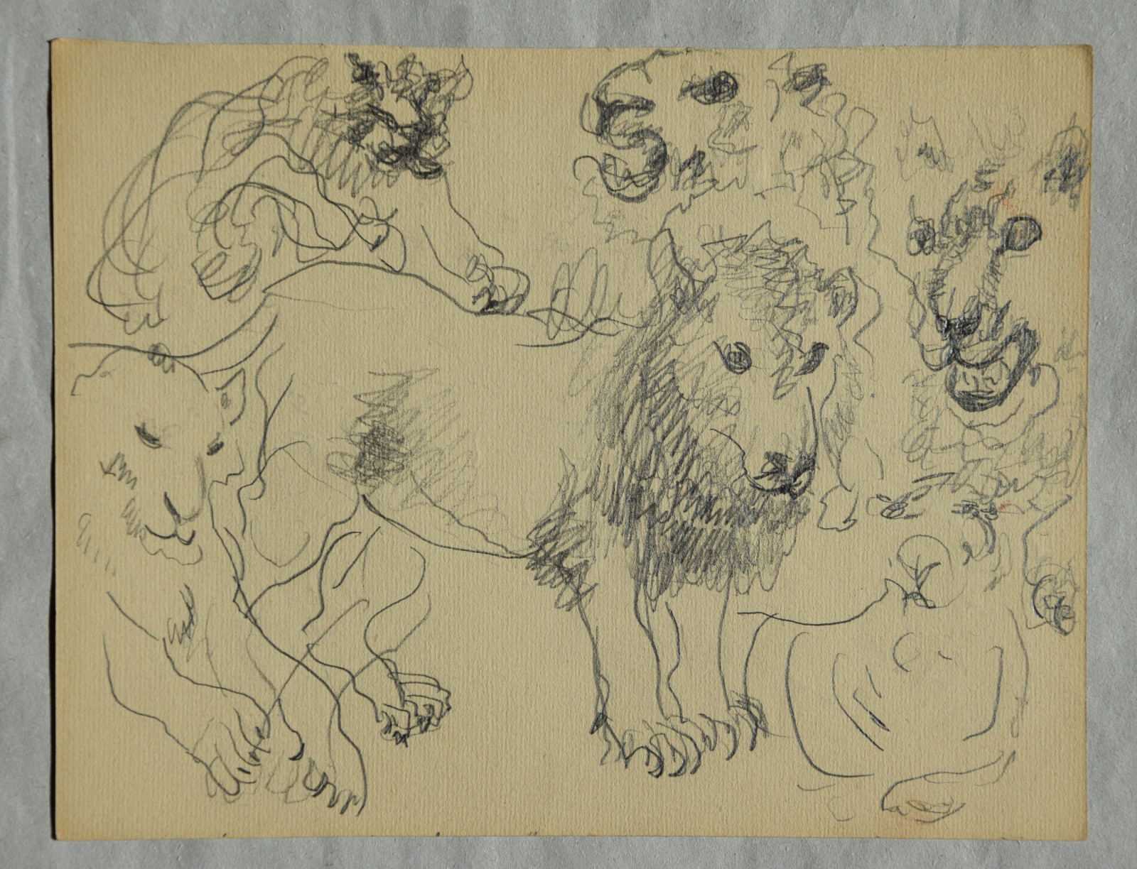 ohne Titel [ recto & verso Studien / Skizzen von Löwen]