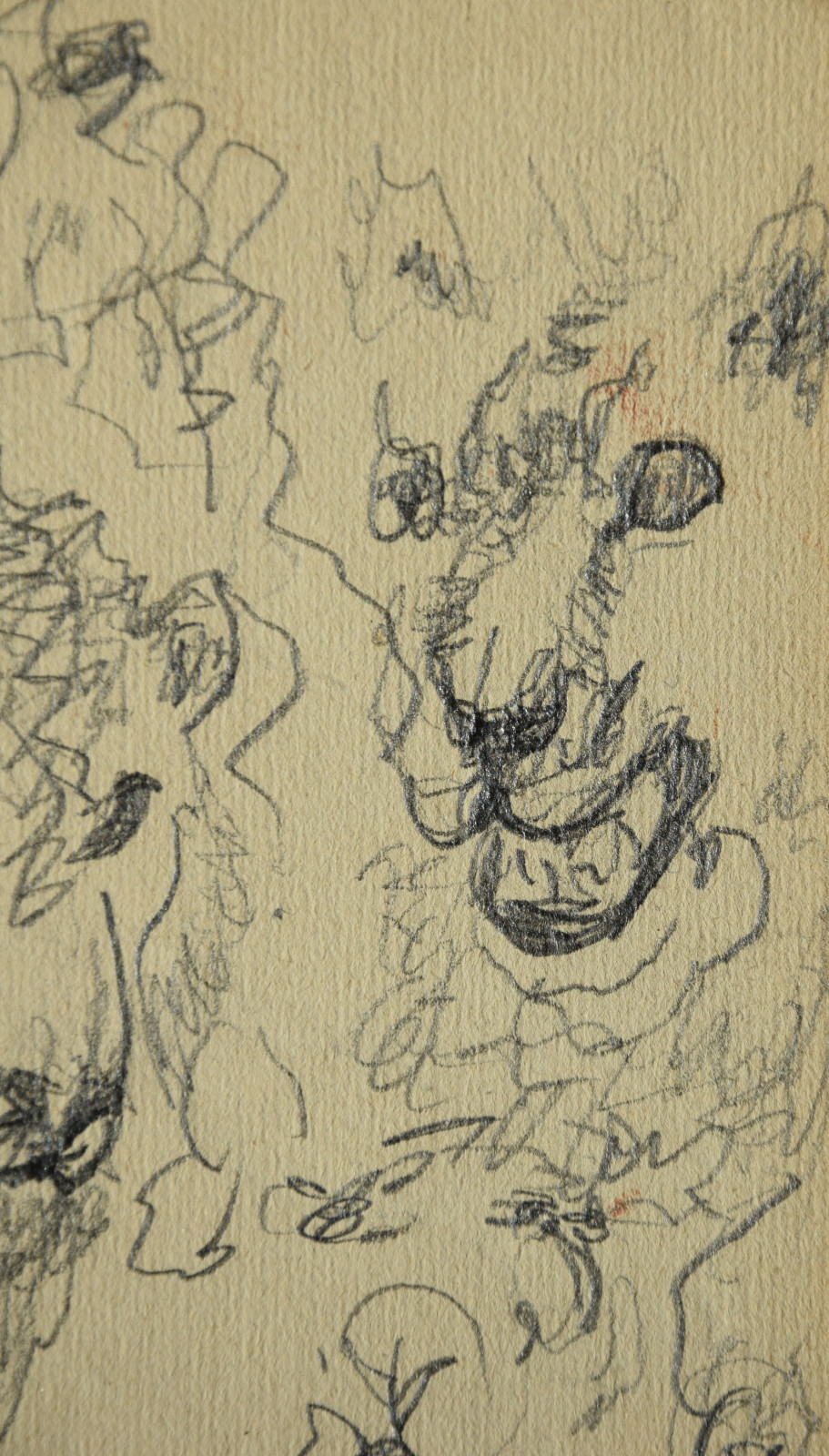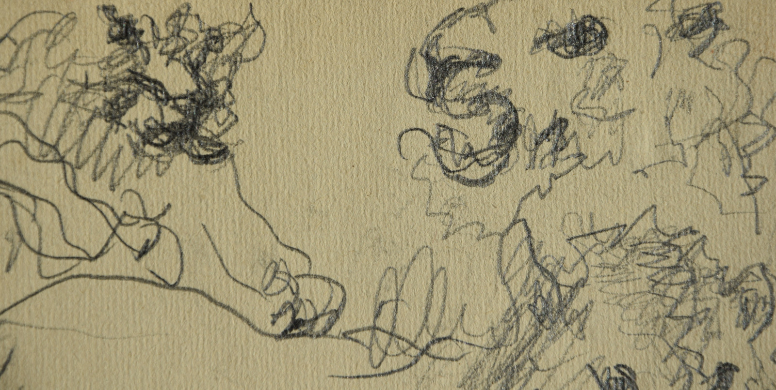 Bleistift auf hellbräunlichem Papier (aus einem Zeichen-, Skizzenbuch)