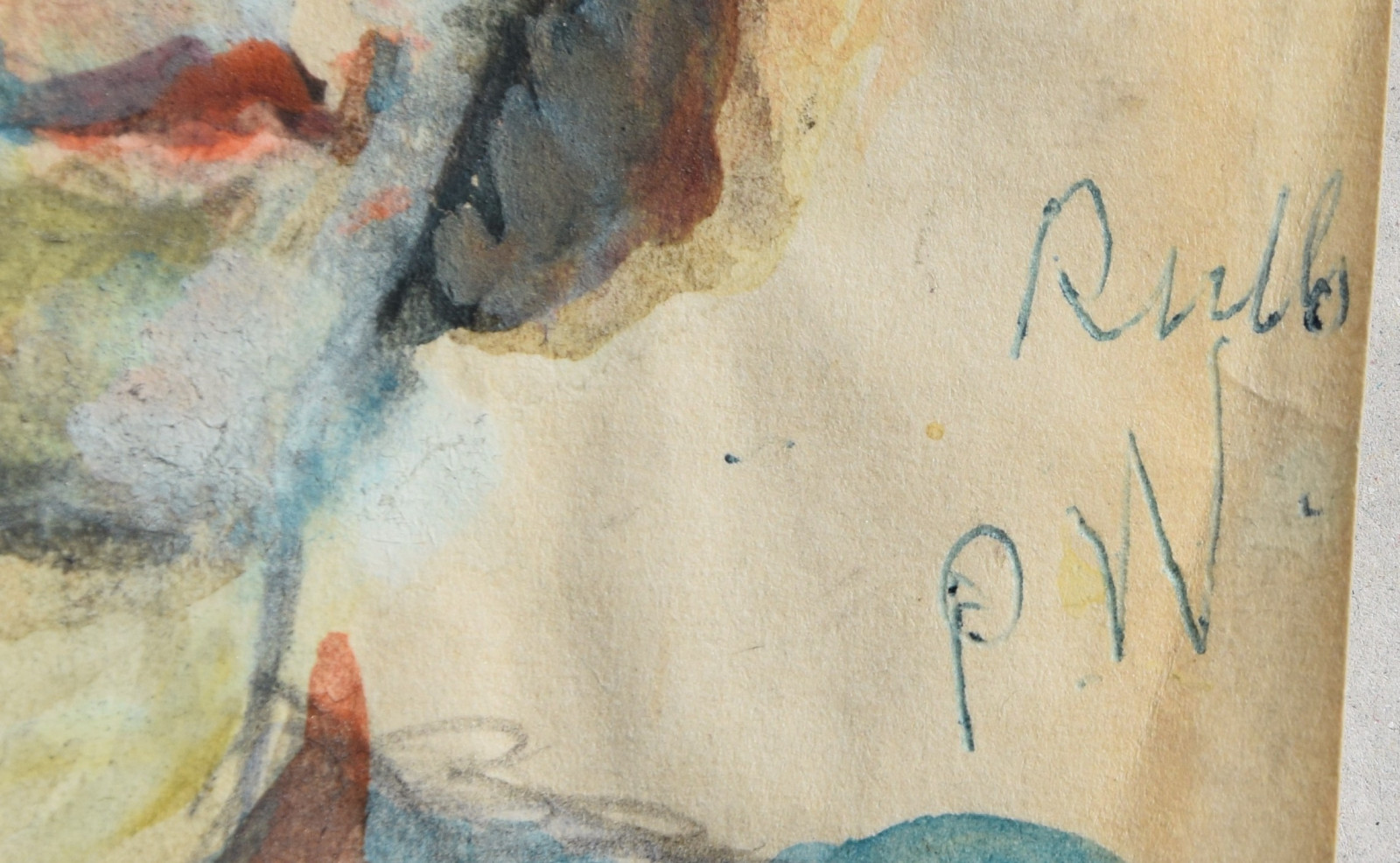 Blattränder etwas uneben zugeschnitten; im Bereich des früheren Passepartoutausschnitts leicht nachgedunkelt; schwach fleckig; im rechten Bereich leichte diagonale Stauchung; technikbedingt sehr leicht wellig; verso leicht fleckig