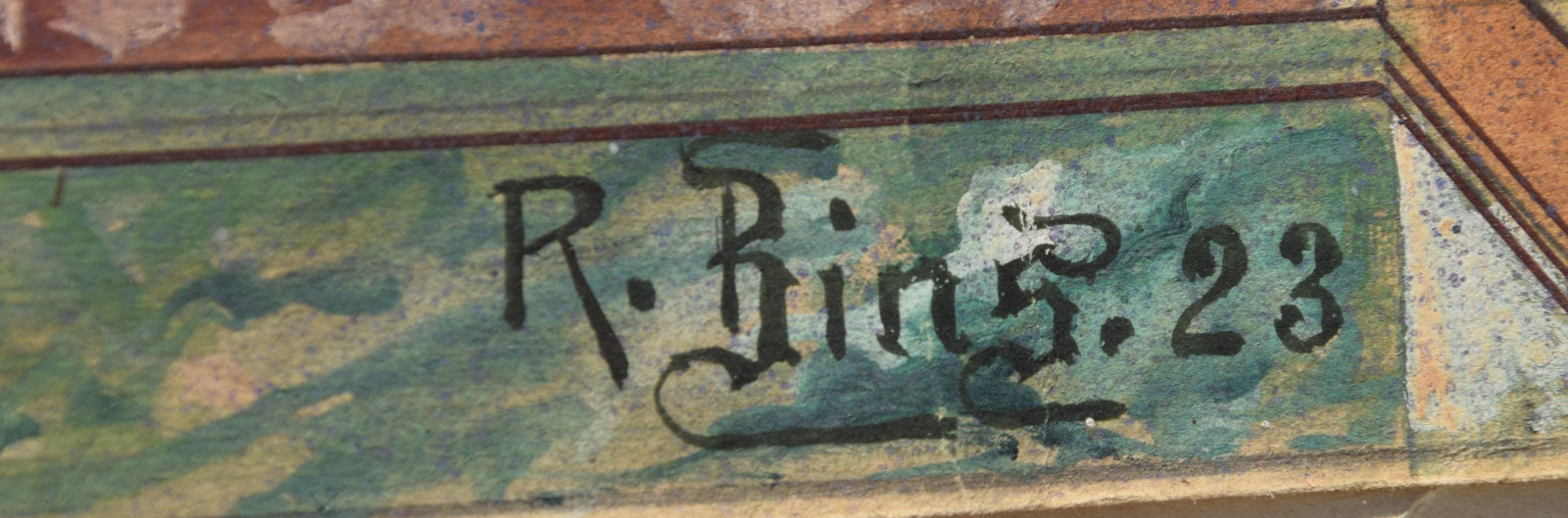 unten rechts signiert „R. Zins“, unten mittig auf unterlegtem Karton Künstlerstempel