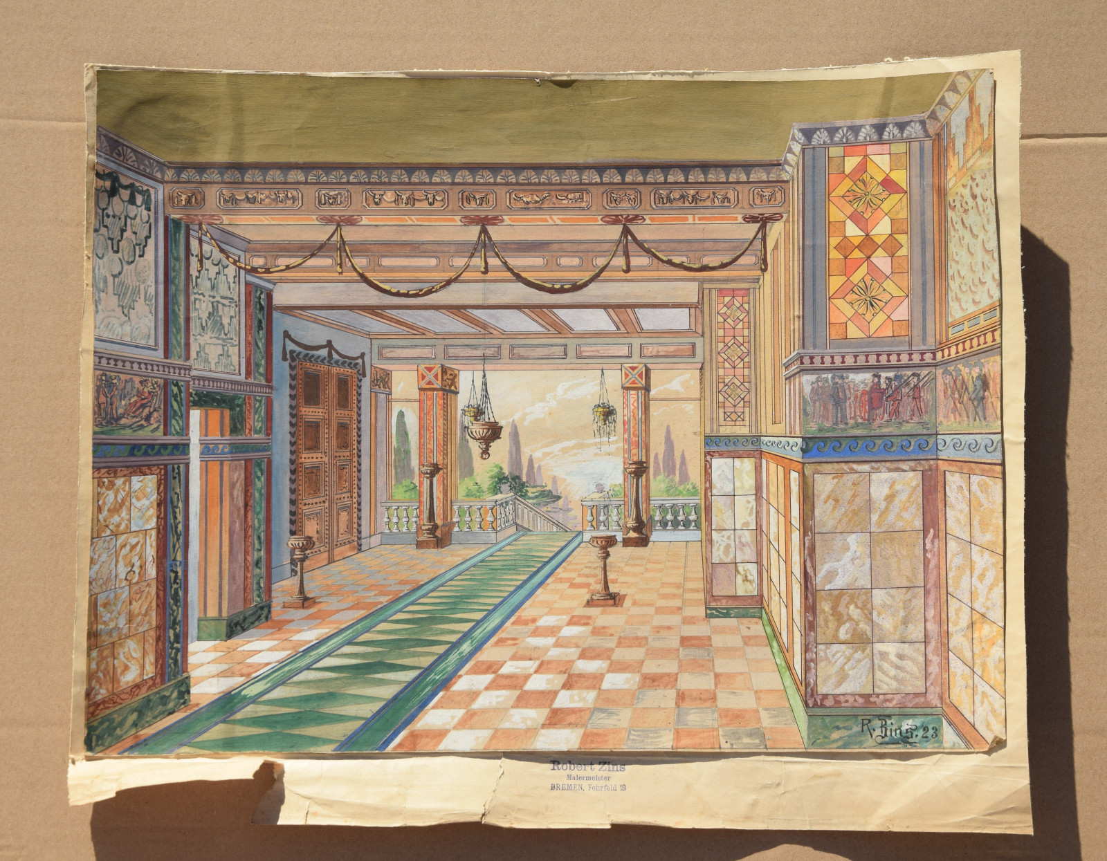 Zu dieser Zeit, um 1930-35, war Robert Zins in Bremen als Malermeister tätig und ansässig. Er lebte dort im Fehrfeld 18 (gemeinsam mit seinem Bruder Lucien), sowie später in der Herderstr. 19.