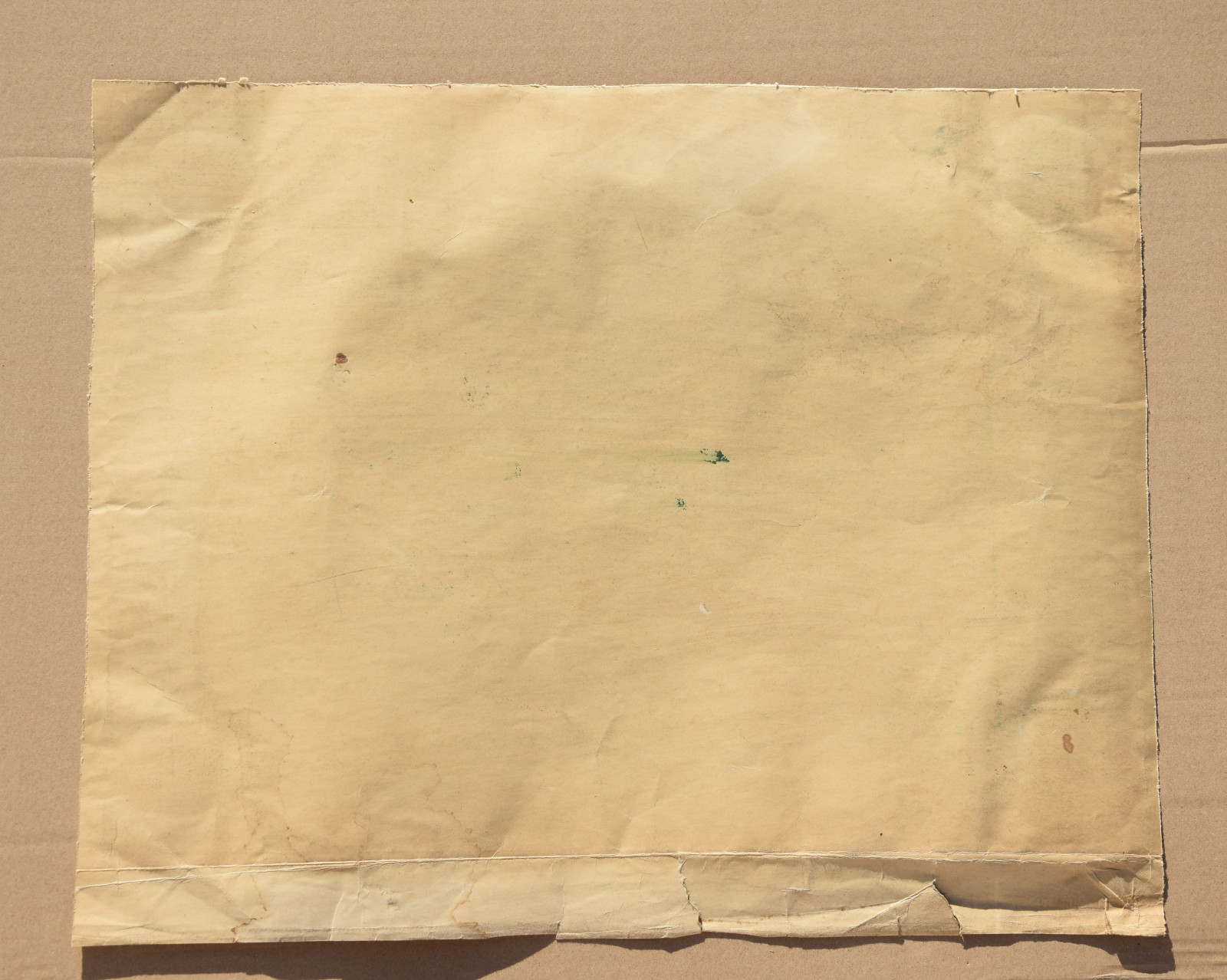 Blatt verso befestigt auf leichten Karton; leicht fleckig; leicht nachgedunkelt; unterlegter Karton nachgedunkelt und fleckig; unterlegter Karton am unteren Rand mit Einrissen und Knicken; unterlegter Karton verso fleckig