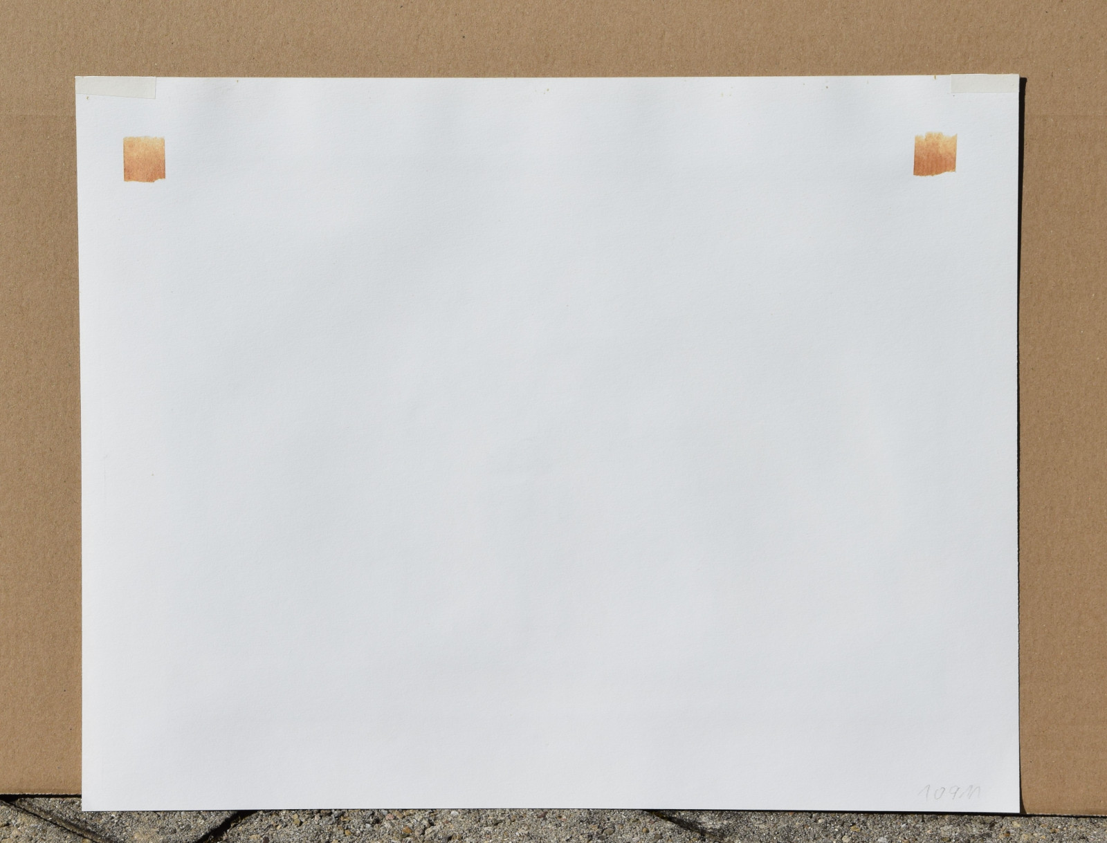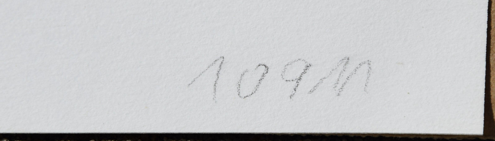 leichte Druckstellen im Blatt; verso unten rechts klein in Blei nummeriert „10911“; verso in den oberen beiden Ecken Reste von hellem Klebeband, sowie darunter Reste von braunem Klebeband